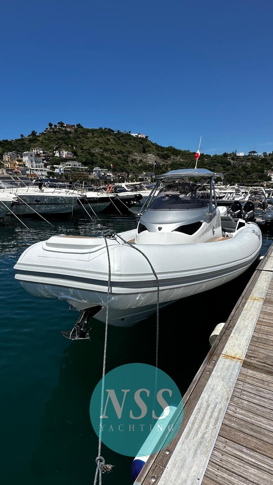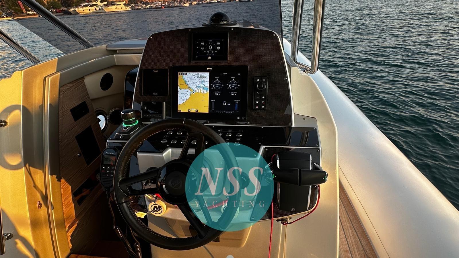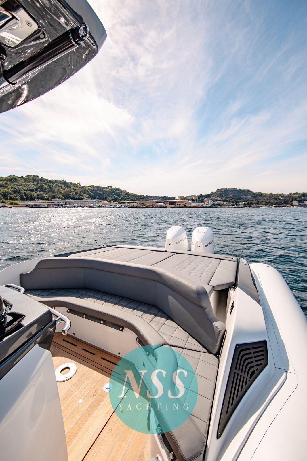 Plus précisément, cette unité livrée en juin 2023 est dans un état irréprochable : équipée de deux Mercury de 400 ch avec joysticks, elle atteint une vitesse maximale de 48 nœuds. Élégant, doté d’une excellente gamme d’accessoires, c’est une solution splendide pour ceux qui recherchent un bateau polyvalent, qui se démarque, mais aussi fonctionnel et sportif.