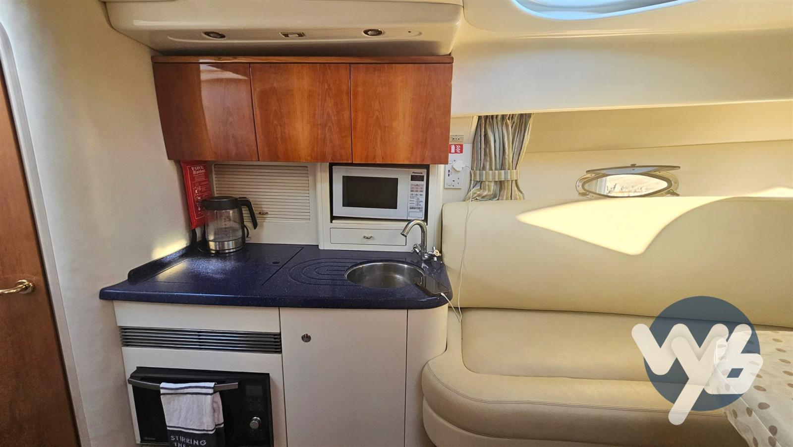Les intérieurs sont bien entretenus, élégants et lumineux. Avec une dînette convertible et une cabine double, il y a de la place pour 4/5 personnes. Salle de bain avec douche et cuisine équipée.