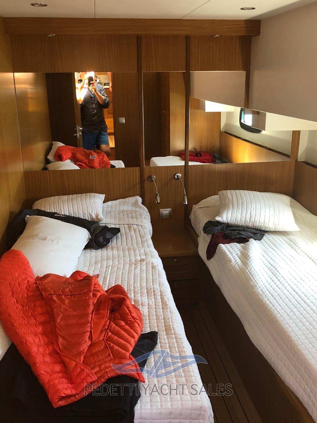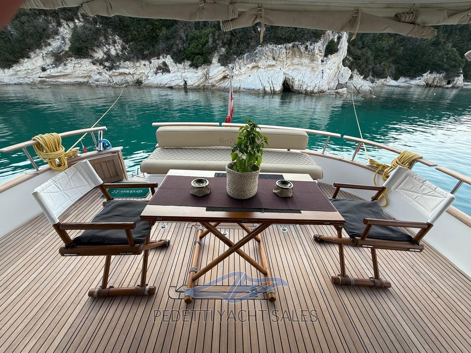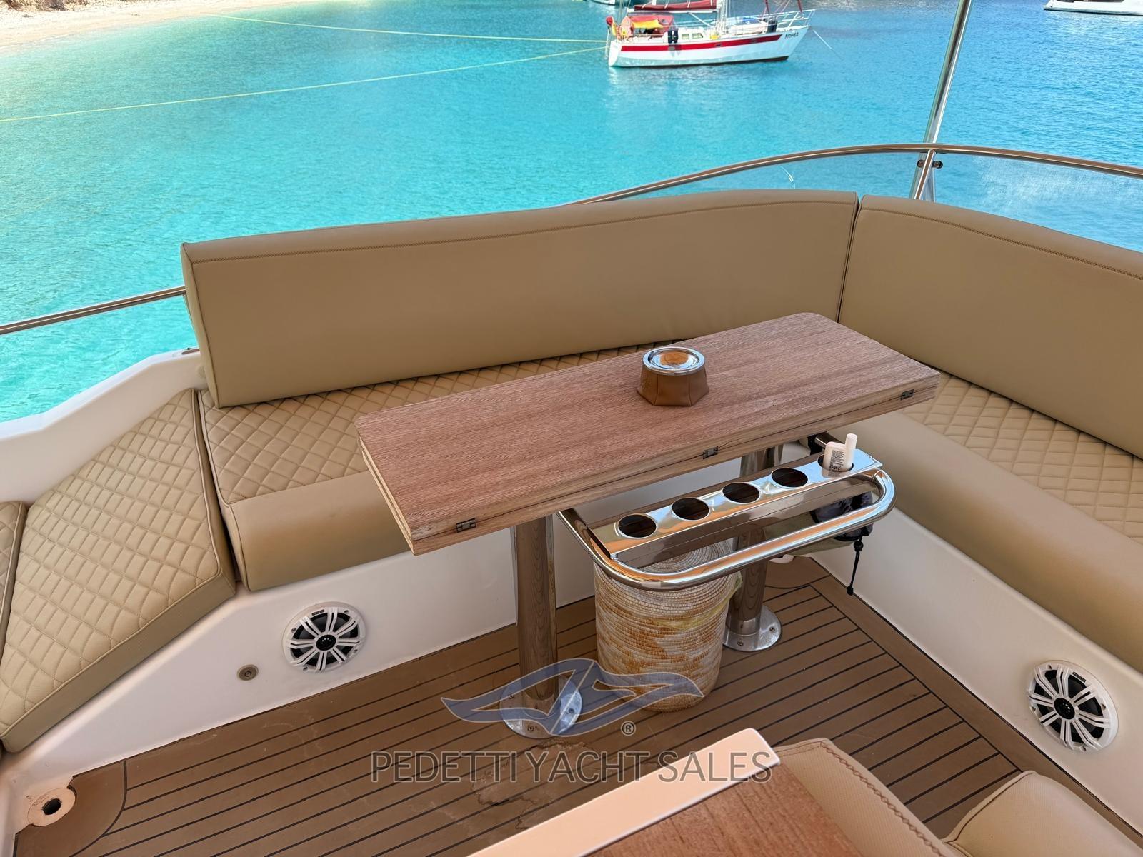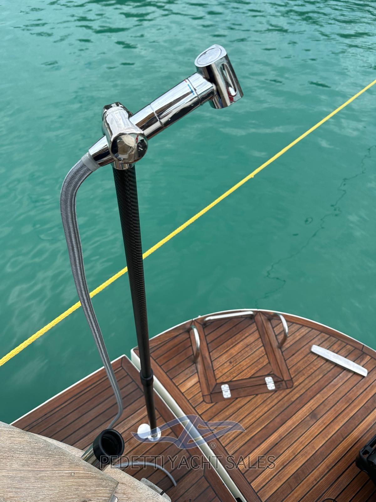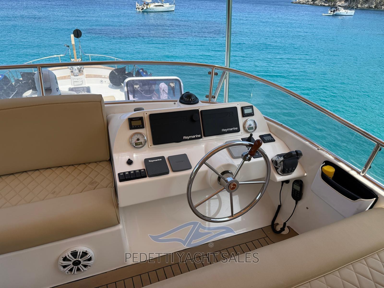 2xVolvo Penta 435 Hp avec 1 400 heures moteur, entièrement révisé (y compris le générateur) en 2025 avec factures disponibles, stabilisateurs dynamiques électriques Humphree avec deux batteries et 2 chargeurs dédiés, panneaux solaires praticables sur le fly bridge haute performance, dessalinisateur 140 lt/h, équipement de sécurité, EPIRB, électronique raymarine complète avec radar et instruments à vent avec double écran dans la timonerie et sur le flybridge, télécommande de pilote automatique, compteur de chaîne d’ancre, plate-forme de poupe hydraulique, passerelle hydraulique rétractable, générateur 10 Kw, propulseur d’étrave et de poupe, climatisation, TV rétractable dans le salon, système stéréo avec haut-parleurs externes et internes avec commande de fader, contrôleur de yacht, coussins 10exterior new 2023, auvent de fly bridge personnalisé, auvent d’étrave, ténalines de cockpit, caméras de poupe et d’étrave FLIR avec réalité augmentée, teck dans le cockpit, portes extérieures en teck naturel, armoire grill avec évier et réfrigérateur sur le flybridge, table sur le fly bridge, canapé arrière dans le cockpit, avec coffres, ancre en acier Ultramarine, lumières sous-marines à l’arrière, 3 réfrigérateurs (cuisine, salon et fly bridge), congélateur de cockpit dans la cuisine, lave-vaisselle, lave-linge-sèche-linge, cuisinière à gaz trois feux avec manique, Prise d’eau bâbord, sortie d’eau douce à l’avant, douche extérieure neuve avec support, annexe en fibre carvbonio avec hors-bord de 20cv, traitement Prospeed des essieux et des hélices.