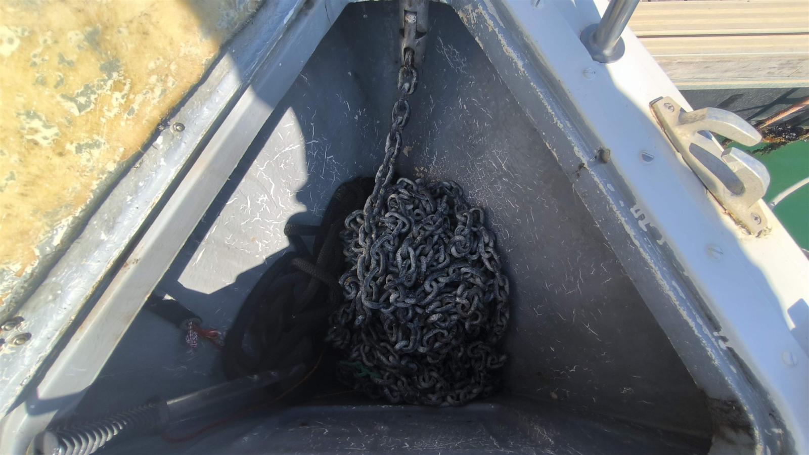 2 Ancre, Eau sous pression, 2 Batteries (x110), Douche de cockpit, 2 Panneau solaire (x100 sur portique), Pompe de cale manuelle, Prise de quai, Guindeau électrique (1200w chaine de 8), Chaise support HB.