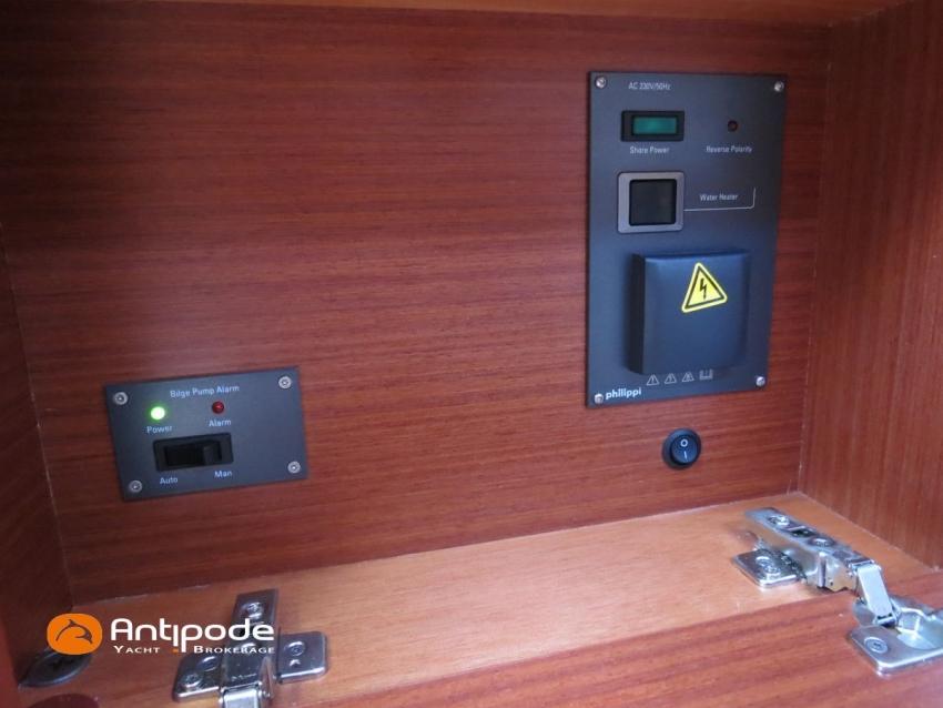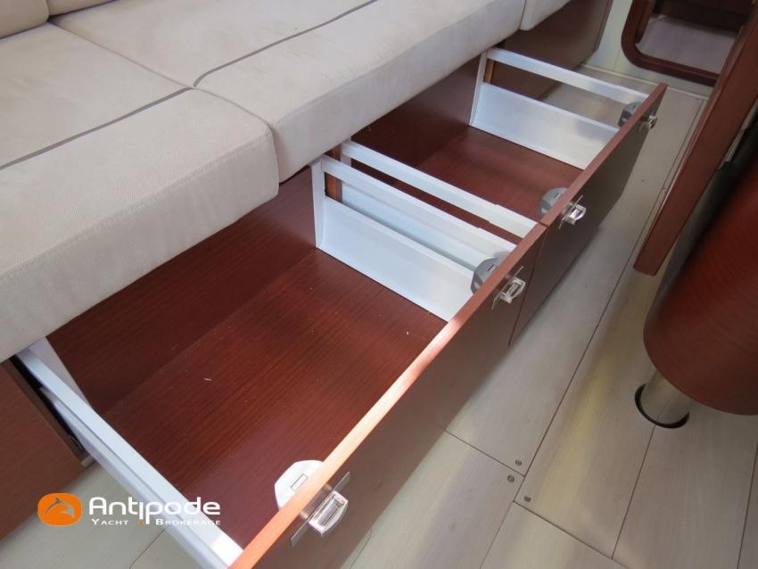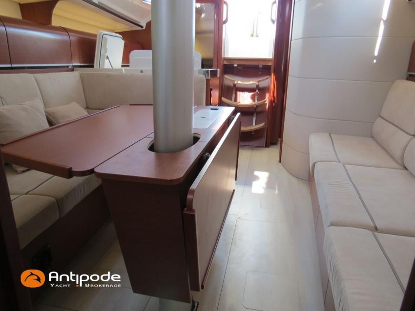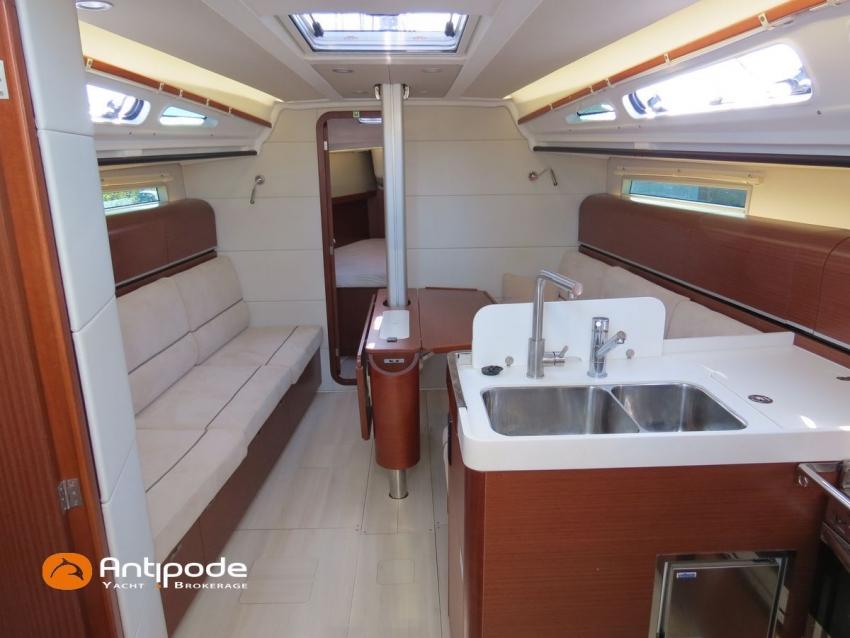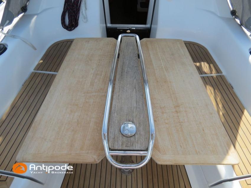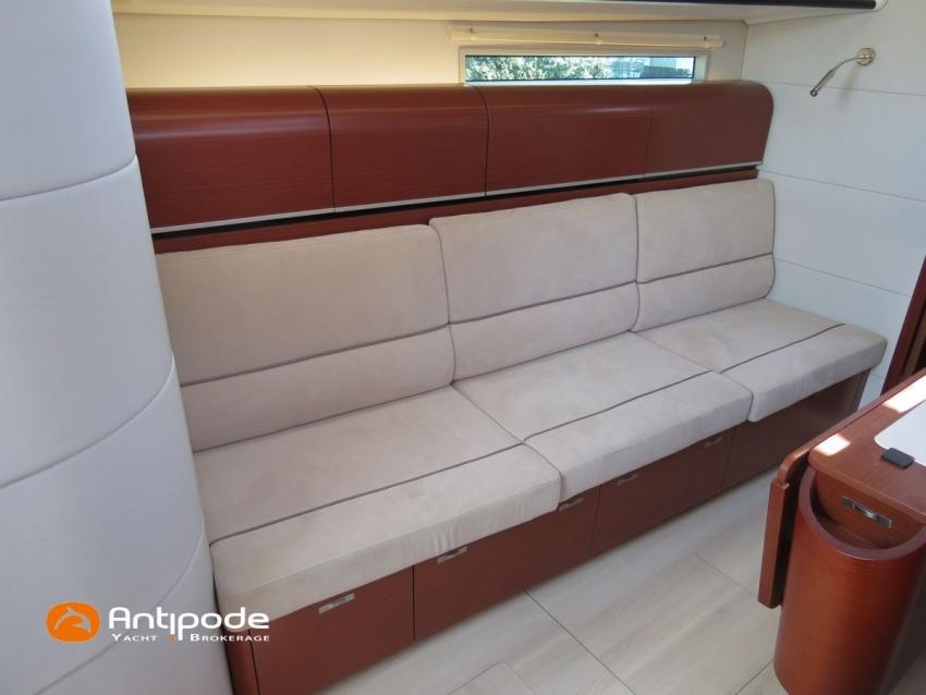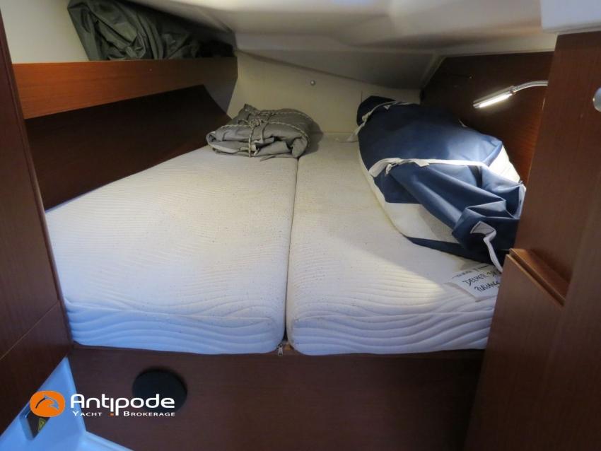 DEHLER 38 SQ, 2021, VOLVO D2-40, 40 cv (346 h), Propulseur d'étrave, Version d'aménagement intérieur 1 cabine avant, 2 cabines arrière, 2 winchs d'écoutes de génois dans le cockpit - Lewmar 46ST, 2 winchs d'écoute de grand voile (german sheet) - Lewmar 40ST, 2 winchs sur roof pour réglages et manoeuvres dont 1 électrique - Lewmar 40ST, Delphinière composite, Support radeau de survie dans les balcons, Dessus de roof Flexyteek, Fond de cockpit Flexyteek, Assises de cockpit Flexyteek, Jupe arrière basculante recouverte de Flexyteek, Taquets d'amarrage rétractables, Protections d'étrave et de delphinière en inox, Table de cockpit avec abattants bois, Double barres à roue composite, Capote de roof, Bimini top cockpit, Guindeau électrique - Quick 800W, Portique arrière avec bossoirs, Ouvertures latérales dans les filières, Passerelle arrière , Support moteur hors-bord, Tauds de fermeture arrière complète du cockpit, Mât aluminium rétreint posé sur la quille - Selden, Gréement dormant Rod, Grand-voile à corne full batten - Quantum, Lazy-bag de grand voile, Lazy-jacks de grand voile, Enrouleur de génois avec tambour sur le pont - Furlex 204S, Génois sur enrouleur - Quantum, Trinquette sur emmagasineur Facnor FX+1500 et drisse mouflée (voile neuve), Double pataras réglables, Pilote automatique in board - B&G, Centrale de navigation - B&G, 3 Répétiteurs cockpit, 2 x GPS / lecteur de carte dans le cockpit (un sur chaque poste de barre), Cartographie électronique, Radar - Simrad, Transpondeur AIS (émetteur récepteur), VHF ASN + combiné sans fil - B&G V60, Système audio Fusion RA70N + boitier de commande dans le cockpit + HP, Unité réfrigérante 12 V ouverture par le dessus + porte frontale, Conservateur froid négatif (freezer) à tiroir sous assise du carré, Batteries service Lithium, Convertisseur 12 V / 220 V, Contrôleur / gestionnaire de batteries, Chauffage air pulsé 5 sorties EBERSPACHER, Réservoir rigide eaux noires, Panneaux solaires - Solara 4 x 125W, Douchette de cockpit eau chaude / eau froide, Eau de mer sous pression dans la cuisine, Feux de navigations à Leds, Eclairages intérieurs directs et indirects à Leds, Radeau de survie (révisé décembre 2025), Mouillage principal ancre DELTA 16kg, 50m de chaine (2025) + cablot, Amarres et défenses, Annexe 2.50m, Moteur hors-bord Honda 2.3cv 4 tps (2024), Visible Bretagne. Pour plus d'informations ou pour fixer un rendez-vous de visite, contact : Jean-Baptiste Lemaire 06 10 25 00 03 - jb@antipode-yachts.com