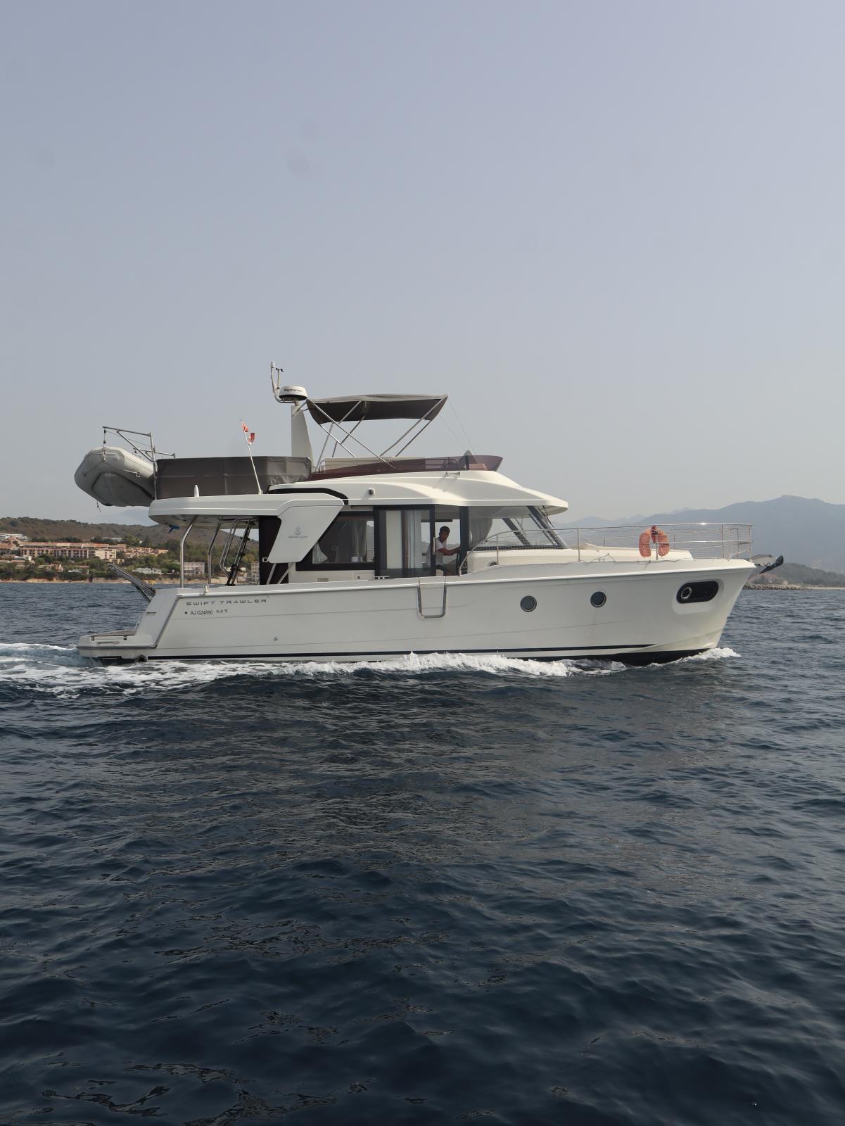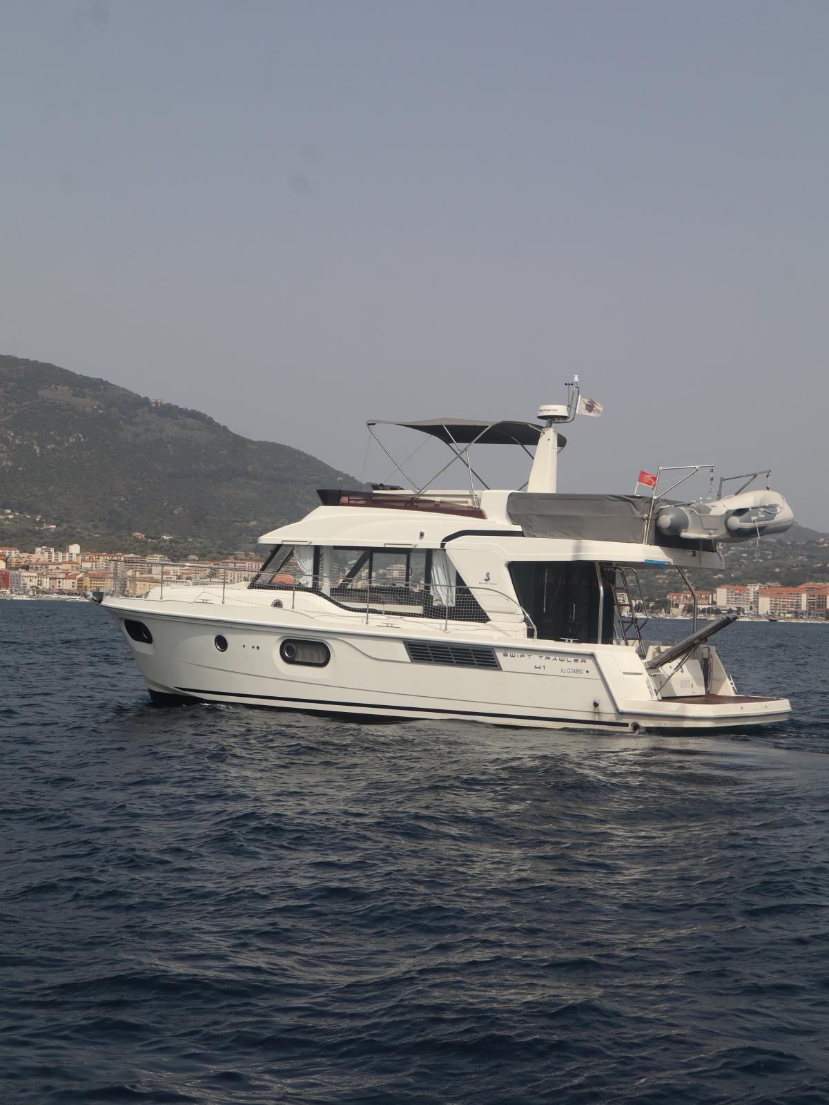 UNI BATEAUX, concessionnaire exclusif BENETEAU pour toute la Corse vous propose un superbe Swift Trawler 41 Fly millésime 2020 d'occasion.
