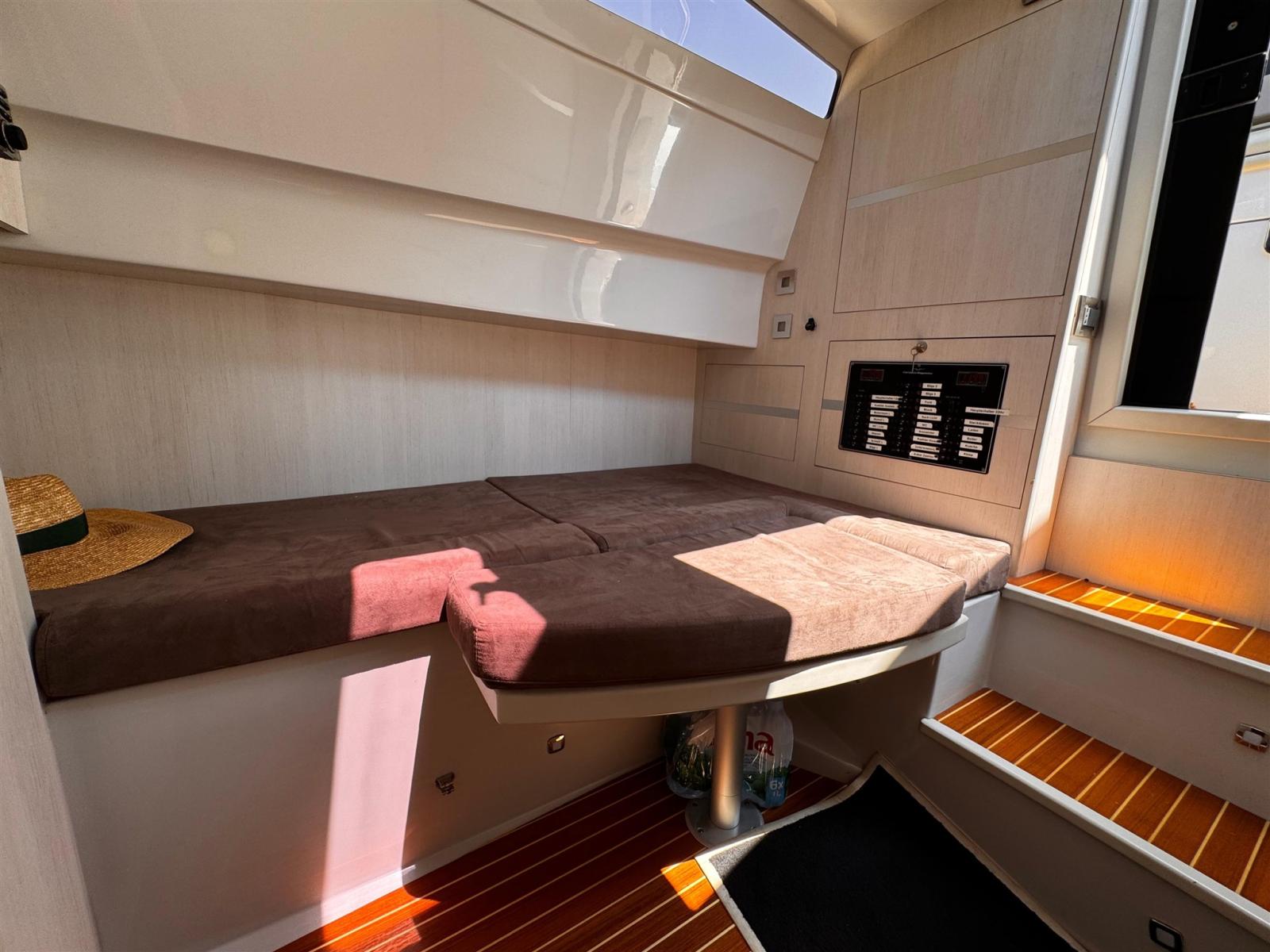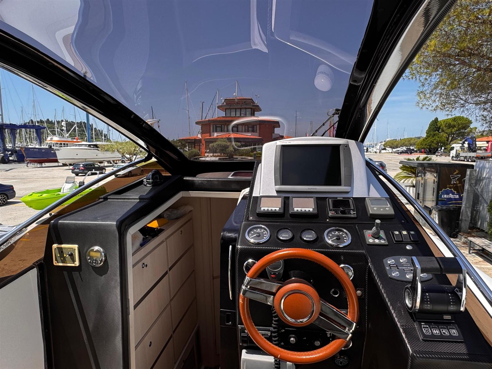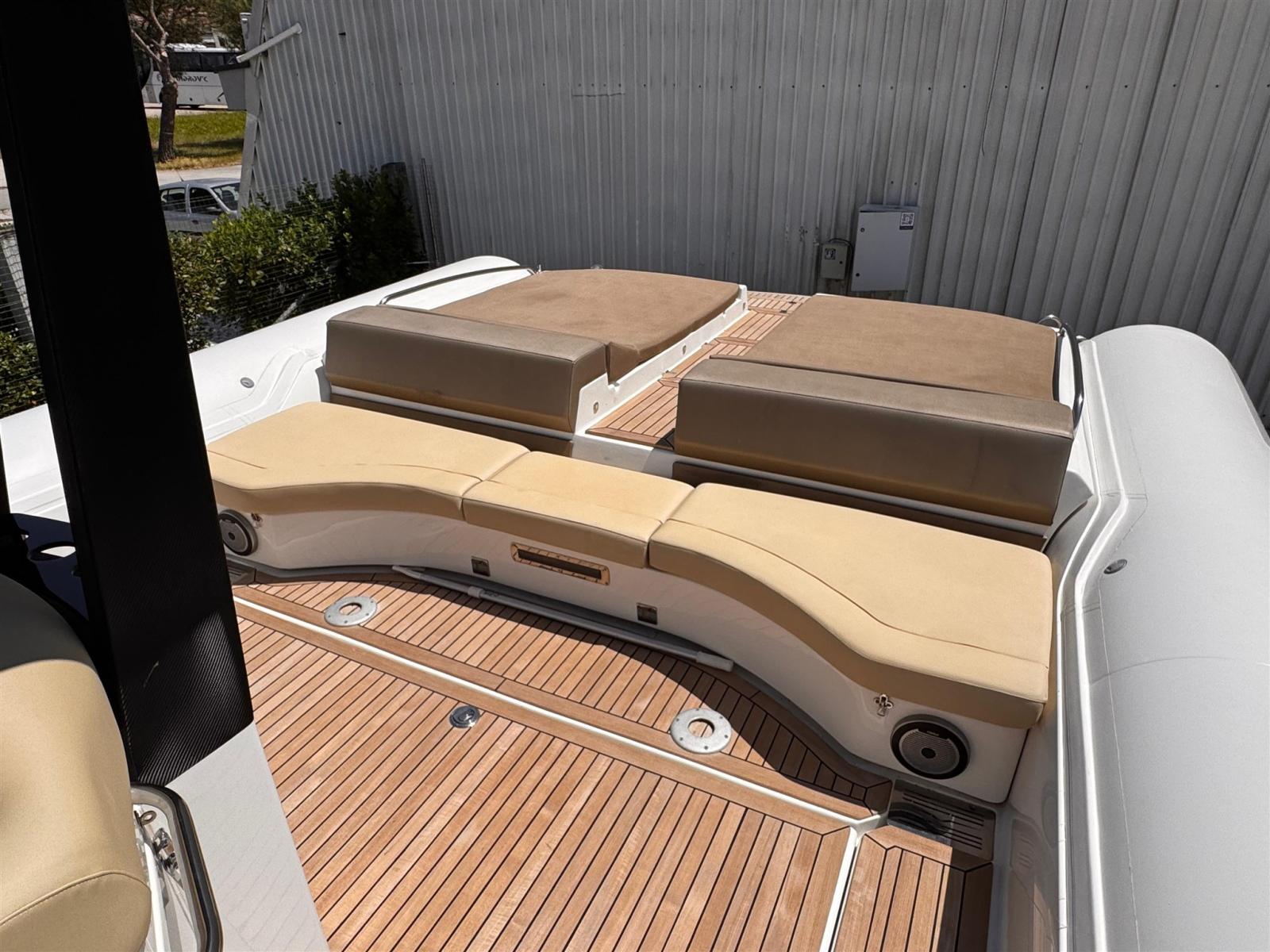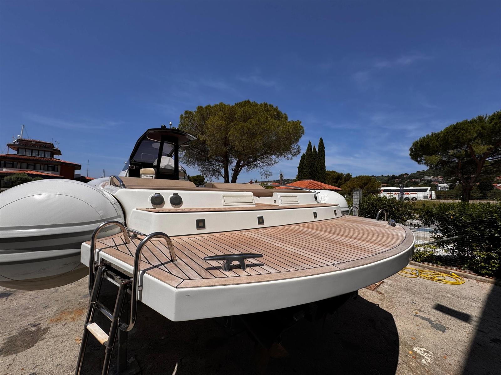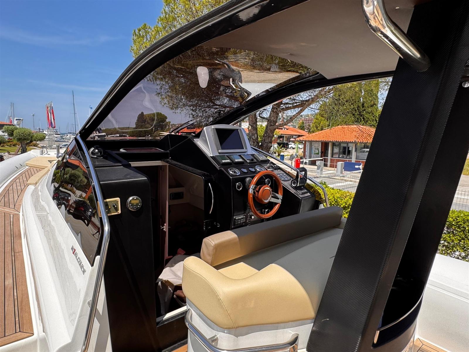Alarme moteur, Système de vidange, Passavant en teck, Douche de cockpit, Phare de poursuite, Hard top, Extincteur(s) fixe(s), Plateforme arrière, Pont en teck, Cockpit en teck, Guindeau électrique, 2 Echelle de bain, Corne.