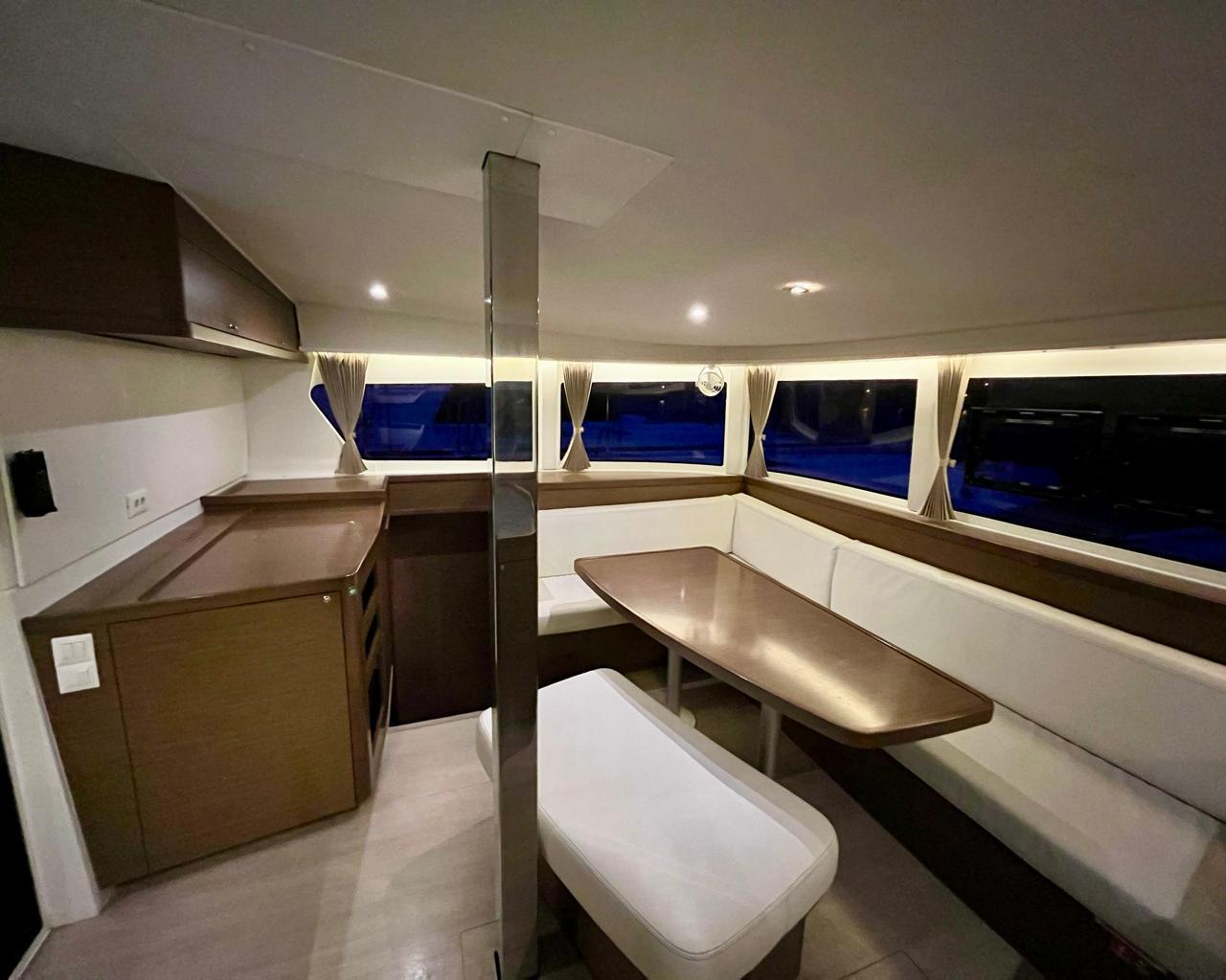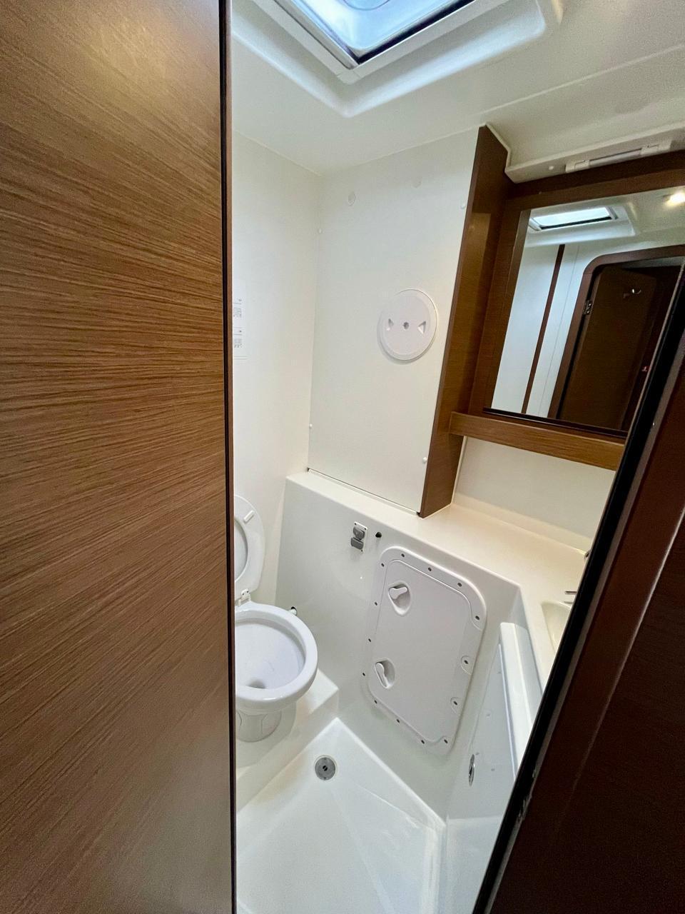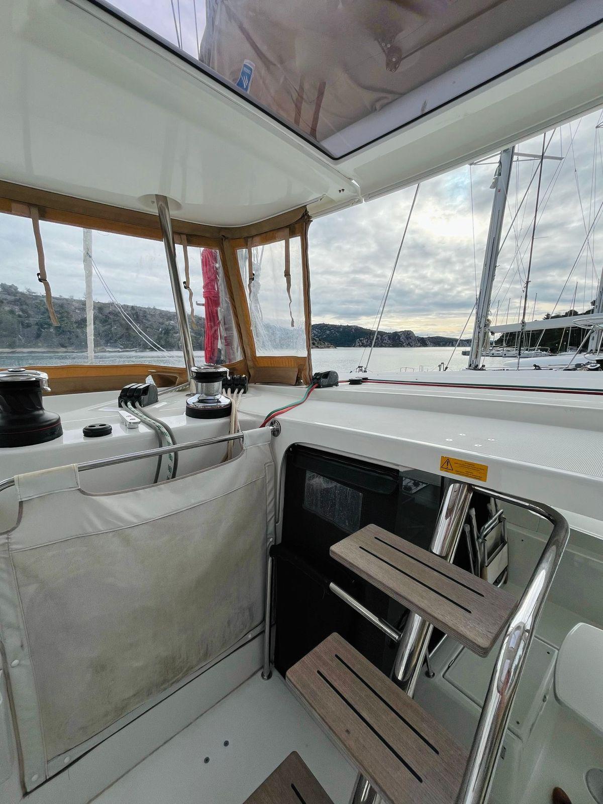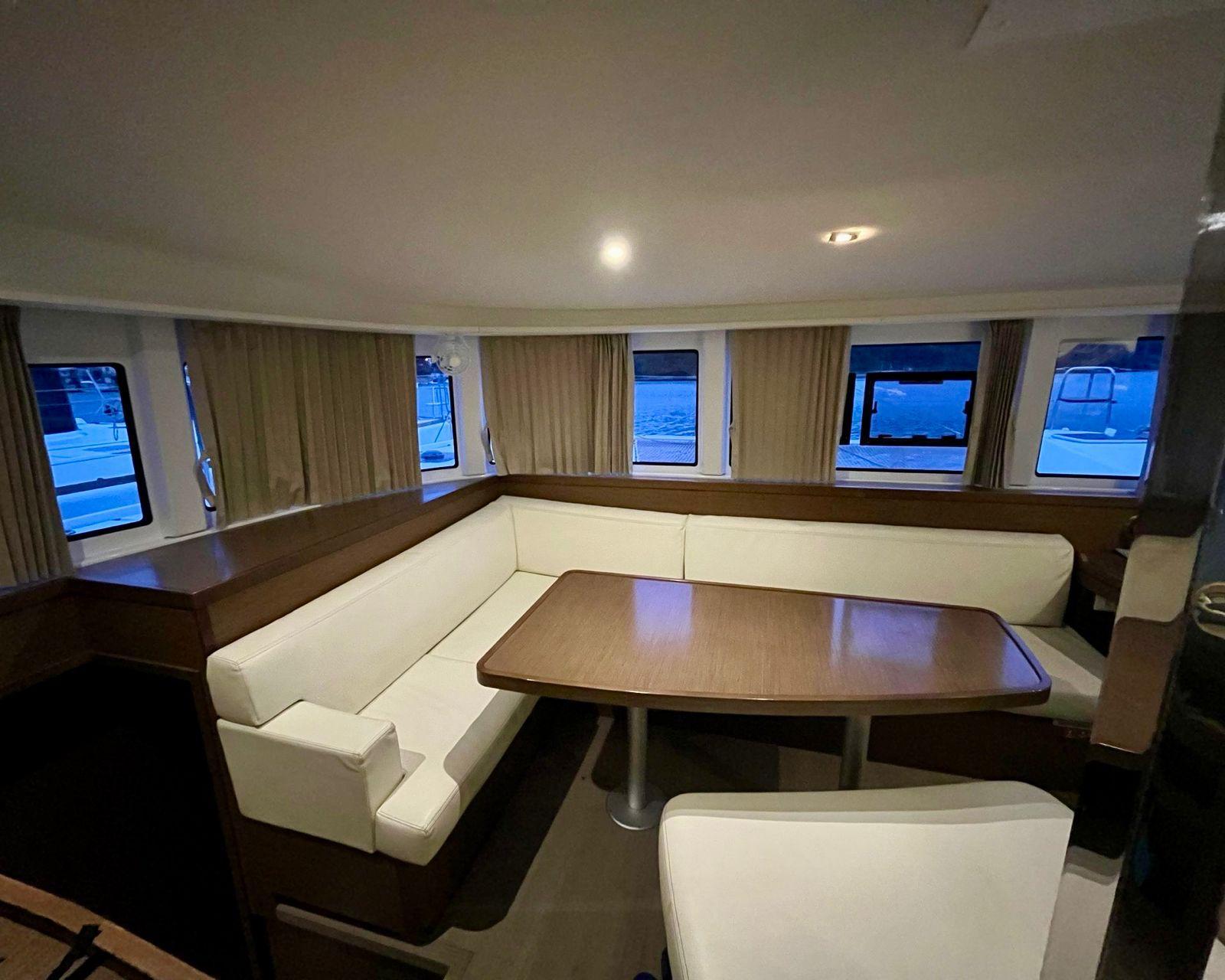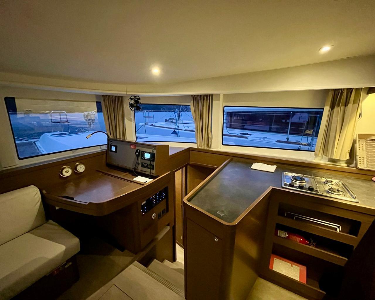 PACK CONFORT (Pulpits with wooden seats, Fusion USB Player + 2 loudspeakers in salon, Electrical circuit with 40 Amp battery charger, 2 additional service batteries 140Amp, Battery controller, Helm seat cushions Dark Grey, Flag halyards on spreaders, Additional fuel tank (300L), Indirect lighting in cabins and salon, Waterproof loudspeakers in cockpit, Aft portholes in aft cabins with curtains, Upper storage in salon on starboard, S/Steel dinghy hoist system & manual winch, Leather bulkhead organizers in the cabins, Electrical winch to port side 46.2 STAEH, Electric seawater pump, Deck wash pump sea water / fresh water, Freshwater dock inlet,).