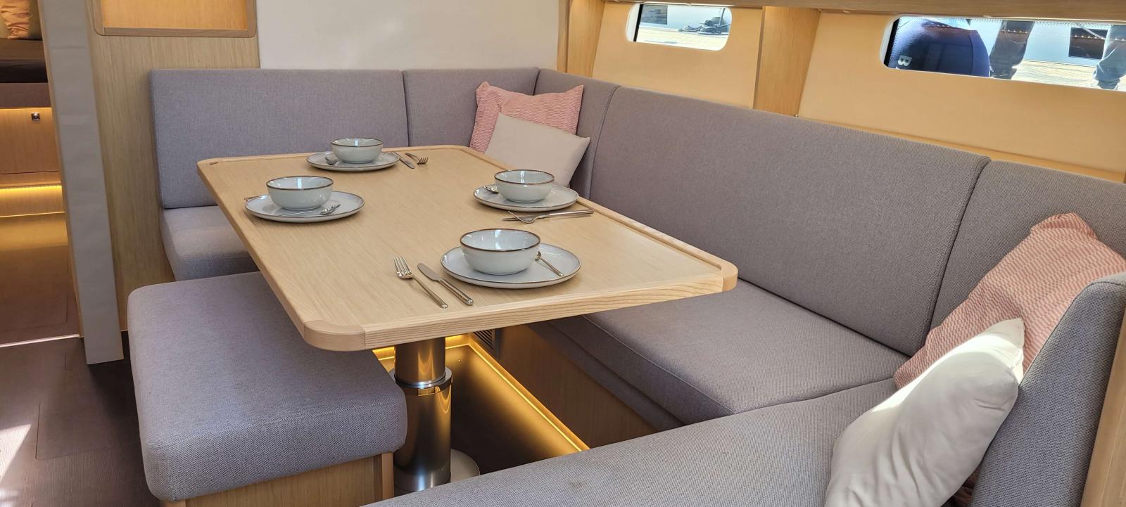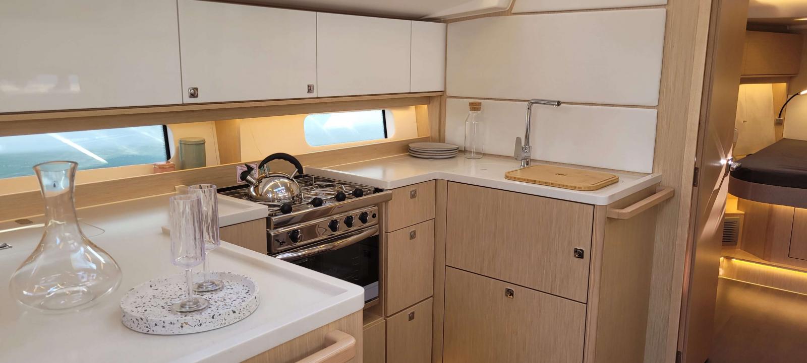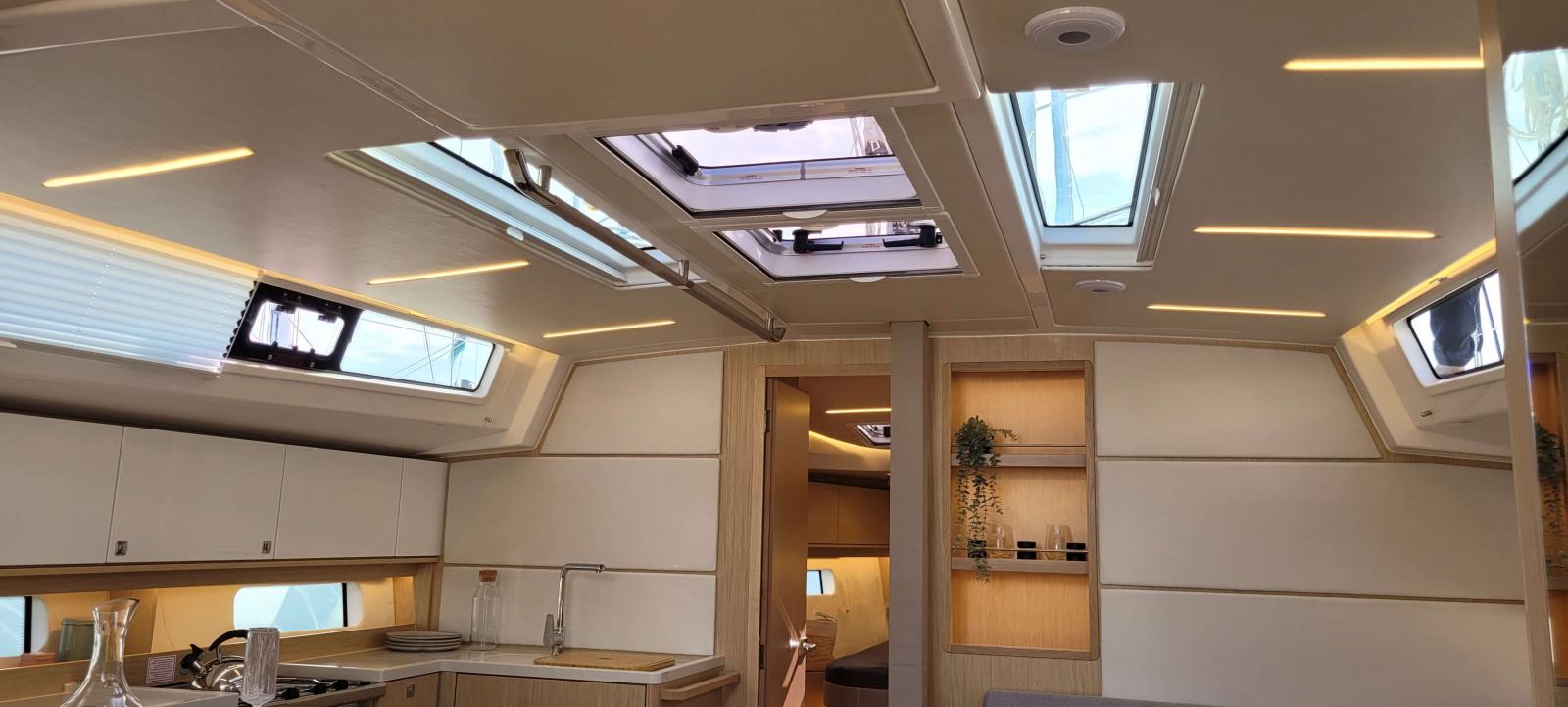 Le Bavaria C46 allie design moderne, performances marines et confort exceptionnel. Grâce à sa carène large aux bouchains marqués et son plan de voilure puissant, il offre des sensations de navigation dynamiques tout en restant stable et sécurisant. Son cockpit spacieux avec double barre à roue et bains de soleil invite à la détente, tandis que l’intérieur lumineux propose un vaste carré, une cuisine fonctionnelle et plusieurs configurations de cabines adaptées aux programmes de croisière.
