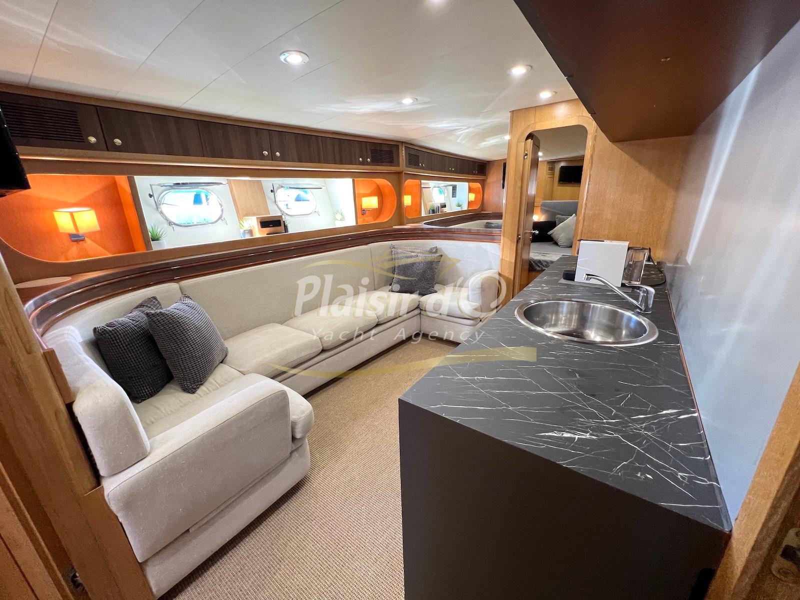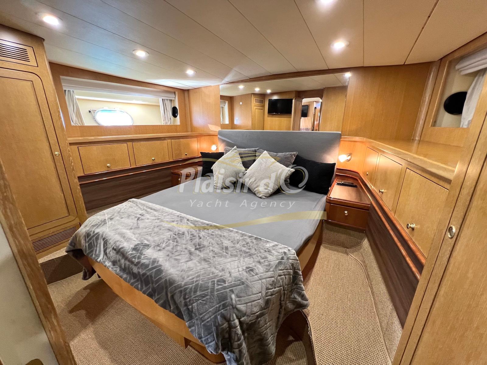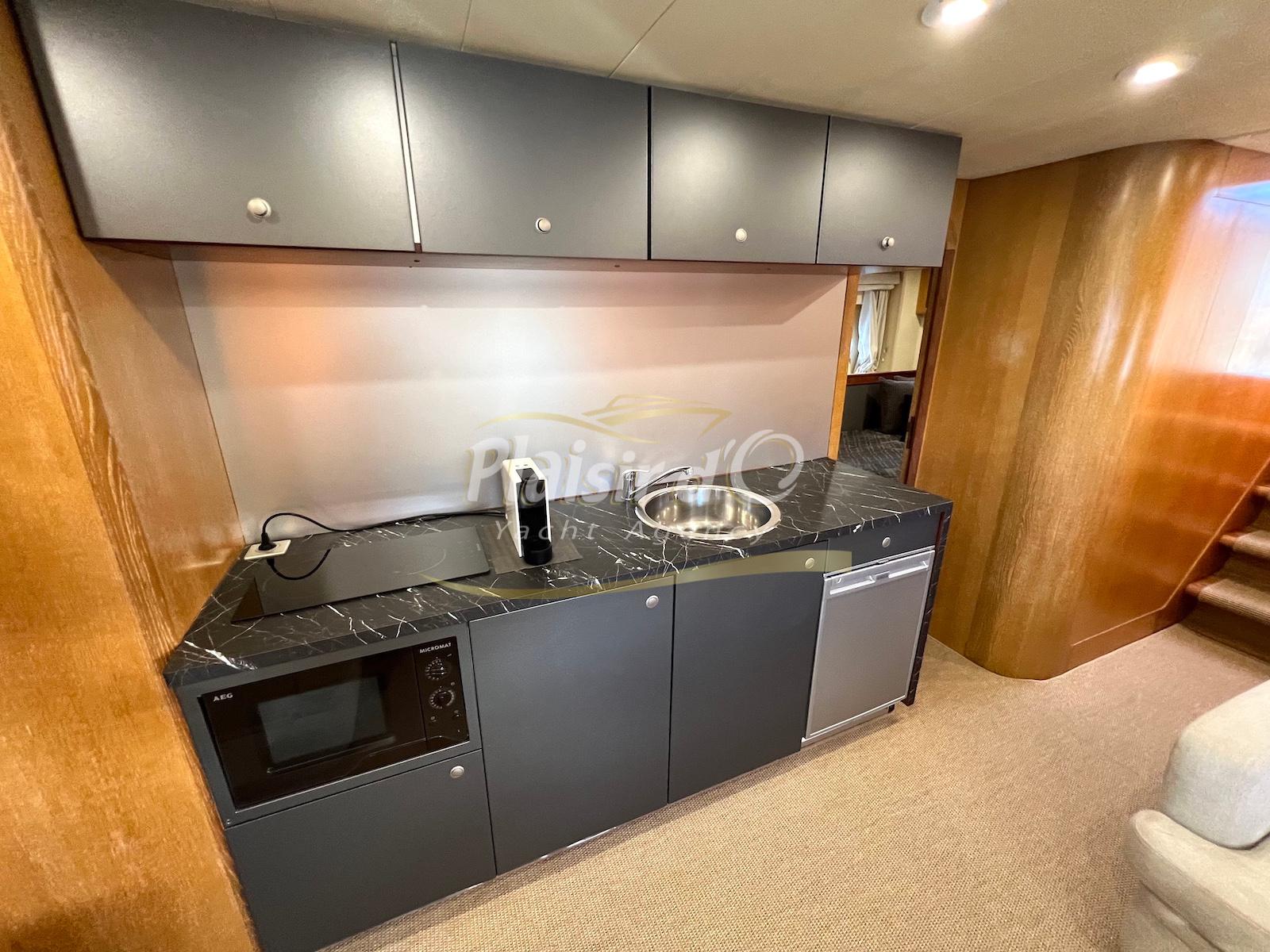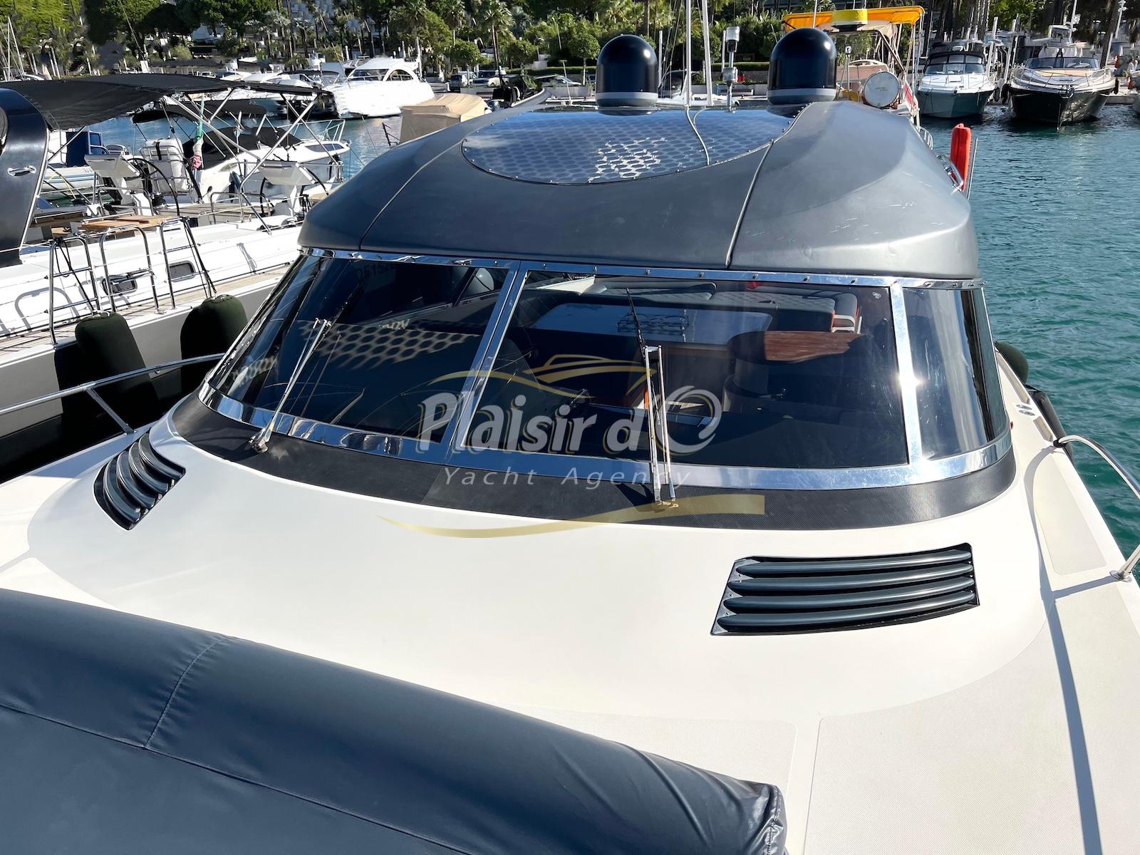 Refit complet récent, ce yacht de 16,6 m offre tout le confort haut de gamme attendu : hard top, air conditionné, 2 cabines + 2 salles de bain, cabine marin, grands bains de soleil avant/arrière, électronique complète, générateur 17kW, plateforme de bain, Flexiteck complet …