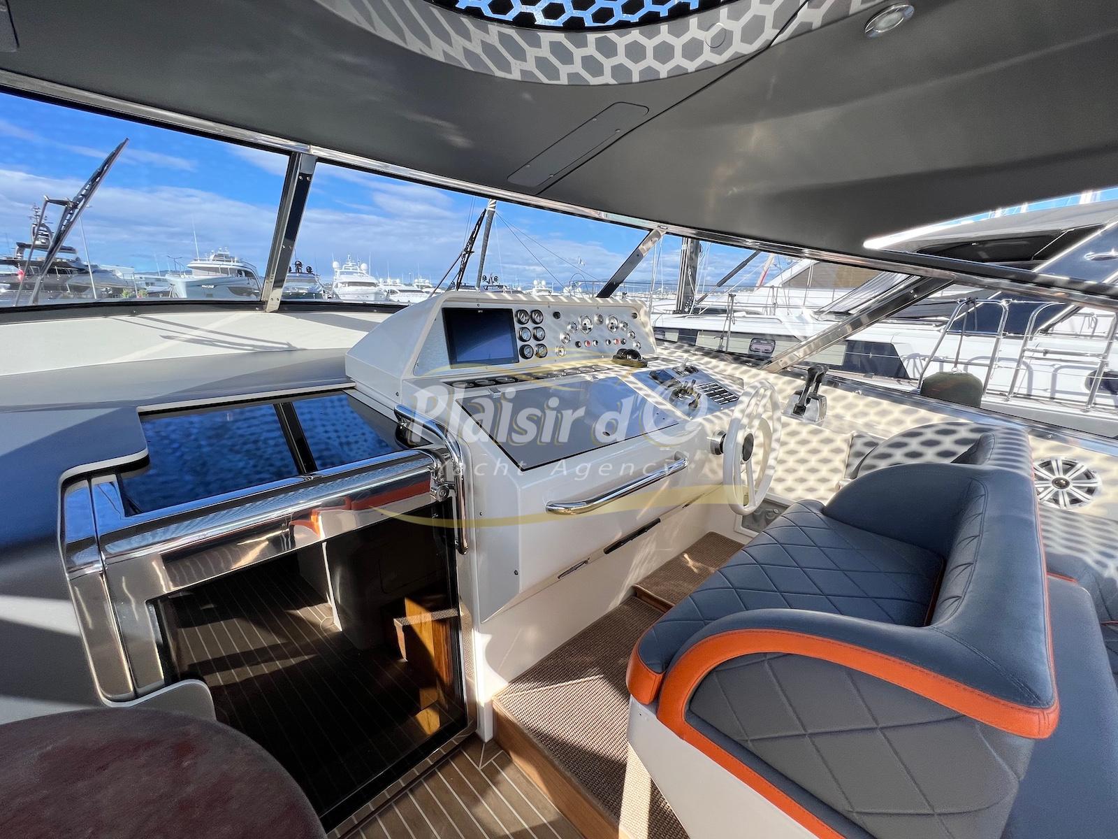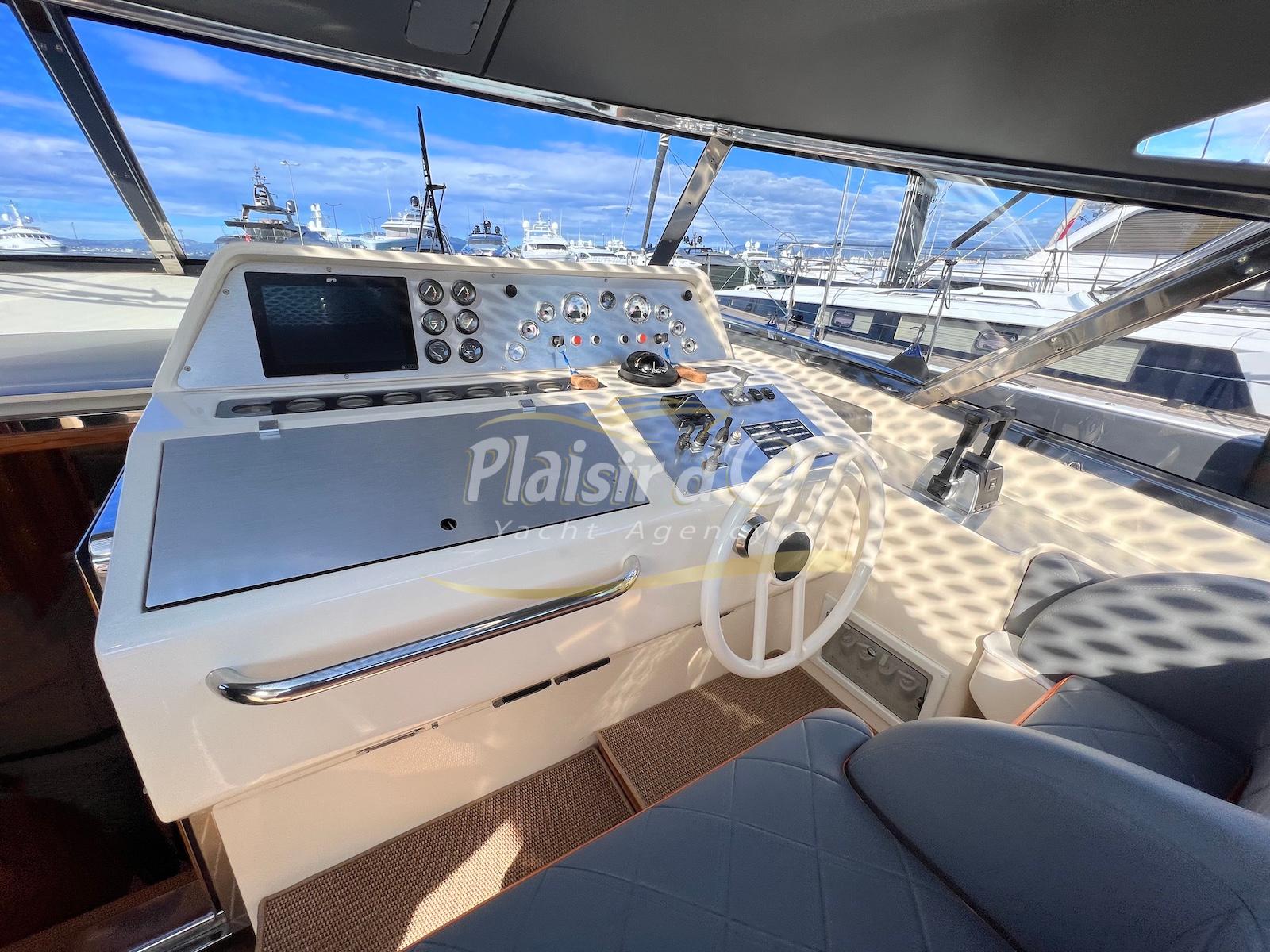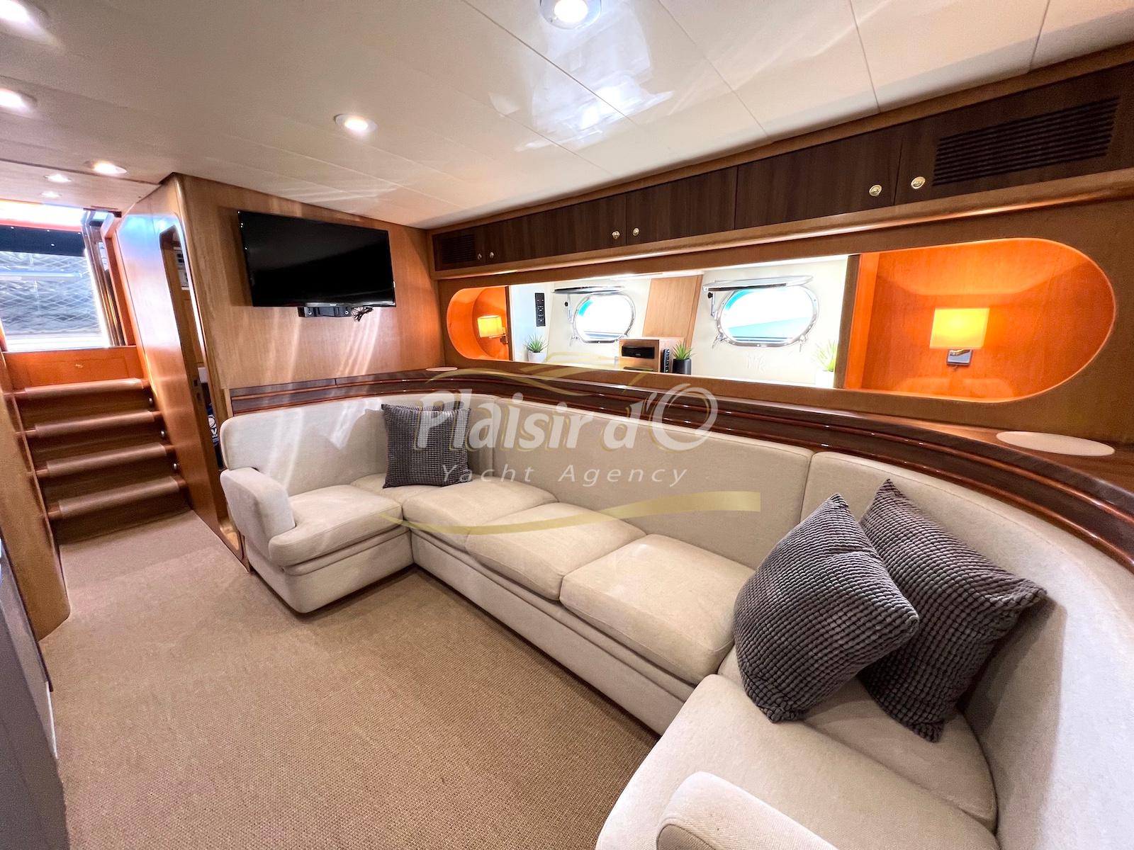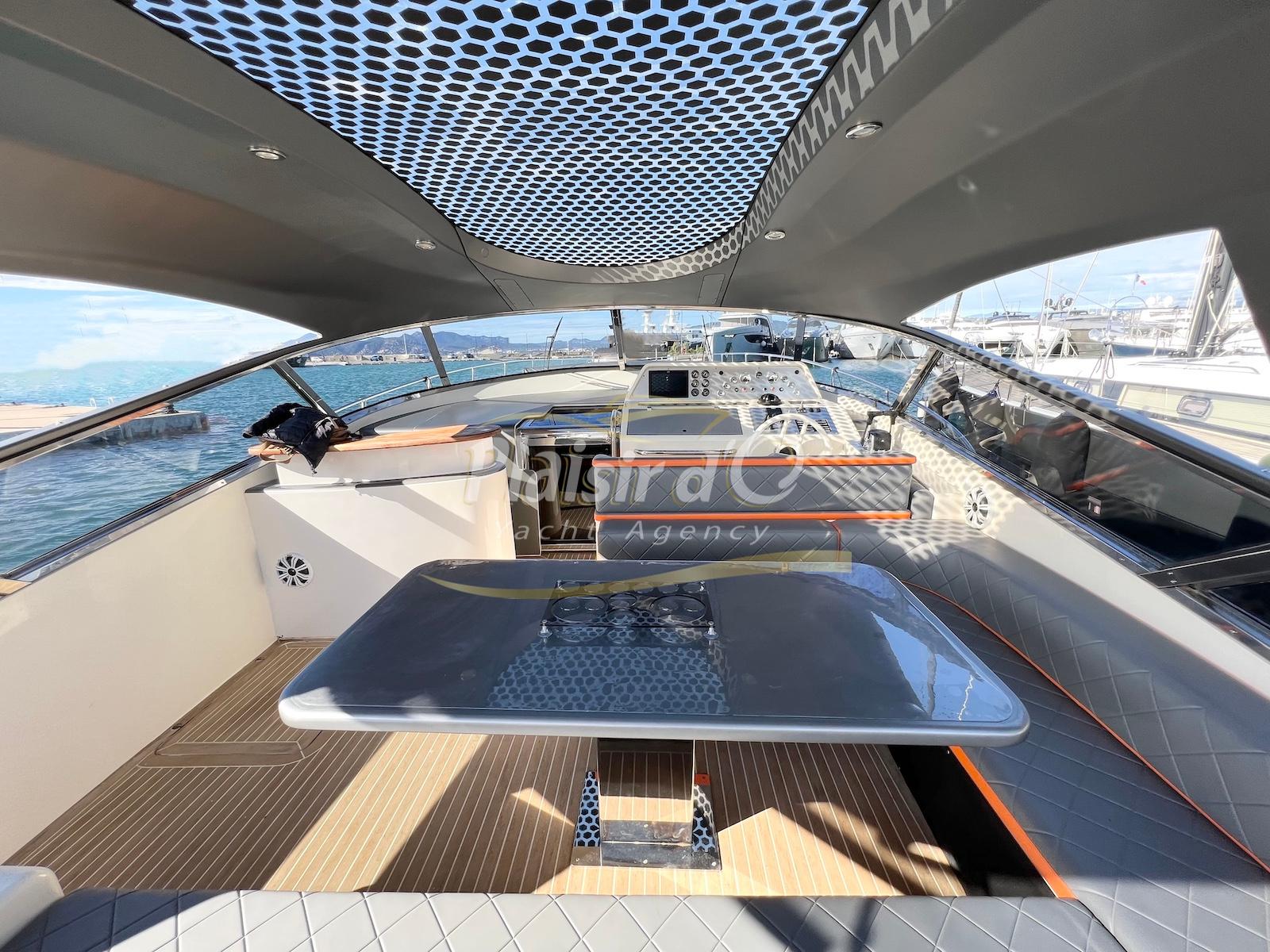 Refit complet récent, ce yacht de 16,6 m offre tout le confort haut de gamme attendu : hard top, air conditionné, 2 cabines + 2 salles de bain, cabine marin, grands bains de soleil avant/arrière, électronique complète, générateur 17kW, plateforme de bain, Flexiteck complet …