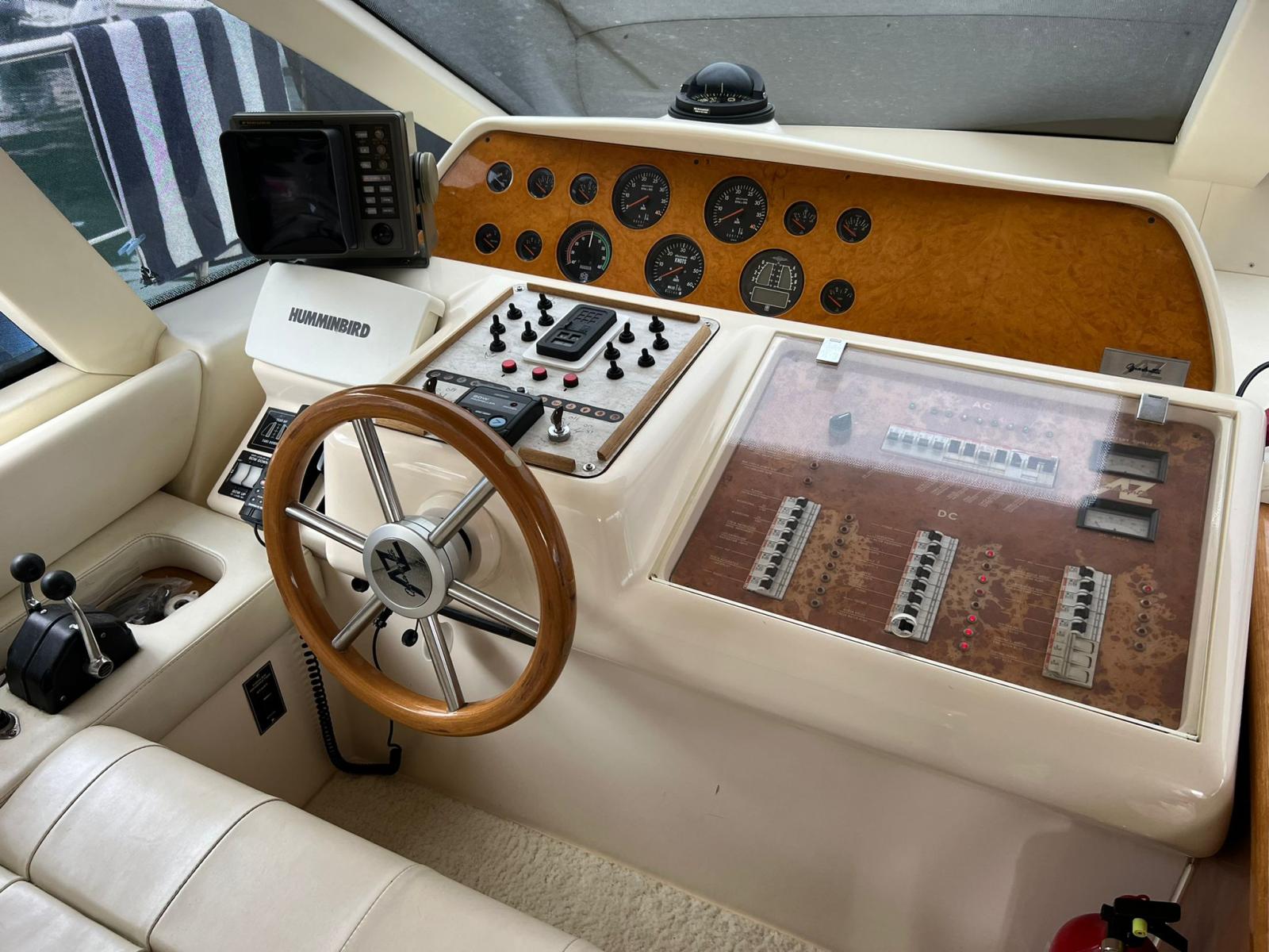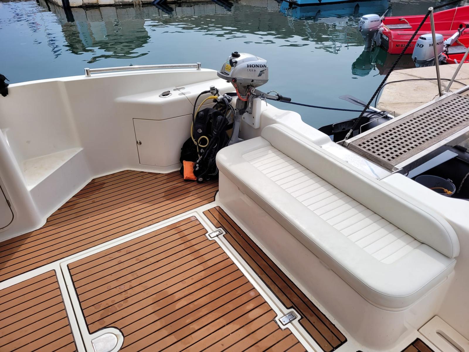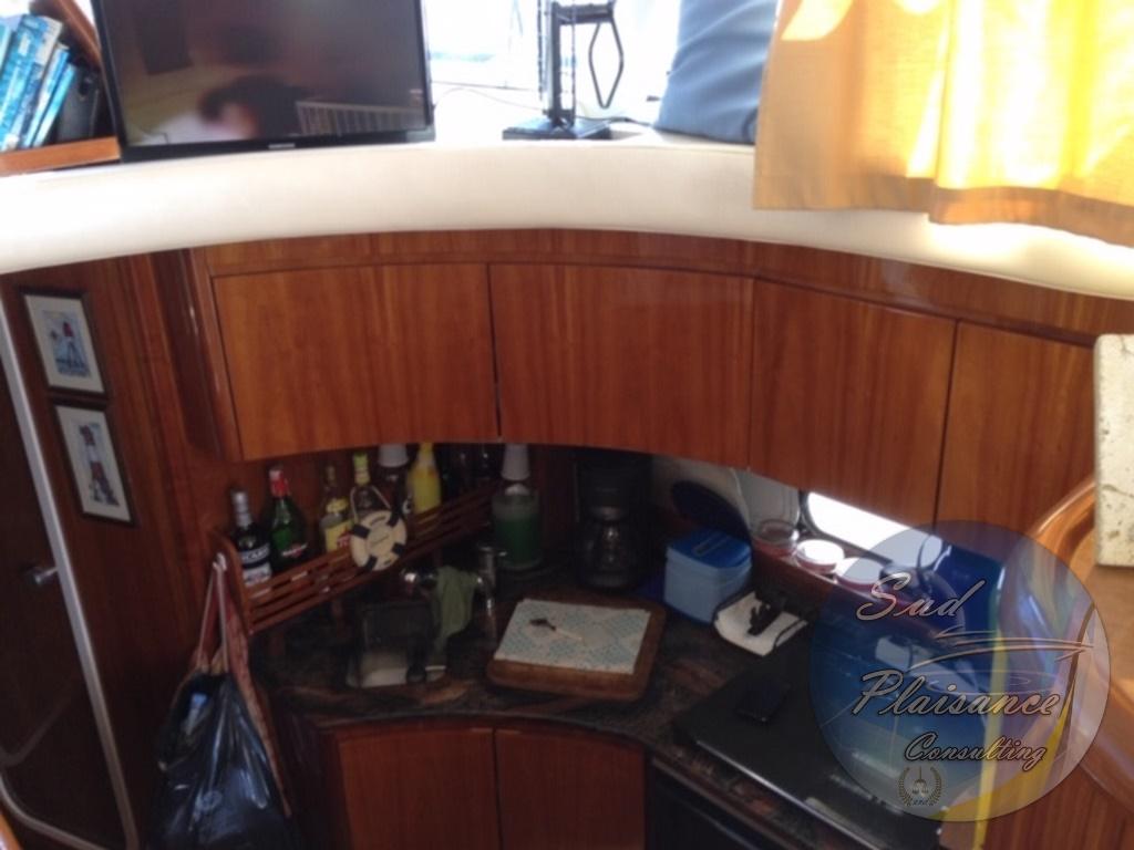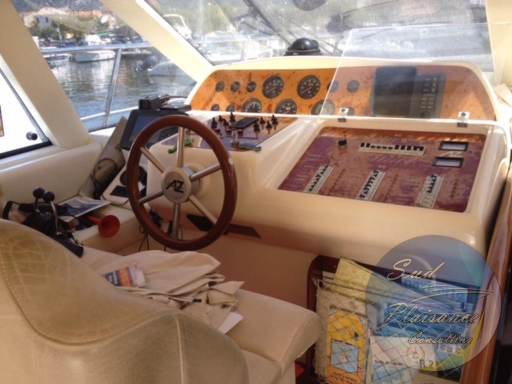 Année : 1996 Longueur (m) : 12.40 Largeur (m) : 4.00 Motorisation : 2 x350 cv IB Turbo Diesel Visible : Méditerranée Pavillon : Français Chantier : AZIMUT Modèle : Vedette - Croisière Familiale - Coque Polyester -PLAGE EN TECK -cockpit Teck Fly Bridge - Eq. Pêche - Pont Teck - Cockpit central- Confort : 6 Couchages - 1 Cab. Avant Double - 1 Cab. Lat. Double - -FRIGO x2- MICO ONDE- PLAQUES 3 feux gaz- Motorisation : CATERPILLAR 3116 - Ligne d'arbre - 1350 Heures Carburant : DIESEL réservoir Inox - Capacité totale : 1200 Litres Equipements :Flaps electrique -Propulseur d'étrave- GROUP ELECTROGENE 6KW - Electricité : SERVICE Batterie(s) 12 V / 180 Amp/H Chargeur Auto - Circuit 220 V intérieur- 12V Eau : Sous-pression - Eau Chaude - BALLON D'eau chaude 60L- Toilettes : 2 WC MARIN electrique- 2 douche(s) - Douche de pont- Cuisine : PLAQUES feux gaz - Micro-onde - Frigo - : Hifi - Electronique : Centrale de navigation : - Sondeur/Gps R -1 gps Loch/Speedo- 2 VHF AIS 700 2019 -GPS -Radar Furuno -Pilote Raymarine connecté aux deux GPS -Lecteur de cartes Sécurité : Catégorie de conception Cat B - Niveau d'armement Hauturier complet - Sellerie : Taud Hiver - Taud de soleil - Bain de soleil - sellerie de cockpit - - selleries en parfait état Mouillage : Guindeau électrique - Divers : Echelle de bain - Jupe / Pl.Forme AR et Cockpit EN TECK FLEXI- Passerelle Hydraulique - Annexe ZODIAC 6Përs BOMBARD- MOT HONDA 4tps 6Cv- Survie 6 pers Révisée Observations : A saisir unité de très bonne qualité cosmétique , esthétique et très équipé group- passerelle hydraulique à bord . Unité très polyvalente , idéal pour les croisières Hauturière grâce à sont excellent passage en Mer et sa mécanique fiable et réputé pour sa robustesse . Excellent rapport poids puissance, vitesse de croisiere 20Nds... La timonerie est bien conçue, avec un salon face à un bloc-cuisine complet avec Lave Viasselle . Il comprend un évier, Plaque feux gaz , 1 réfrigérateur + 1 Fly et un four à micro-ondes. Voici un vrai bateau de croisière qui réussit à présenter une ligne sportive tout en montrant des qualités marines très saines et une habitabilité remarquable, le tout dans moins de 14 mètres. Possibilité de place de Port Etat général : 5/5 Qualité/ Prix : 5/5