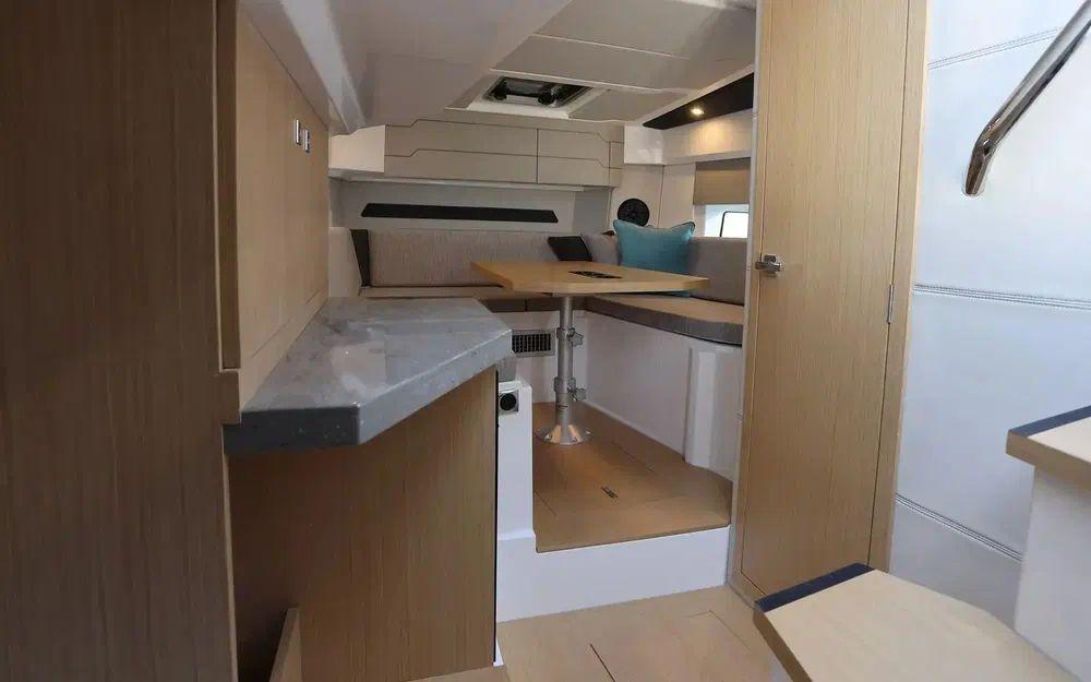 Plancher intérieur en noyer, Meuble cuisine extérieur avec nombreux rangement, Réservoir carburant 570L,