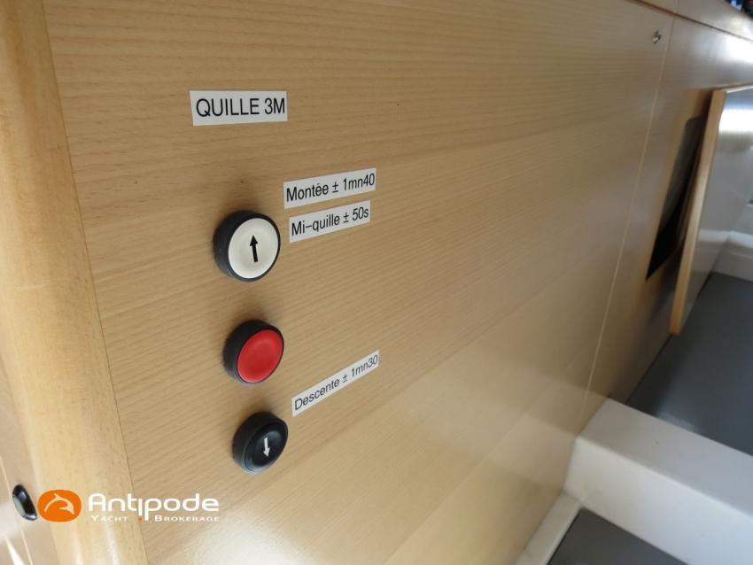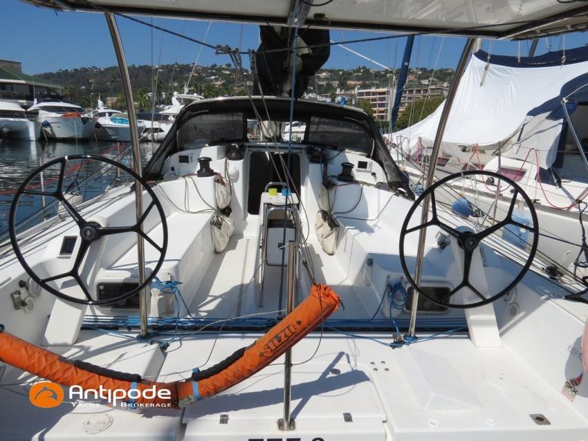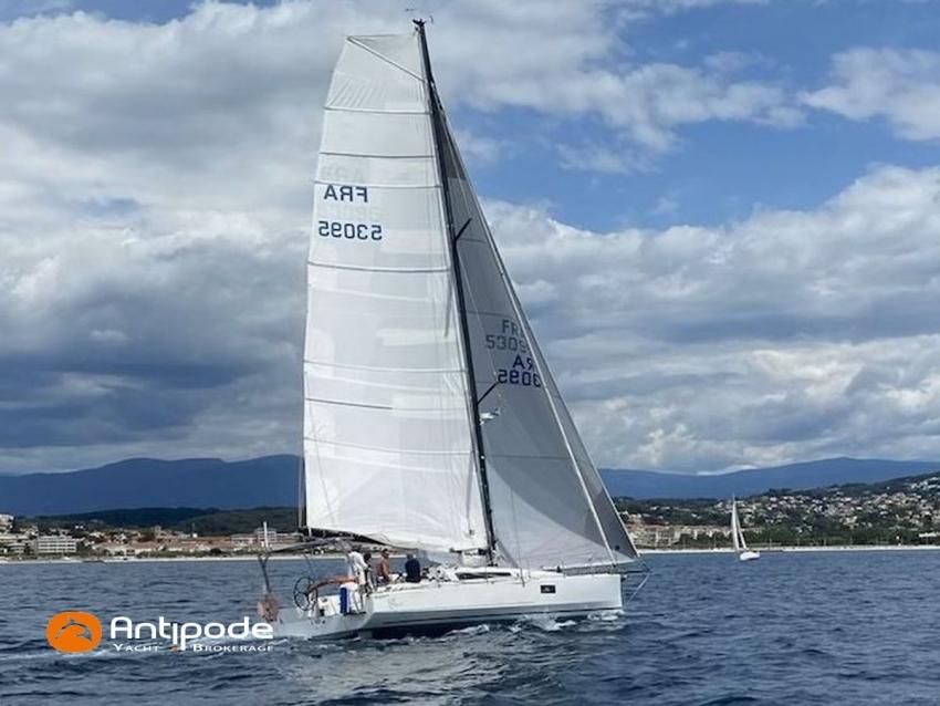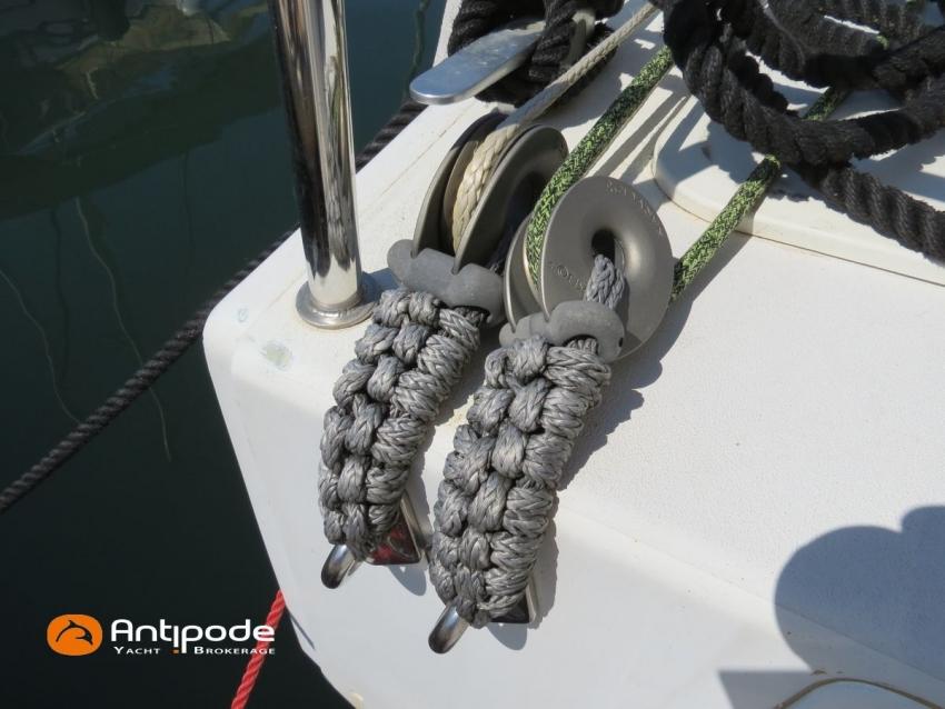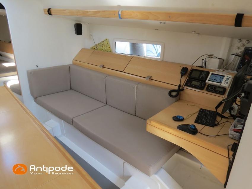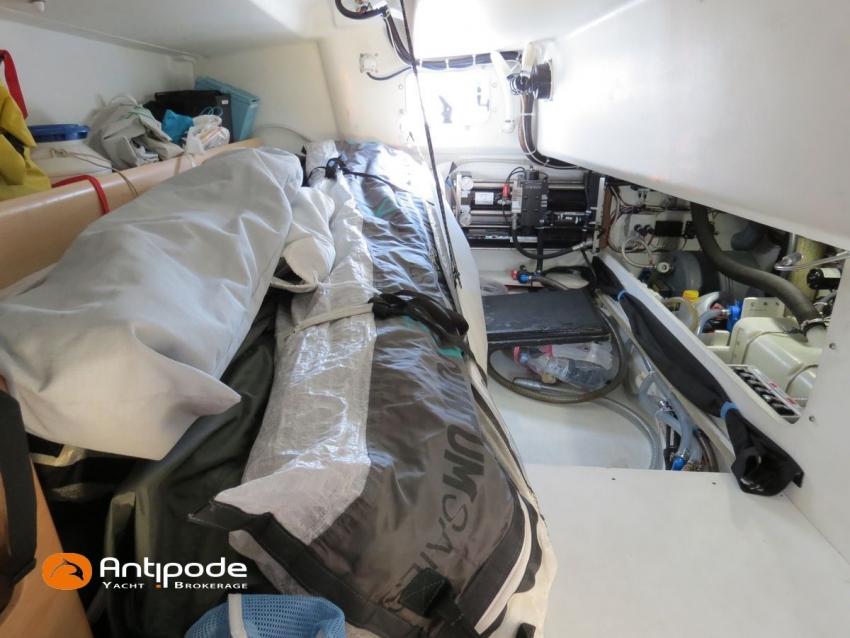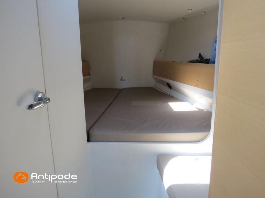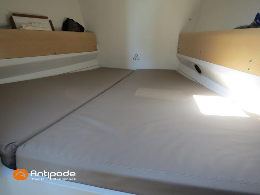 POGO 1250, 2015, VOLVO D1-30 F, 27 cv (1016 h), Version d'aménagement intérieur 1 cabine avant, 2 cabines arrière, 1 cabinet de toilette et douche avec wc, 1 salle d'eau (cabine avant avec douche et lavabo), Selleries cabines Silvertex + Option Matelas Confort Supérieur, Alèses et draps housses sur mesure, Toiles anti roulis dans le carré et cabines arrière, Protections UV sur les hublots latéraux du roof, Bout-dehors rétractable carbone, Support radeau de survie dans les balcons, Table de cockpit avec rangement central et abattants, Double barres à roue composite, Capote de roof 2022 avec protection UV sur les plexy, Taud de soleil, Guindeau électrique Quick remplacé en 2023 avec télécommande compteur de chaine, Télécommande guindeau au cockpit, Portique arrière avec bossoir basculant et palan de charge pour moteur hors bord (2018), Support moteur hors-bord, Mât carbone, Gréement dormant câble Dyform de 2015, démâtage pour contrôle en 2018, Voiles Incidences 2015 : Gv à corne Hydranet full batten + Spi asy 140m² avec chaussette + trinquette sur mousquetons (à modifier pour utiliser la drisse moufflée) + lazybag, Voiles 2018 Quantum : GV 3 ris 57.23m² full batten MC6500 + A0 92.30m² (code 0) + Jib top CZ90 54.91m² + Trinquette MC6000 21.80m² + Tourmentin 12.97m² + Genois MC6500 42.47m² + taud de GV + lazy jacks + lazybag de navigation avec sacs à drisses + sacs de pont pour trinquette, Jib Top et A0, Rail de guindant de grand voile + chariots de lattes et chariot de tétière Karver, Prises de ris au cockpit (amures et chutes séparées), Enrouleur de génois avec tambour sur le pont - Facnor Flatdeck (tambour 2022 et émerillon 2021), Fourreau de protection pour génois enrouleur, Emmagasineur Karver F5 avec sa housse de stockage dans les filières pour A0 et Gennaker, Emmagasineur Karver F2 avec sa housse de stockage dans les filières pour trinquette ou tourmentin, Gréement courant Dyneema, drisses GV + trinquette + gennaker / jib top moufflées, Hautes et basses bastaques (2018), Deux vérins in board de pilotes automatiques : Raymarine électrique et Lecomble & Schmidt hydraulique, 2 calculateurs gyropilot 2 NKE, Switch pour changer de vérin ou de centrale NKE (centrale de secours fonctionne uniquement en mode compas), 4 x Gyrographics NKE : 2 à tribord + 1 à babord (pour deuxième centrale) + 1 table à carte, Box wifi NKE, GPS HF + Anémo - girouette HR + Capteur barométrique HR100 - NKE, Mode vent réel, Compas NKE Régata pour centrale n°1 et Fluxgate pour centrale n°2 , GPS / lecteur de carte dans le cockpit au poste de barre babord - B&G Vulcan 7 pouces, Cartographie électronique - C-Map (Centre et Ouest Europe Continentale), Radar avec radôme sur support de mât - Koden (2018), Amplificateur radar Echomax, Transpondeur AIS (émetteur récepteur) - Icom MA500-TR, VHF ASN GPS à la table à carte - Icom , Système audio Fusion + HP intérieurs + HP extérieurs remplacés en 2021, Ordinateur marinisé L5 Intel avec écran 15 pouces sur bras articulé + TimeZero (licence à mettre à jour), Réveil 100db , Balise de détresse - Ocean Signal (exp. Sept 2029), Unité réfrigérante 12 V ouverture par le dessus, Eau chaude et froide sous pression, Gazinière 2 feux + four, Prise de quai 220 V + chargeur de batteries - Cristec 12 - 40A, 3 x Batteries service - Exide 3 x 95Ah (2022), Convertisseur 12 V / 220 V à la table à carte, Prises intérieures 220 V, Contrôleur / gestionnaire de batteries - Victron, Chauffage EBERSPACHER, Dessalinisateur 12 V - Aquabase 35L/h (2018), Réservoir rigide eaux noires, Panneaux solaires - Solara - 2 x 150W + MPPT Victron (2018), Hydrogénérateur Watt & Sea 600W avec deuc supports sur tableau arrière (2018), Douchette de cockpit eau chaude / eau froide, Feux de navigations à Leds (dans balcons et tête de mât), Radeau de survie Seasafe 6 pers. - Prochaine révision Mai 2026, Equipement de sécurité hauturier 4 personnes (hors VHF portable), Mouillage principal ancre Spade 15kg et 50m de chaine, Amarres et défenses, Annexe Zodiac Fastroller Cadet 325, Moteur hors-bord Yamaha 9.9cv avec sa nourrice, Deuxième main, même propriétaire depuis 2018, jamais loué, Visible Méditerranée. Pour plus d'informations ou pour fixer un rendez-vous de visite, contact : Jean-Baptiste Lemaire 06 10 25 00 03 - jb@antipode-yachts.com