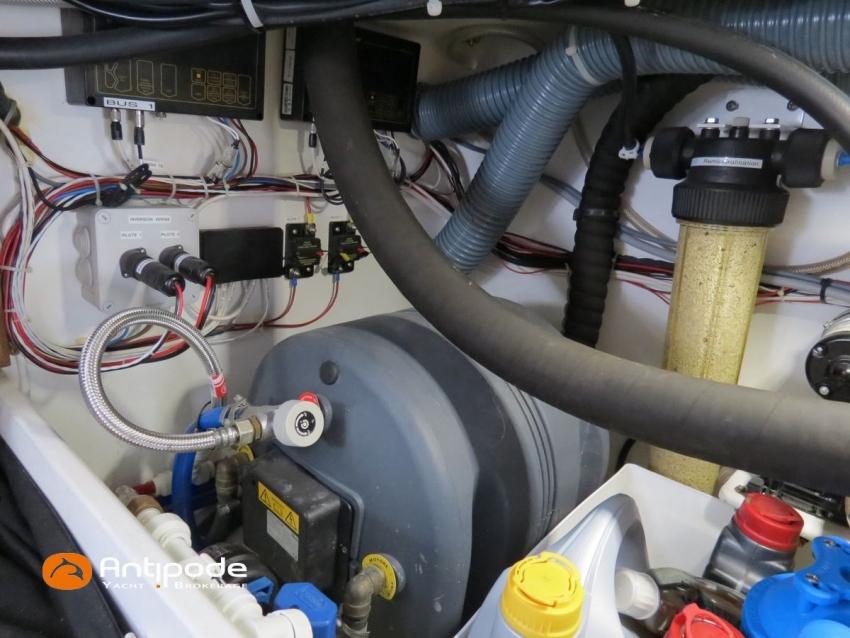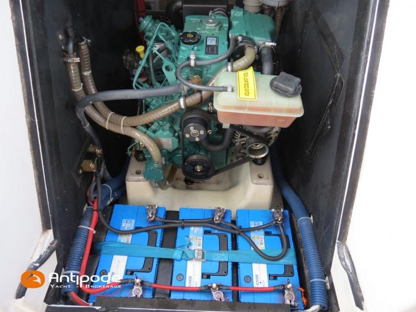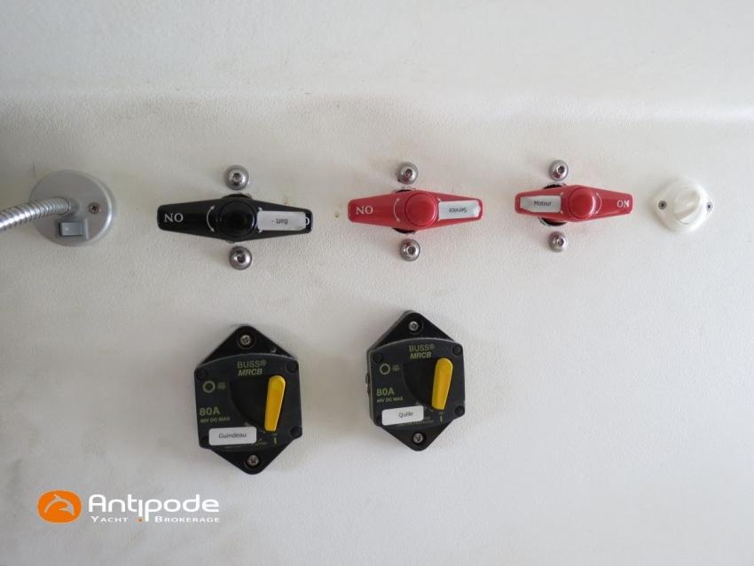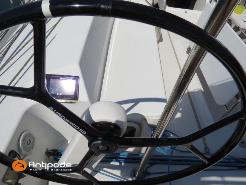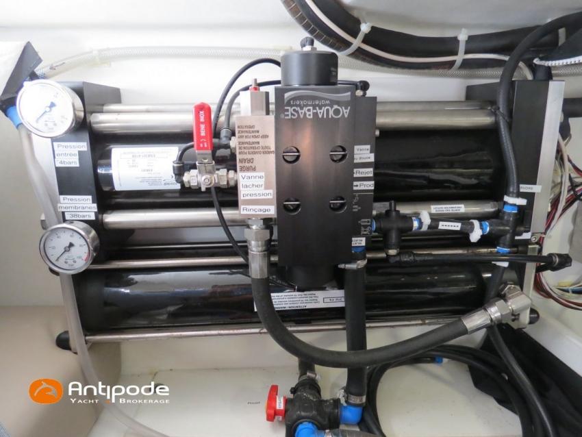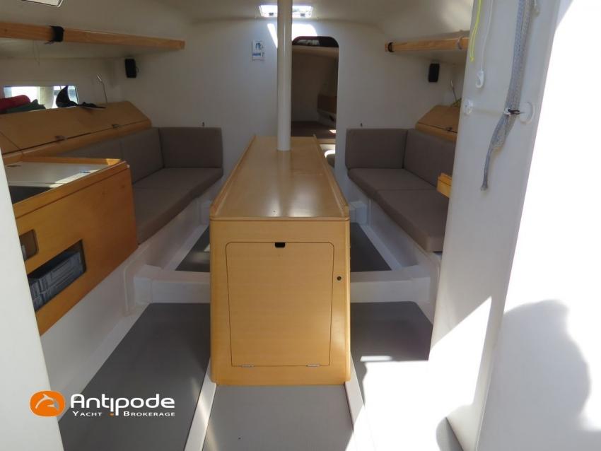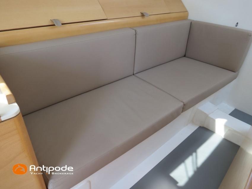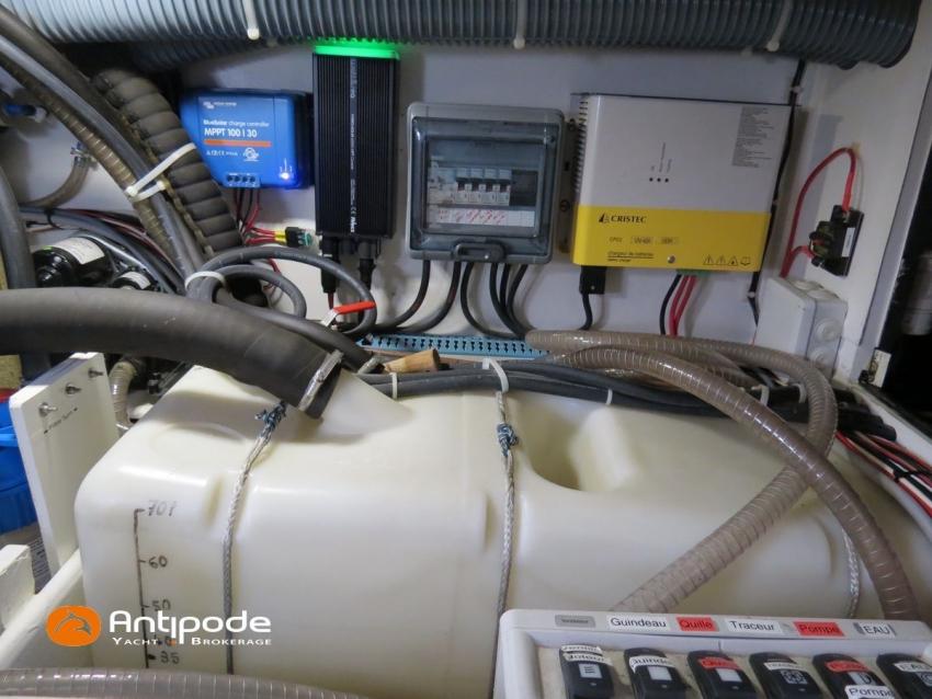 POGO 1250, 2015, VOLVO D1-30 F, 27 cv (1016 h), Version d'aménagement intérieur 1 cabine avant, 2 cabines arrière, 1 cabinet de toilette et douche avec wc, 1 salle d'eau (cabine avant avec douche et lavabo), Selleries cabines Silvertex + Option Matelas Confort Supérieur, Alèses et draps housses sur mesure, Toiles anti roulis dans le carré et cabines arrière, Protections UV sur les hublots latéraux du roof, Bout-dehors rétractable carbone, Support radeau de survie dans les balcons, Table de cockpit avec rangement central et abattants, Double barres à roue composite, Capote de roof 2022 avec protection UV sur les plexy, Taud de soleil, Guindeau électrique Quick remplacé en 2023 avec télécommande compteur de chaine, Télécommande guindeau au cockpit, Portique arrière avec bossoir basculant et palan de charge pour moteur hors bord (2018), Support moteur hors-bord, Mât carbone, Gréement dormant câble Dyform de 2015, démâtage pour contrôle en 2018, Voiles Incidences 2015 : Gv à corne Hydranet full batten + Spi asy 140m² avec chaussette + trinquette sur mousquetons (à modifier pour utiliser la drisse moufflée) + lazybag, Voiles 2018 Quantum : GV 3 ris 57.23m² full batten MC6500 + A0 92.30m² (code 0) + Jib top CZ90 54.91m² + Trinquette MC6000 21.80m² + Tourmentin 12.97m² + Genois MC6500 42.47m² + taud de GV + lazy jacks + lazybag de navigation avec sacs à drisses + sacs de pont pour trinquette, Jib Top et A0, Rail de guindant de grand voile + chariots de lattes et chariot de tétière Karver, Prises de ris au cockpit (amures et chutes séparées), Enrouleur de génois avec tambour sur le pont - Facnor Flatdeck (tambour 2022 et émerillon 2021), Fourreau de protection pour génois enrouleur, Emmagasineur Karver F5 avec sa housse de stockage dans les filières pour A0 et Gennaker, Emmagasineur Karver F2 avec sa housse de stockage dans les filières pour trinquette ou tourmentin, Gréement courant Dyneema, drisses GV + trinquette + gennaker / jib top moufflées, Hautes et basses bastaques (2018), Deux vérins in board de pilotes automatiques : Raymarine électrique et Lecomble & Schmidt hydraulique, 2 calculateurs gyropilot 2 NKE, Switch pour changer de vérin ou de centrale NKE (centrale de secours fonctionne uniquement en mode compas), 4 x Gyrographics NKE : 2 à tribord + 1 à babord (pour deuxième centrale) + 1 table à carte, Box wifi NKE, GPS HF + Anémo - girouette HR + Capteur barométrique HR100 - NKE, Mode vent réel, Compas NKE Régata pour centrale n°1 et Fluxgate pour centrale n°2 , GPS / lecteur de carte dans le cockpit au poste de barre babord - B&G Vulcan 7 pouces, Cartographie électronique - C-Map (Centre et Ouest Europe Continentale), Radar avec radôme sur support de mât - Koden (2018), Amplificateur radar Echomax, Transpondeur AIS (émetteur récepteur) - Icom MA500-TR, VHF ASN GPS à la table à carte - Icom , Système audio Fusion + HP intérieurs + HP extérieurs remplacés en 2021, Ordinateur marinisé L5 Intel avec écran 15 pouces sur bras articulé + TimeZero (licence à mettre à jour), Réveil 100db , Balise de détresse - Ocean Signal (exp. Sept 2029), Unité réfrigérante 12 V ouverture par le dessus, Eau chaude et froide sous pression, Gazinière 2 feux + four, Prise de quai 220 V + chargeur de batteries - Cristec 12 - 40A, 3 x Batteries service - Exide 3 x 95Ah (2022), Convertisseur 12 V / 220 V à la table à carte, Prises intérieures 220 V, Contrôleur / gestionnaire de batteries - Victron, Chauffage EBERSPACHER, Dessalinisateur 12 V - Aquabase 35L/h (2018), Réservoir rigide eaux noires, Panneaux solaires - Solara - 2 x 150W + MPPT Victron (2018), Hydrogénérateur Watt & Sea 600W avec deuc supports sur tableau arrière (2018), Douchette de cockpit eau chaude / eau froide, Feux de navigations à Leds (dans balcons et tête de mât), Radeau de survie Seasafe 6 pers. - Prochaine révision Mai 2026, Equipement de sécurité hauturier 4 personnes (hors VHF portable), Mouillage principal ancre Spade 15kg et 50m de chaine, Amarres et défenses, Annexe Zodiac Fastroller Cadet 325, Moteur hors-bord Yamaha 9.9cv avec sa nourrice, Deuxième main, même propriétaire depuis 2018, jamais loué, Visible Méditerranée. Pour plus d'informations ou pour fixer un rendez-vous de visite, contact : Jean-Baptiste Lemaire 06 10 25 00 03 - jb@antipode-yachts.com