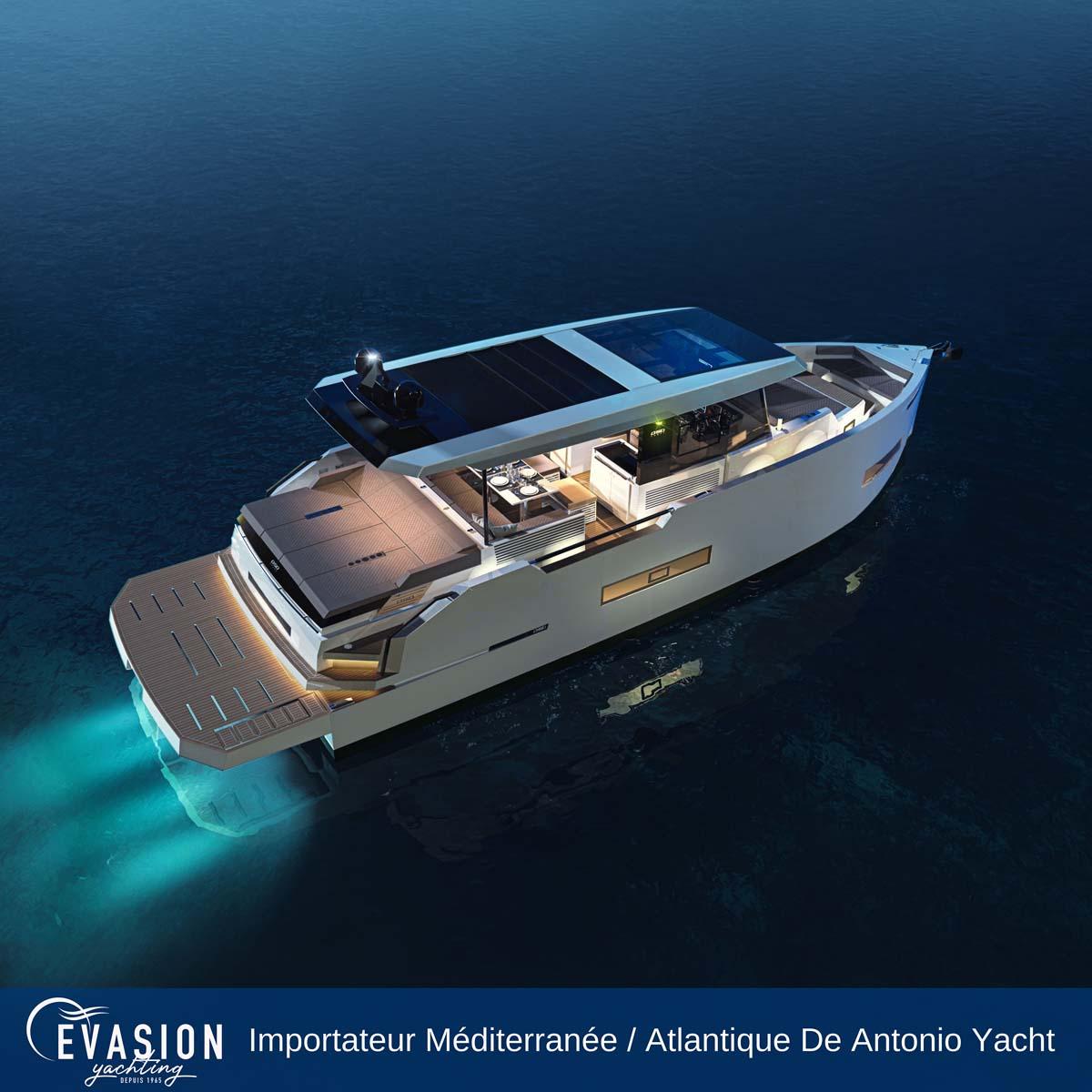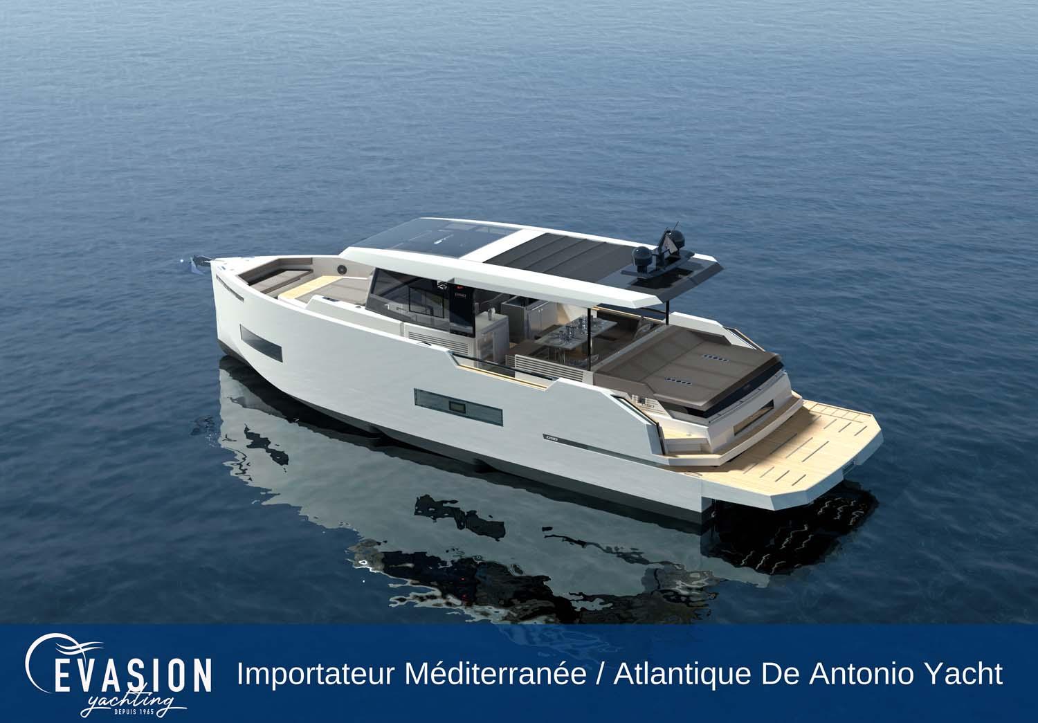 EVASION YACHTING, importateur pour une grande partie de la Méditerranée et l'Atlantique pour DE ANTONIO YACHTS, vous invite à venir découvrir le DE ANTONIO D50 Coupé NEUF, triple ou quadruple motorisation essence, sur commande.