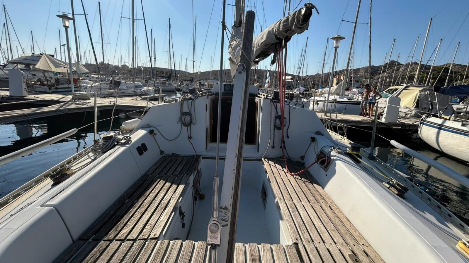 GV, génois sur enrouleur, spi symétrique, étai largable. Volvo 10cv refait entièrement (janvier 2025), pilote auto, sondeur, loch speedomètre, sondeur .