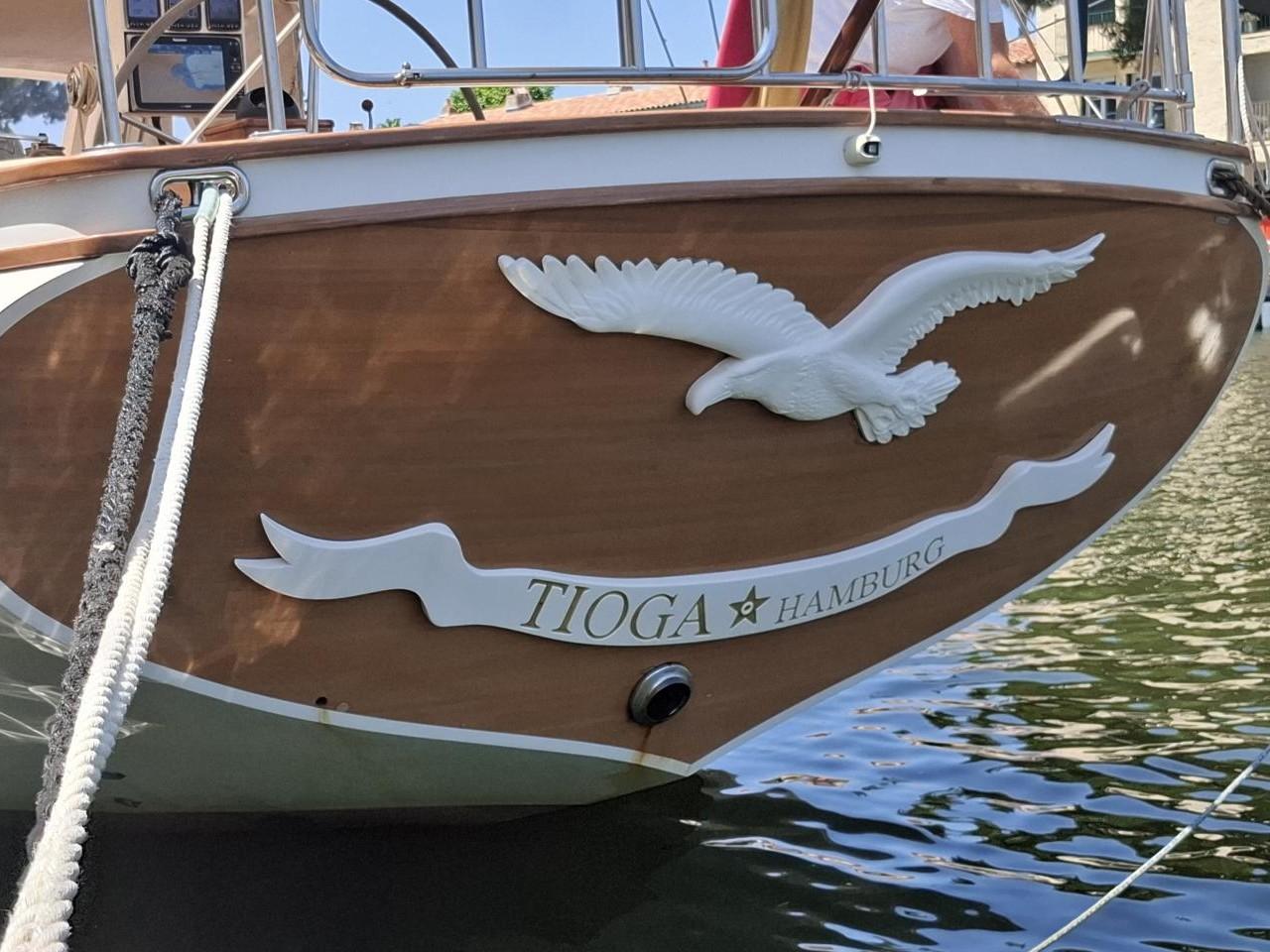 Le Tioga of Hamburg a été construit en 2012 et livré en 2013 par Josef Martin à Radolfzell, au bord du lac de Constance, en Allemagne. Ce bateau est conçu pour les longues distances et les voyages en haute mer, tout en étant capable de naviguer en eau peu profonde grâce à son tirant d'eau variable.