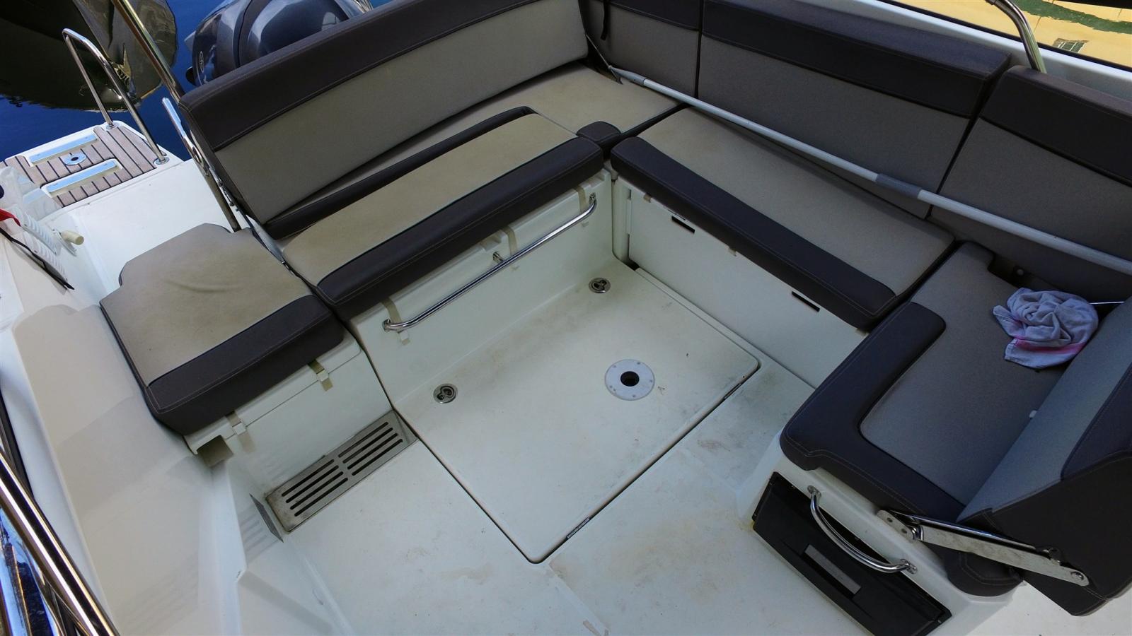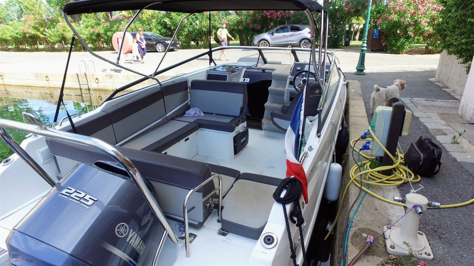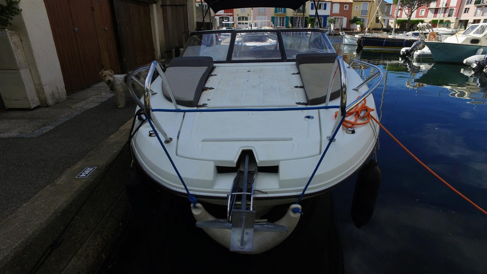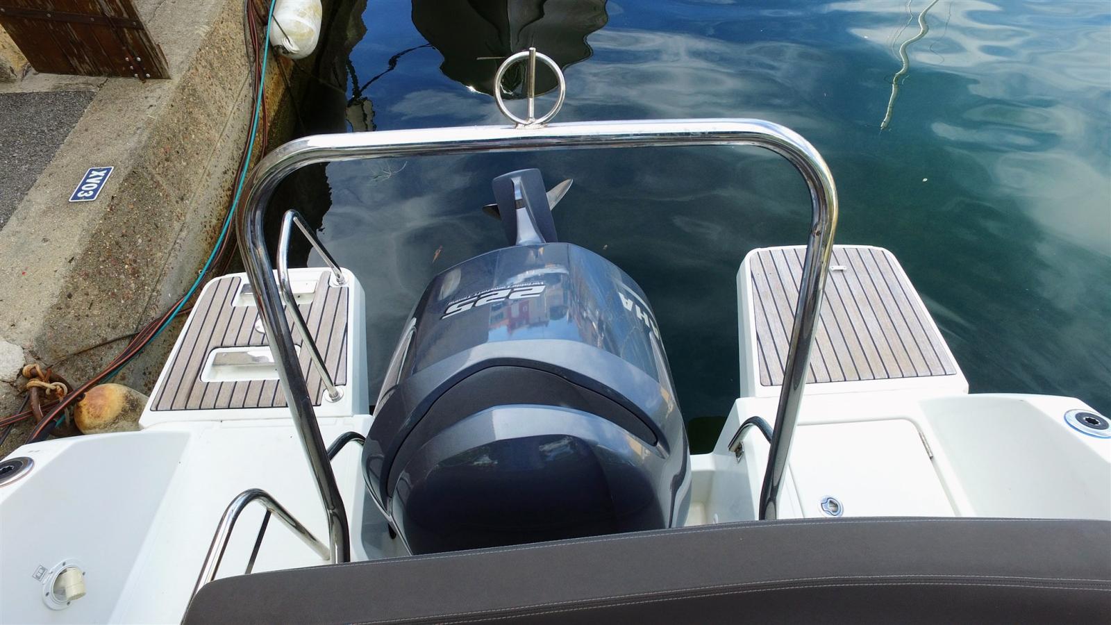 Alarme moteur, Alternateur, Eau sous pression, 2 Batteries, Douche de cockpit, 2 Flaps électriques, Crochet de remorquage pour ski nautique (Arceau), 2 Plateforme arrière, Pompe de cale automatique, Guindeau électrique, Echelle de bain (Avec main courante), table de cockpit (teck).