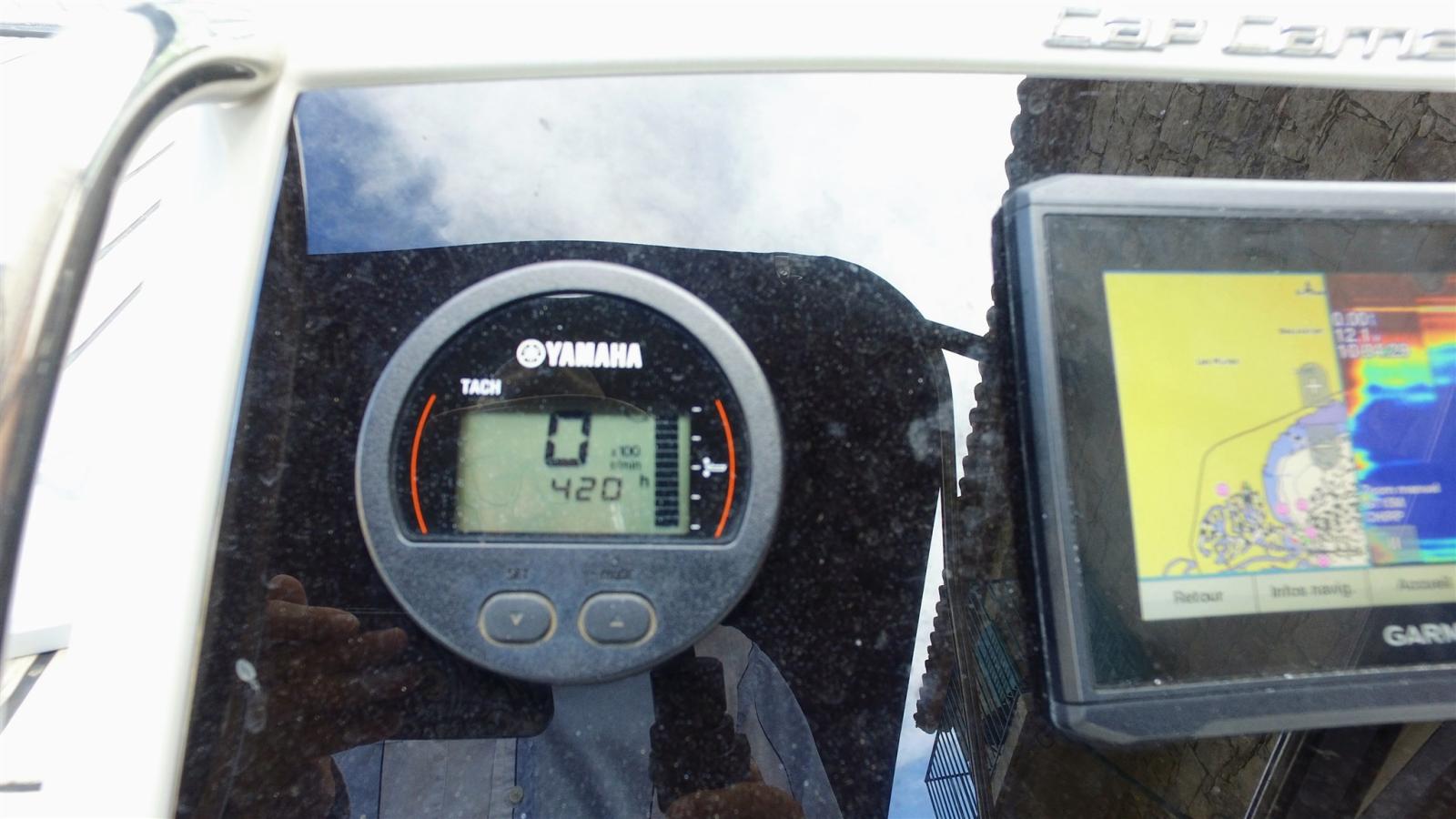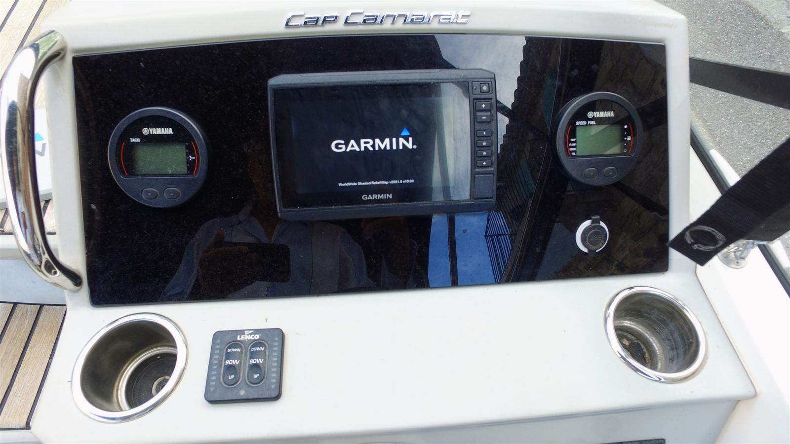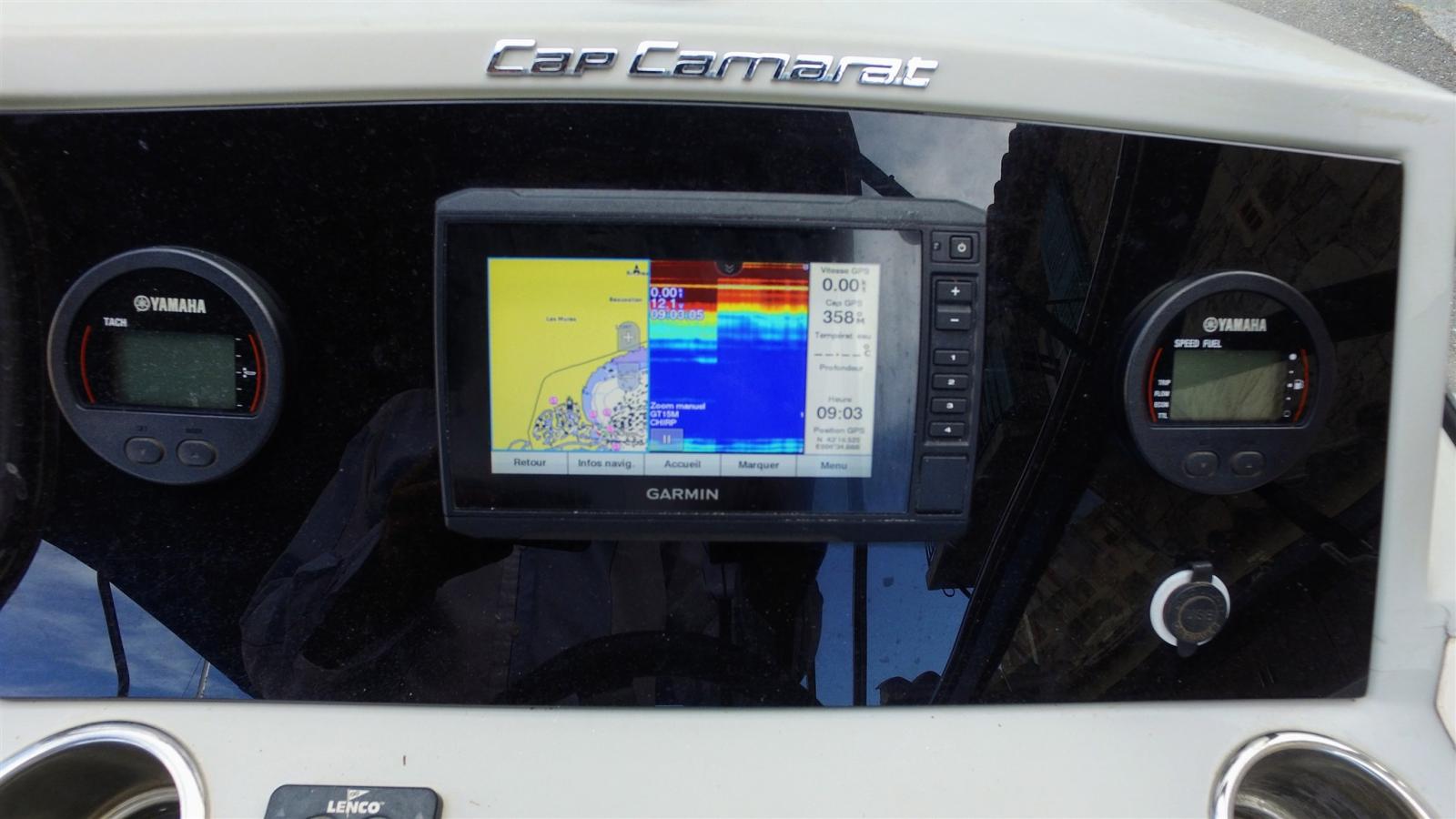 Sondeur pêche (Garmin), Loch (Yamaha), Plotter GPS (Garmin), Sondeur (Garmin).