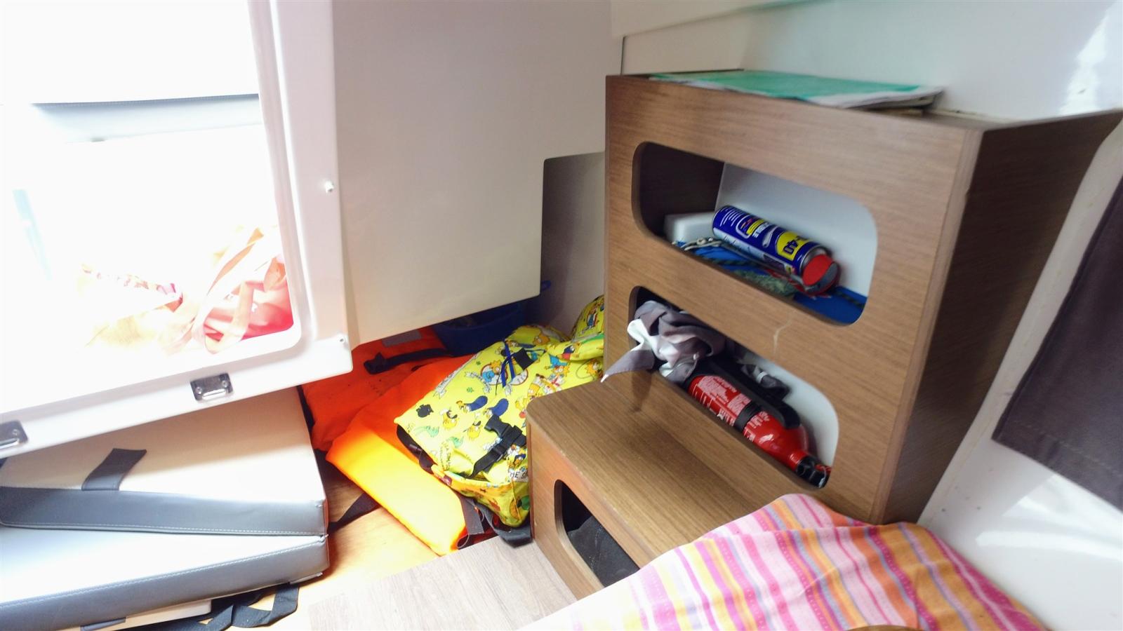 A l’intérieur, ingéniosité et modularité sont les atouts du Cap Camarat 7.5 DC. Le carré est transformable en lit double, il comporte une troisième couchette et dispose d’un WC séparé et clos.