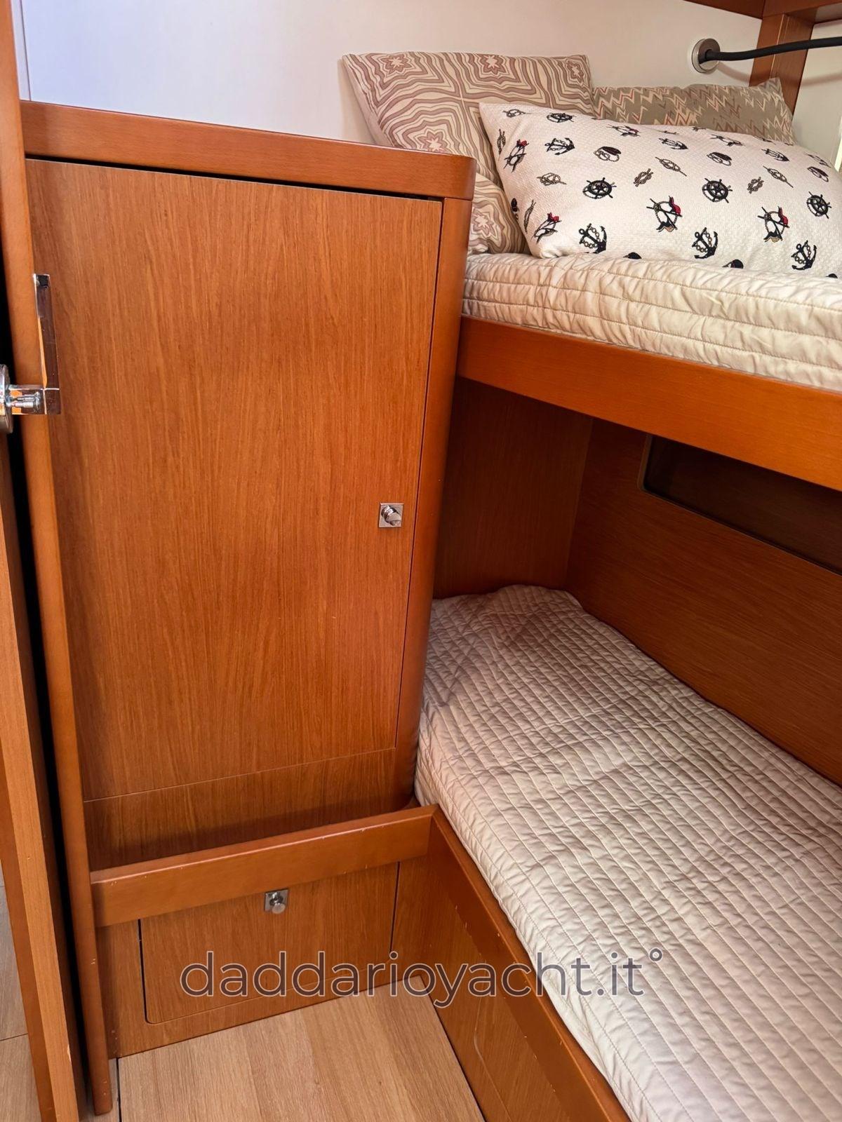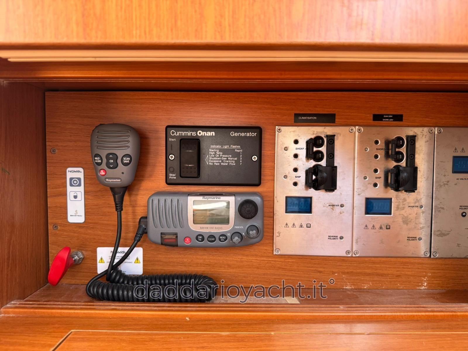 Alarme moteur, Eau sous pression, 4 Batteries, Douche de cockpit, Double barre à roue, Éclairage de courtoisie, Panneau solaire, Passerelle (COMPOSITO), Pompe à Eau de Mer (IN CUCINA), Porte latérale (ELETTRICA), Cockpit en teck, Prise de quai, Rollbar, Guindeau électrique, Gréement monotoron, Echelle de bain, Chaise support HB, table de cockpit, 4 Winch électrique.
