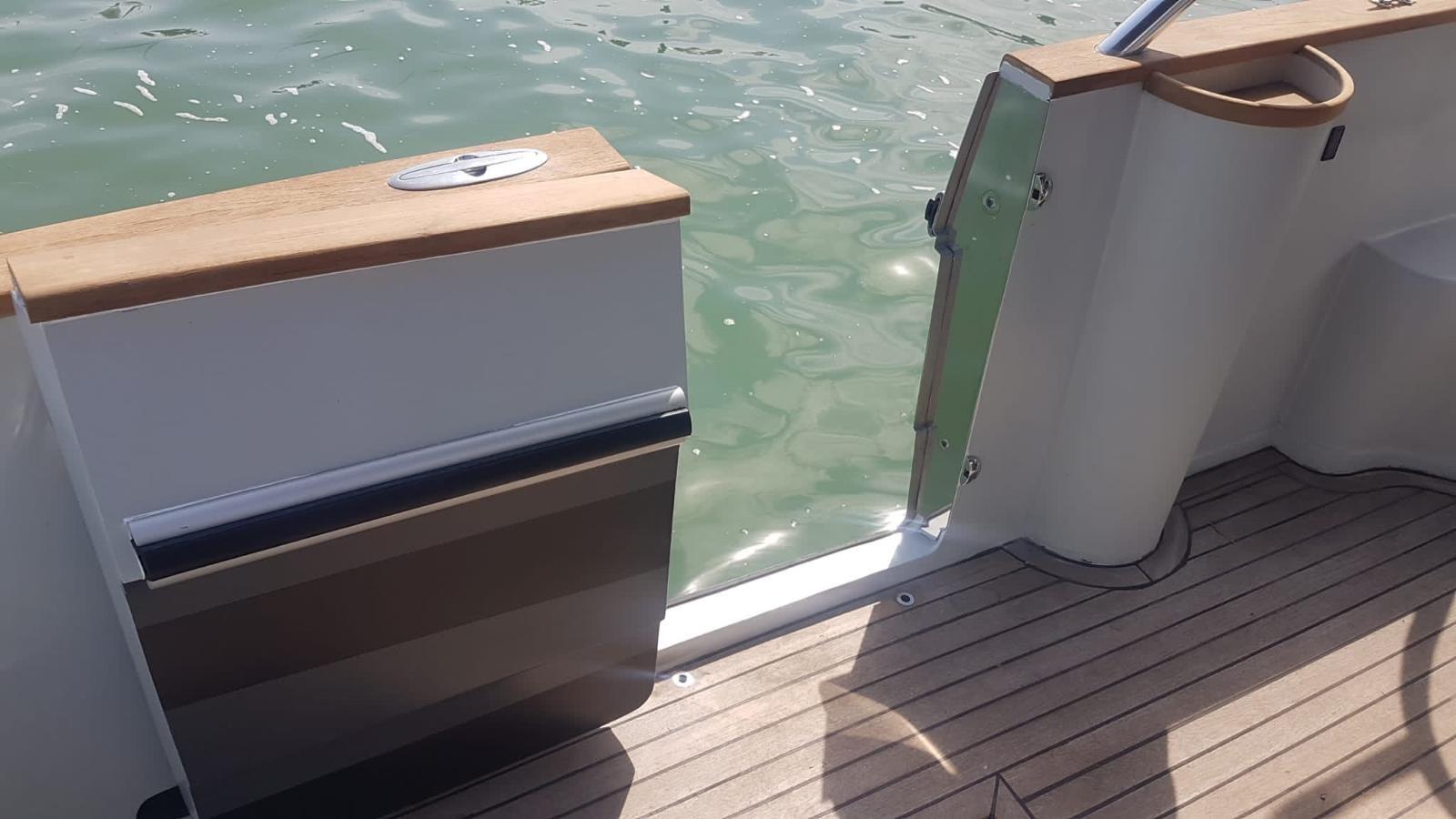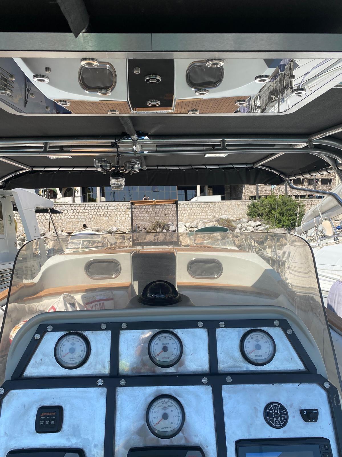 Alarme moteur, Hard top, Cockpit en teck, Prise de quai, Connexion eau sous pression à quai, Guindeau électrique, Echelle de bain.