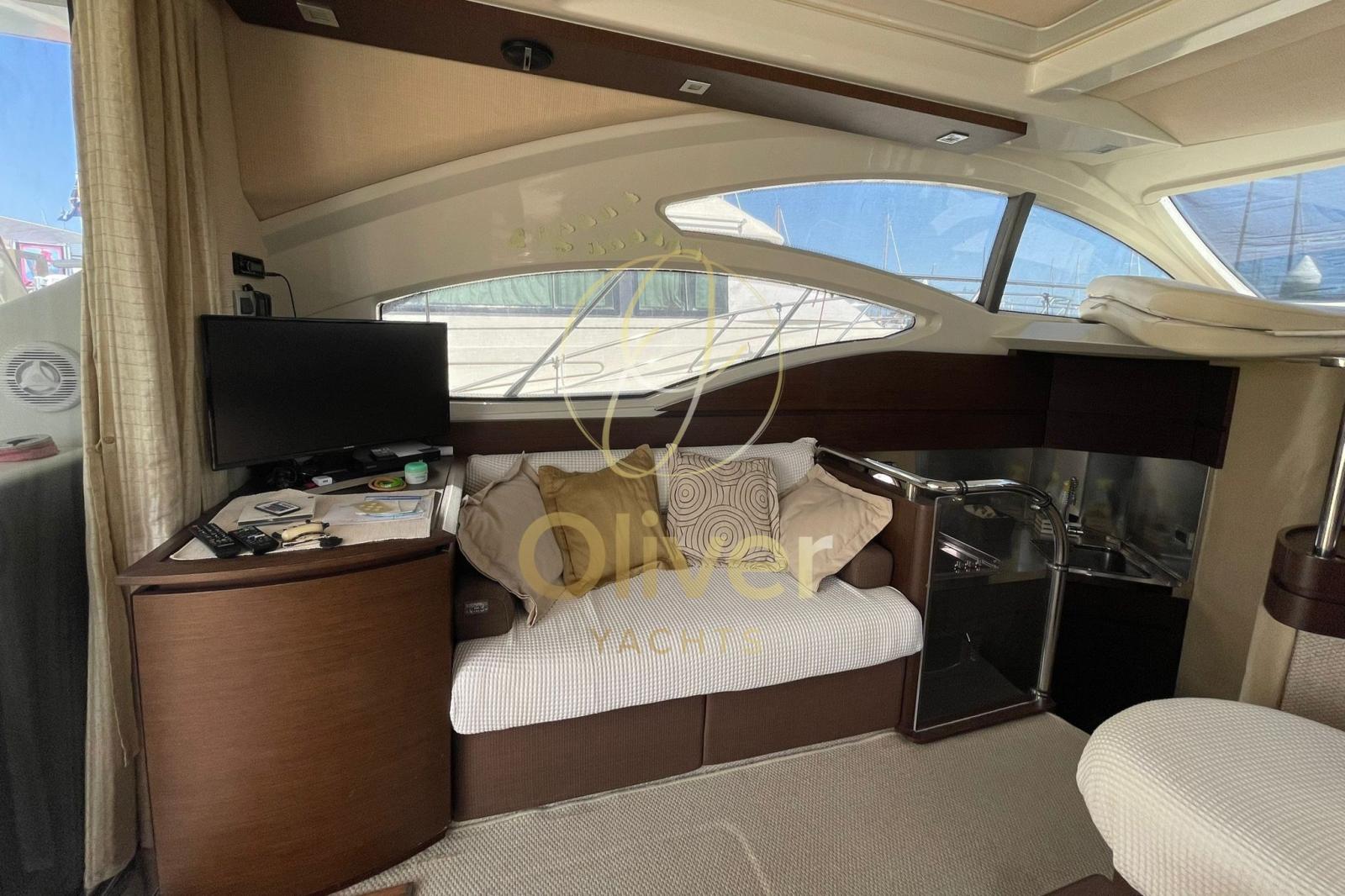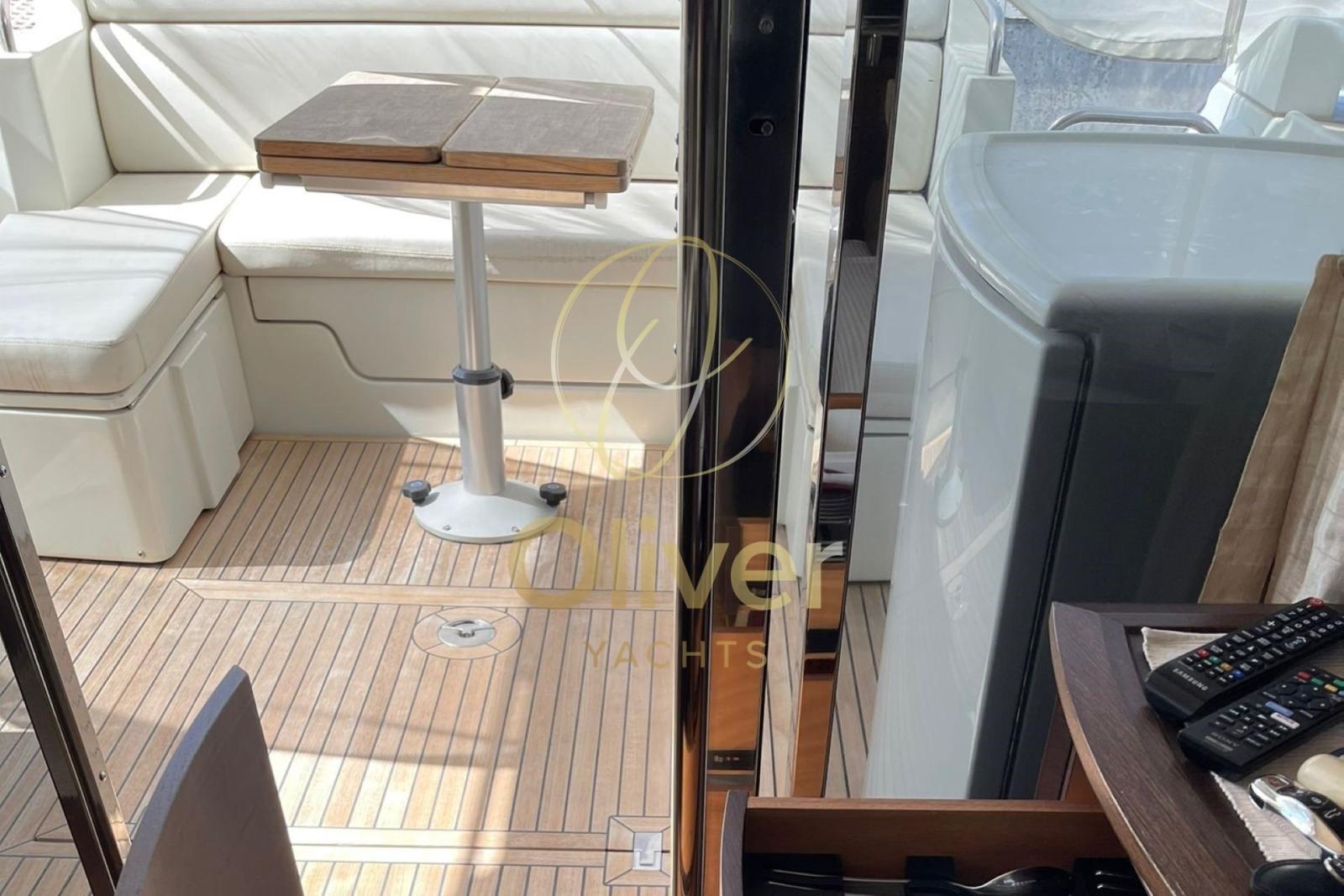 Le pont en teck, les généreux bains de soleil à l’avant et l’espace de vie du cockpit vous invitent à partager des moments inoubliables en famille et entre amis, entre détente et convivialité. Chaque détail a été conçu pour offrir élégance et fonctionnalité : du poste de pilotage moderne et lumineux, aux accessoires embarqués tels que la climatisation, la télévision, la chaîne stéréo et les équipements de sécurité au-delà de 50 milles.