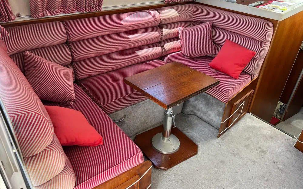 Sur ce plan le bateau est entretenu, les moquettes sont d'origine et en bon état. Toujours protégées. Les selleries ont été bien conservées.