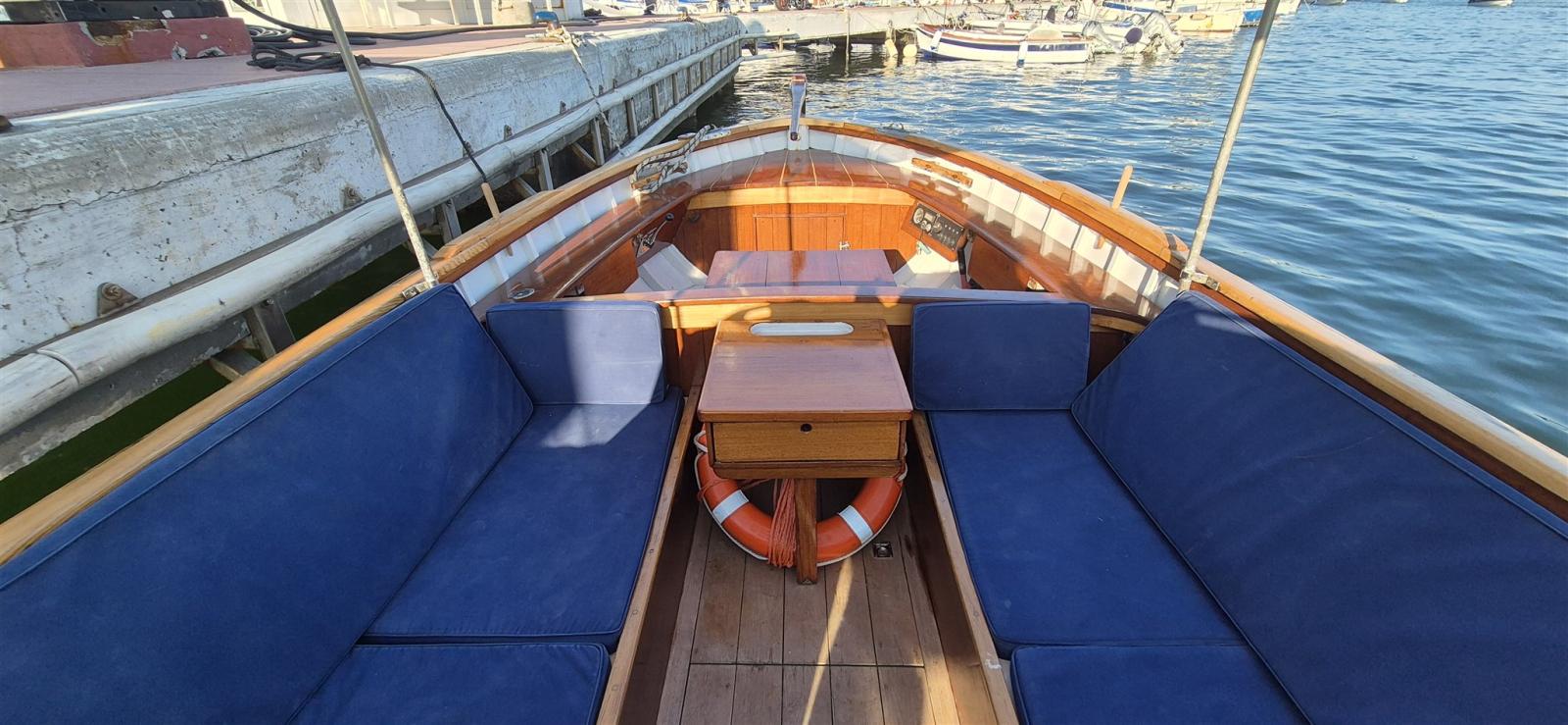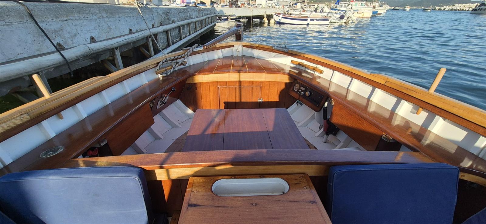 2023 - réaménagement complet à neuf réalisé par le chantier naval Viacava à Portofino avec remplacement et/ou restauration de tous les bois détériorés, travail de vie enduit de résine, maintenant en contact avec la mer, il y a de la fibre de verre !