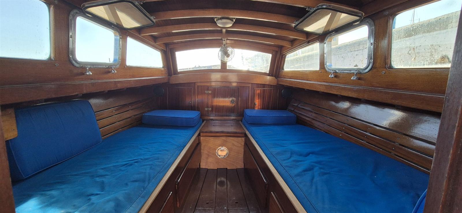 Le rouf et donc la cabine vitrée et lumineuse permet d’y passer la nuit pour deux personnes ainsi que des sorties en soirée à l’abri du vent, également idéal pour une simple sortie dîner. Dans un restaurant en bord de mer.