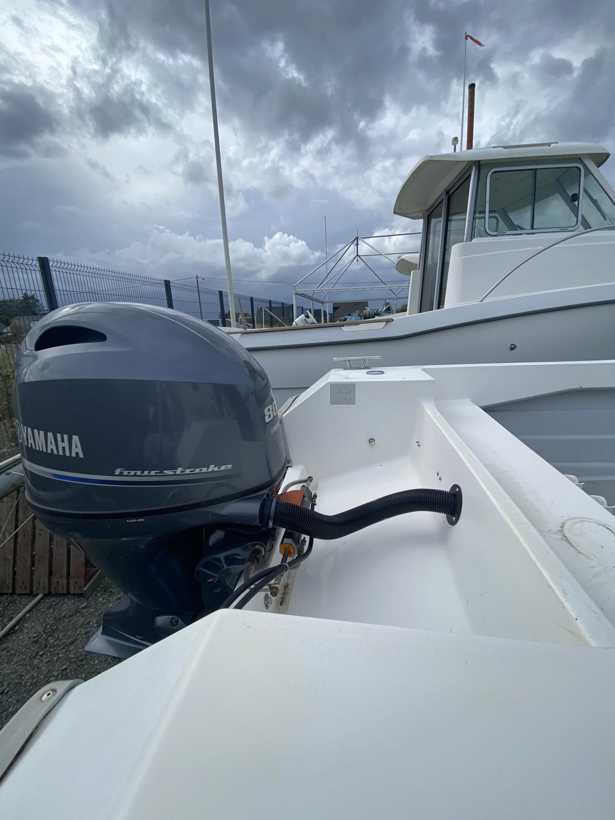 Il est motorisé avec un Yamaha 80 CV 4T de 2023 totalisant seulement 52 heures, un moteur moderne, puissant et fiable pour des navigations confortables, en toute sérénité.