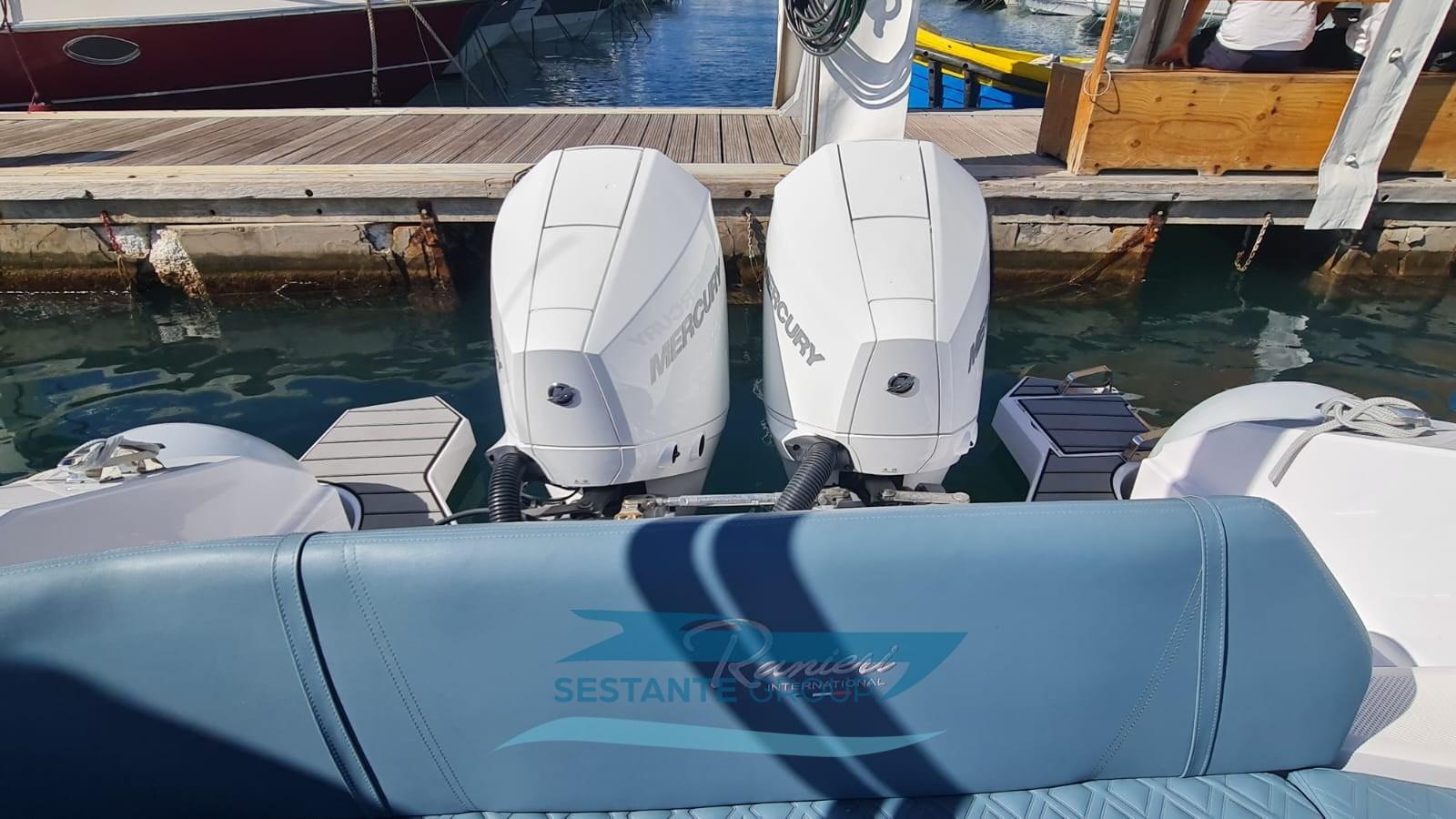 Alarme moteur, Alternateur, Eau sous pression, 3 Batteries, Chargeur de batterie (Mastervolt 25A), Câble d’alimentation à quai, Douche de cockpit, Éclairage de courtoisie, 2 Plateforme arrière, Pompe de cale automatique, Prise de quai, Guindeau électrique, Echelle de bain, table de cockpit.