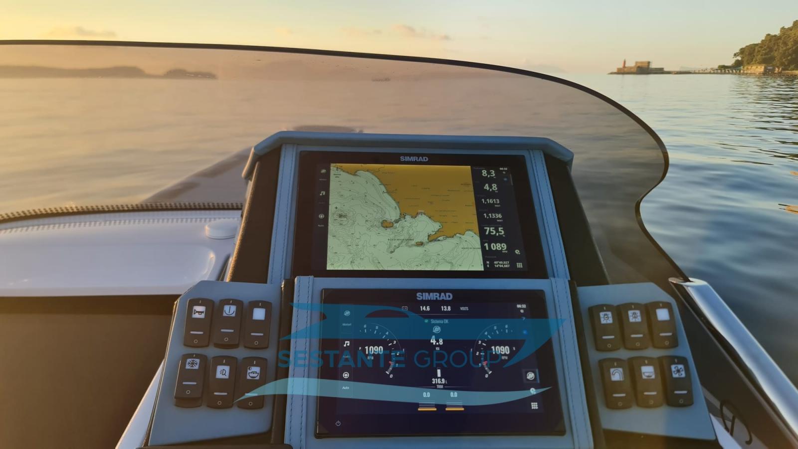 Compteur de chaîne (Quick QNC CHC), Moniteur (Simrad NSX3009), GPS (Simrad NSX3012), Cartes et guides, Moniteur de consommation, Siège copilote.