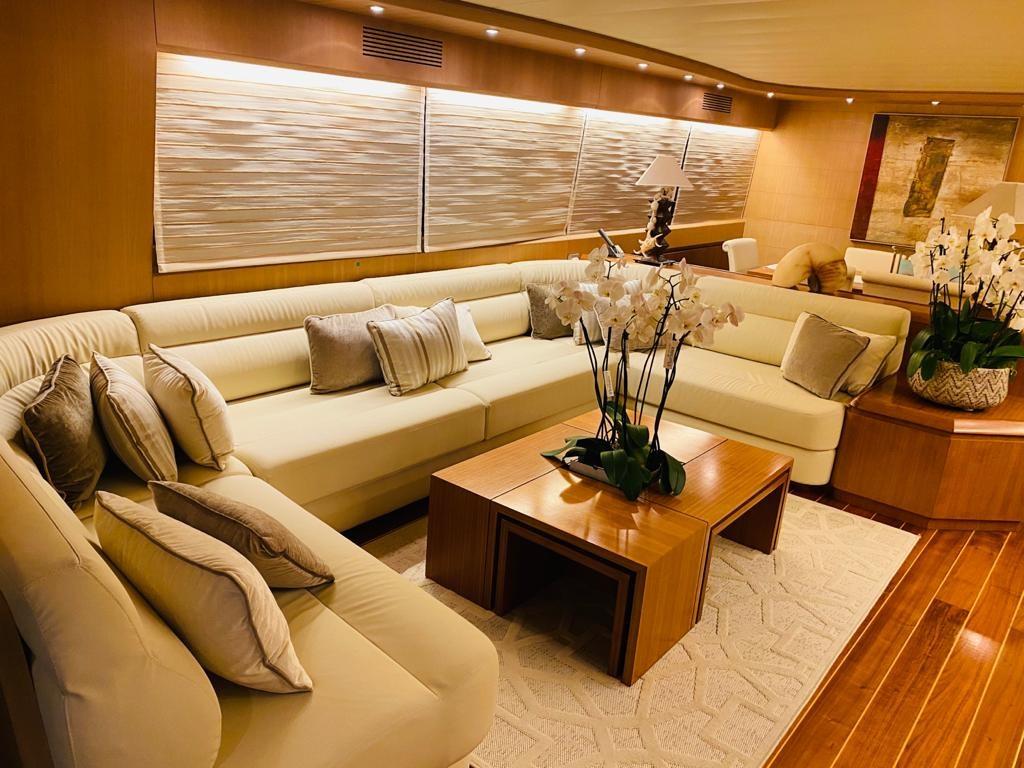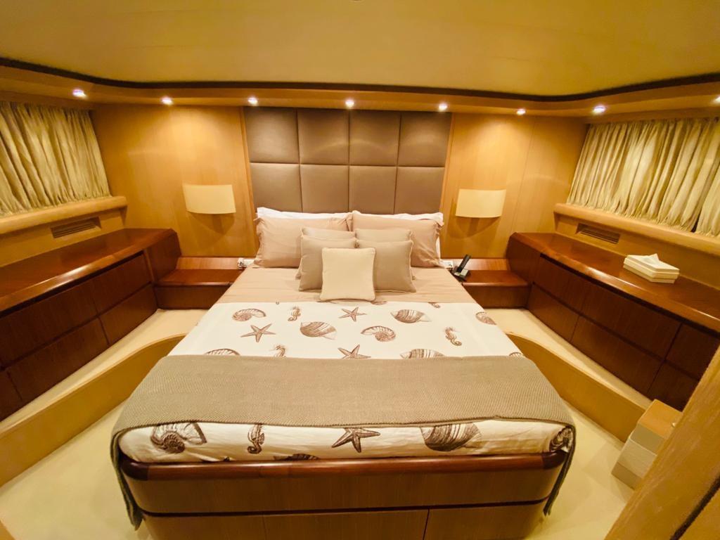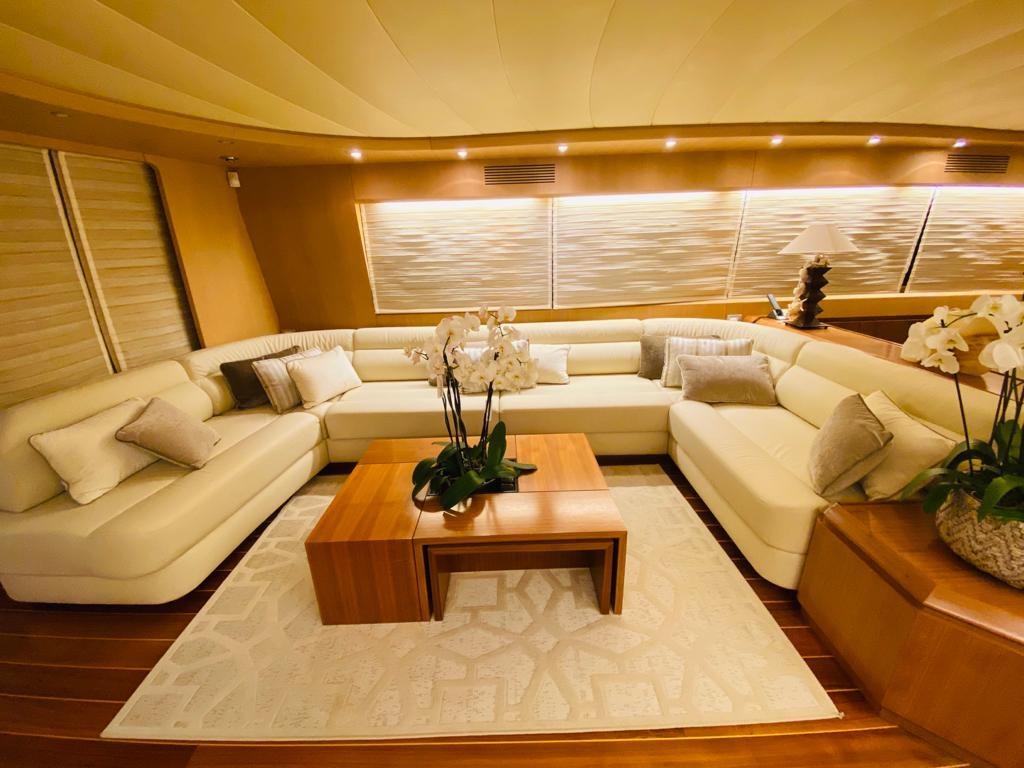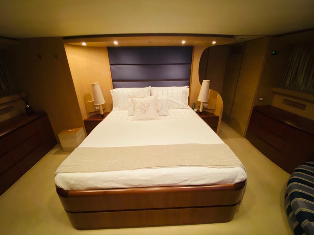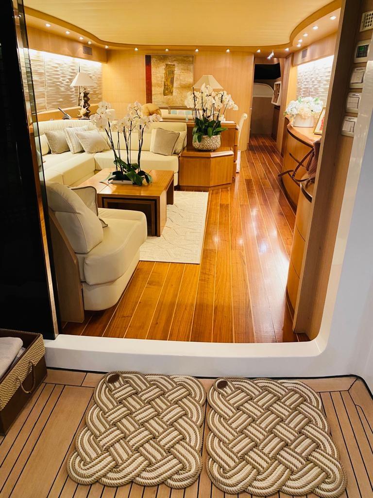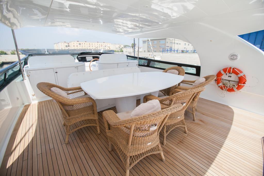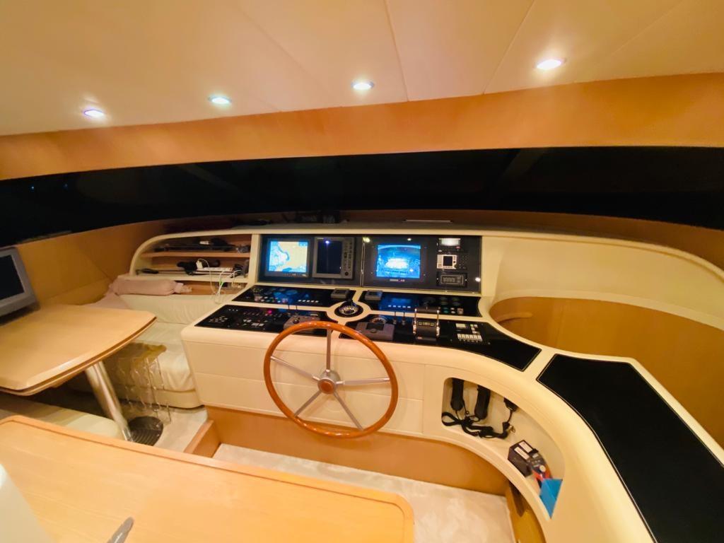 Alarme gaz, Alarme moteur, Douche de cockpit, Double barre à roue, Phare de poursuite, Garage à annexe, Bossoirs pour annexe, Hard top, Extincteur(s) fixe(s), Indicateurs de flaps, Lavage de chaine, Spots sous-marins, Cockpit en teck, Prise de quai, Connexion eau sous pression à quai, table de cockpit, Winch hydraulique, Winch électrique arrière, Winch électrique avant.