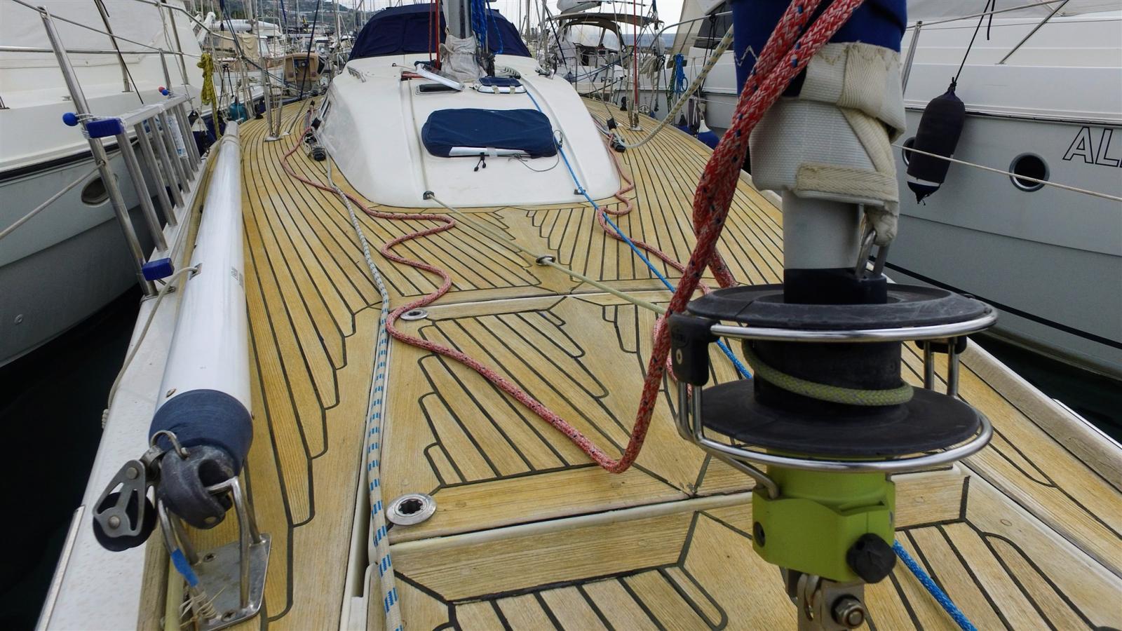 Alarme moteur, Alternateur (Mastervolt 130A de 2017), Ancre (DELTA 25kg et 80m de chaine et BRUCE inox avec bout plombé), Eau sous pression, 5 Batteries (4x130A services de 2022 et 55A moteur), Passavant en teck, 2 Chargeur de batterie (MASTERVOLT 100Amp et 40 Amp), Couleur spéciale (Blanche de 2025), Douche de cockpit (froide et chaude), Propulseur d'étrave (Max Power VIP150 rétractable), Moteur d'annexe (Mercury 3,3 cv), Passerelle (alu), Plateforme arrière (avec marches), Pompe de cale manuelle, Cockpit en teck, Prise de quai, Guindeau électrique (LOFRAN 1700w), Gréement Rod (de 2019), Echelle de bain (inox), Chaise support HB, table de cockpit, Annexe (Plastimo), Filières avec sortie latèrale, 5 Winch (Andersen 2x58.2, 3x46.2), Winch électrique (Andersen 46.2), Windex.