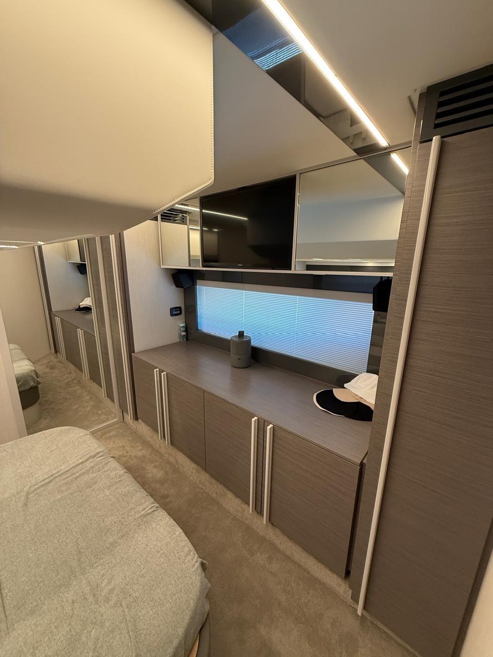 Pershing 5X avec options complètes et disposition à 3 cabines disponibles immédiatement.