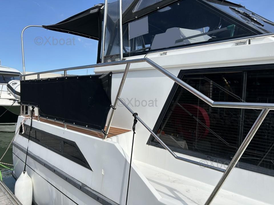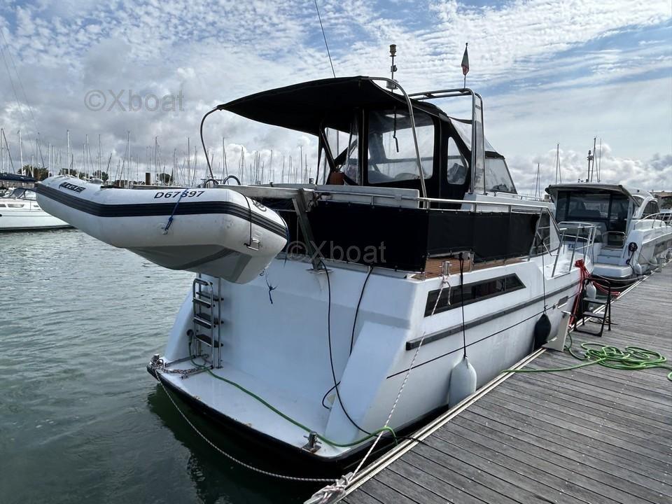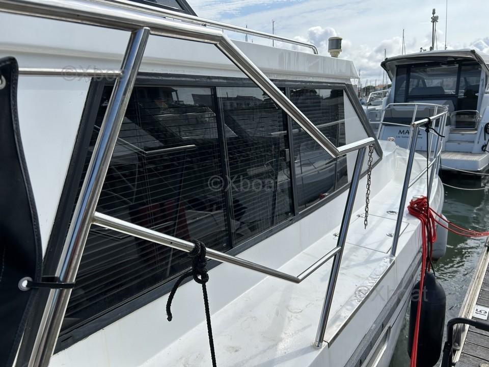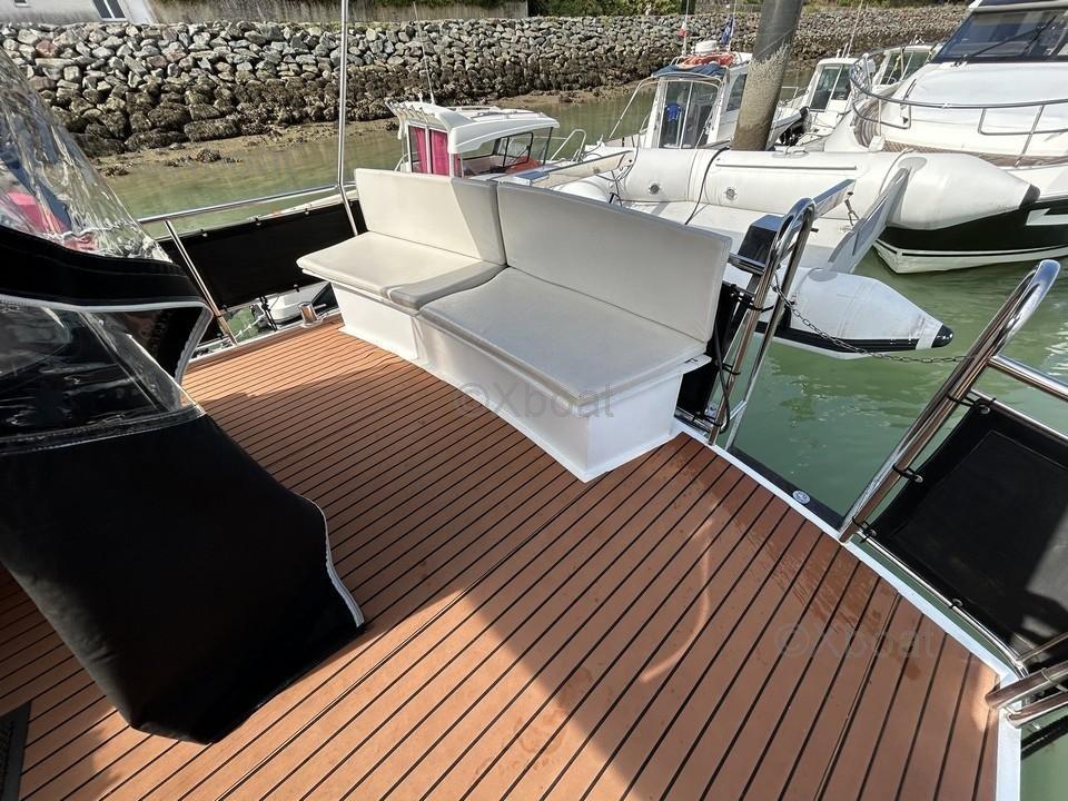 L'extérieur apporte un très agréable espace de pilotage couvert, un pont arrière avec banquette donnant la possibilité d'y ajouter table et chaises, et un pont avant pouvant être utilisé comme grand espace bain de soleil.