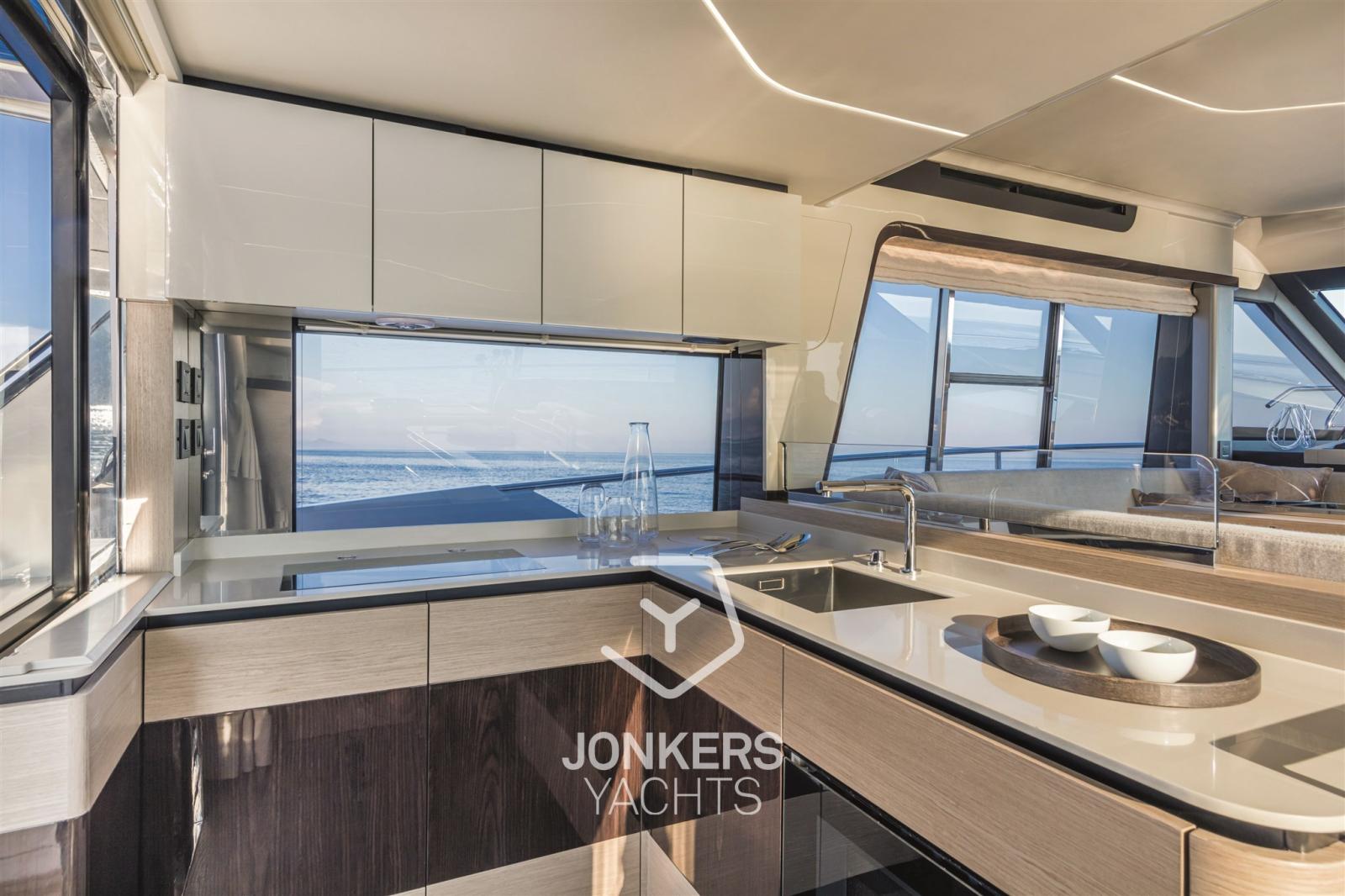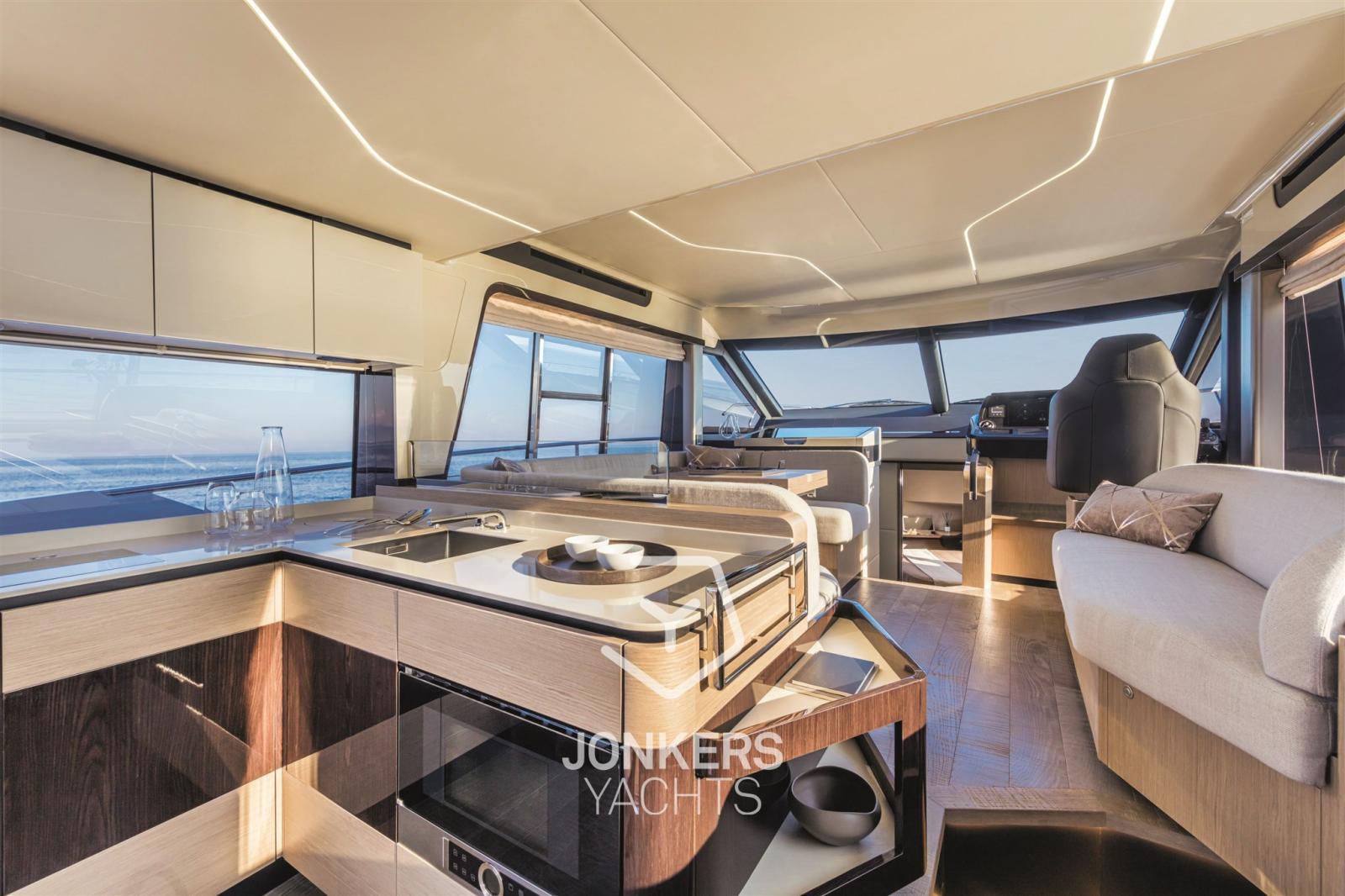 Sur le pont principal, vous pouvez profiter d’une habitabilité maximale. La cuisine bien équipée rejoint facilement le cockpit arrière, créant ainsi un espace ouvert confortable, beau et très fonctionnel.