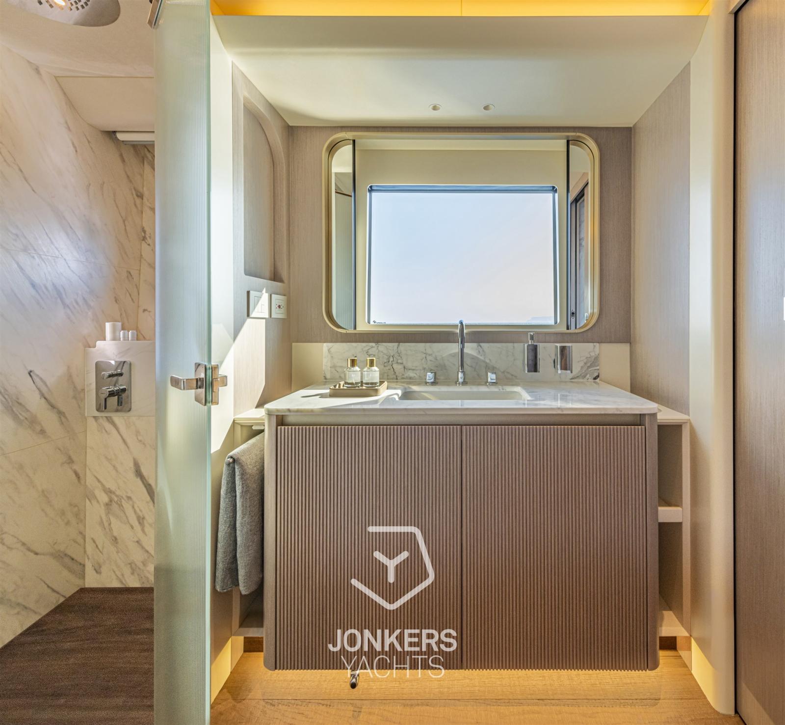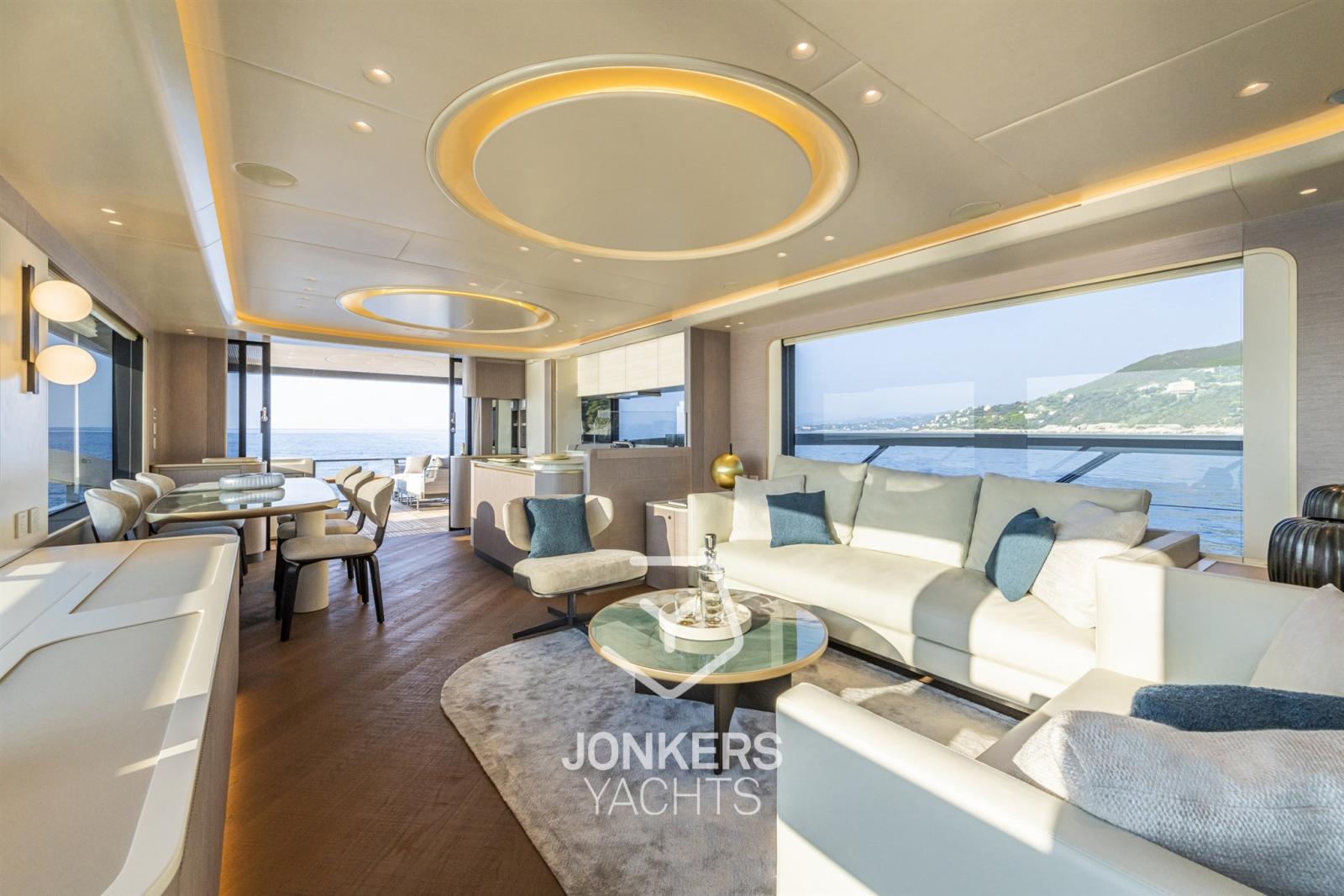 Ce yacht a également été conçu pour profiter d’une vue à 360 degrés sur la mer à bord, avec la perception d’être sur un navire aux volumes beaucoup plus importants. La cuisine spacieuse et le grand salon contribuent encore à l’impression d’espaces encore plus généreux.