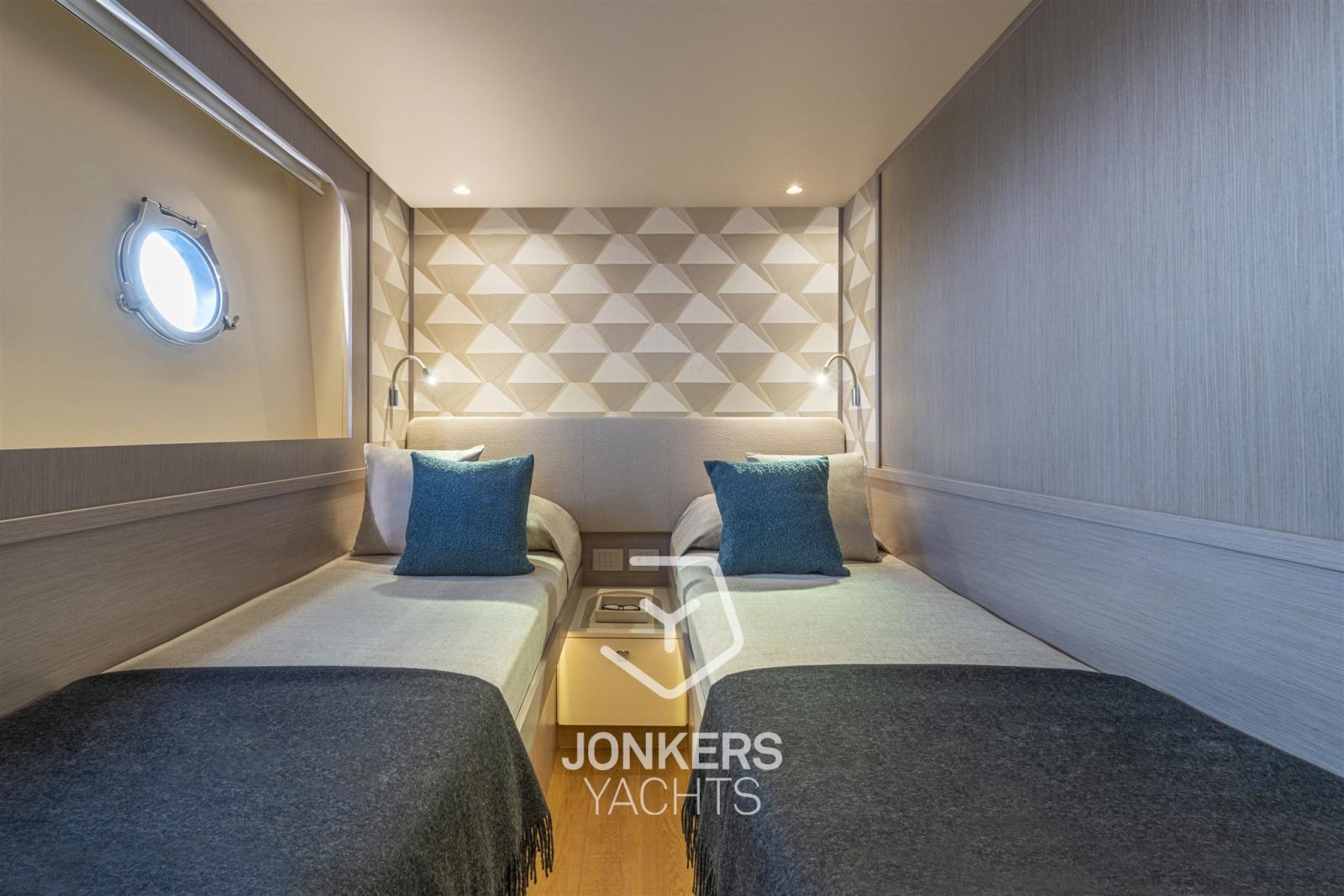 Pour assurer un maximum d’intimité, les logements de l’équipage ont été séparés et bien équipés, avec deux lits et une cuisine privée.