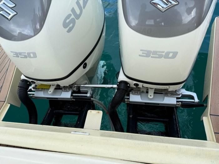 tente de nuit et de jour dans le bimini ; 2 freins ; menottes électroniques ; hélices à double hélice ; prises USB internes et externes ; onduleur 2000 ; chaudière; toutes les lumières LED ; Antenne TV ; moquette intérieure amovible et lavable ; toujours remettre à l’intérieur, dans l’eau du 15 juin au 15 septembre ; compresseur pour gonfler les tubes, couverture complète pour la nuit ; Rideaux de jour et de nuit plus bimini pour la journée contre le soleil, couverture de cockpit jusqu’à la console pour les arrêts quotidiens, housse de console pour la nuit contre l’humidité. Revêtements en teck sur tout l’extérieur. plage entièrement refaite sur mesure avec une échelle de conception Osculati avec verrouillage automatique, passerelle pliable ; 2021 NOUVEAU : mâts d’auvent arrière coulissants, couverture de poupe en bimini crème, nouvelle plate-forme en flexitec, échelle, système hydraulique avec positionnement de la boîte à eau à l’arrière 200 litres, sellerie en cuir des mains courantes, brûleurs de cuisine. Intérieurs : système audio de nouvelle génération avec système Glauk avec deux zones intérieures et extérieures, système invisible avec excitateurs, tubes moteur ondulés, coffres arrière étanches ; 2024 a installé 2 Suzuki 350, une de 2019 et une de 2023 ; 2024 NOUVEAU : propulseur d’étrave, traceur GPS et Garmin, système électrique ; 2025 NOUVEAU : Climatisation Frigomar, toilettes, direction hydraulique Ultraflex ; médiation de 5 % + TVA 22 % à la charge de l’acheteur (la TVA est calculée sur le montant de la médiation).