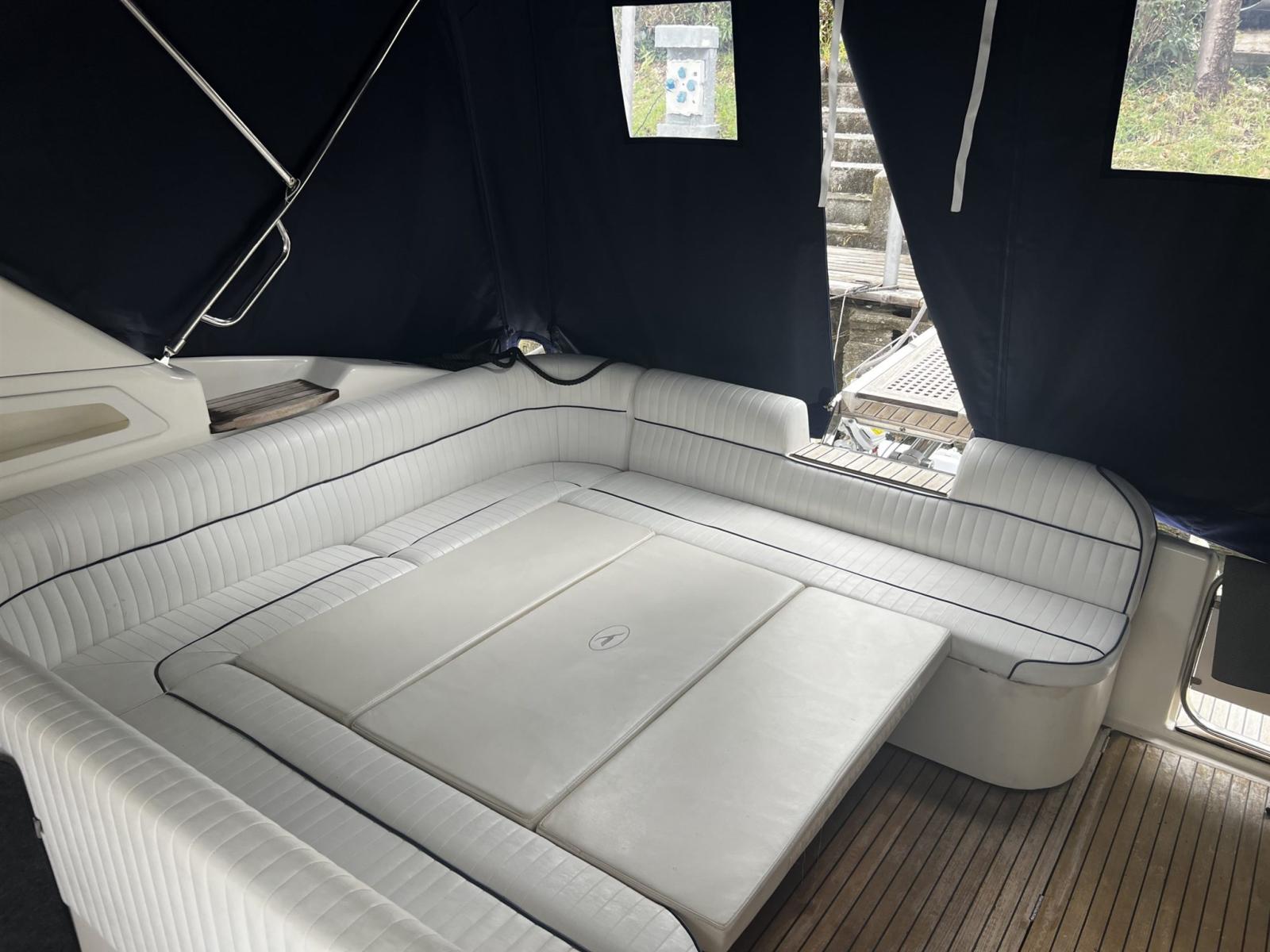 Teck dans le cockpit et le pont arrière, Passerelle hydraulique, Générateur MASE, Propulseur d’étrave, Pilote, Traceur VHF / GPS, Auvents complets fraîchement fabriqués, Coussins complets en ordre, Cuisine int (induction) et Ext. gaz Réfrigérateur, Chaudière, Annexe