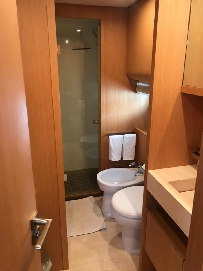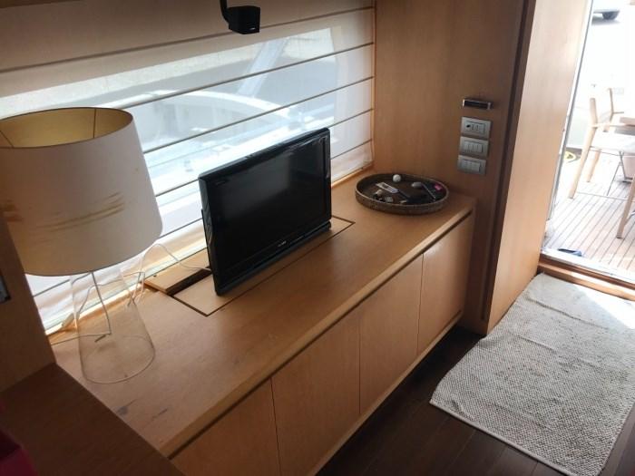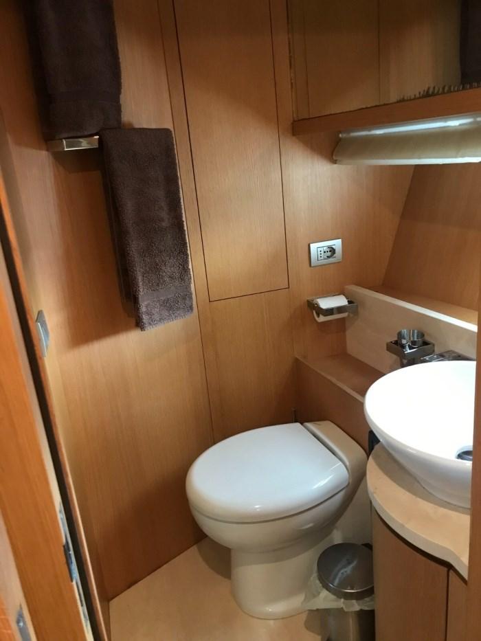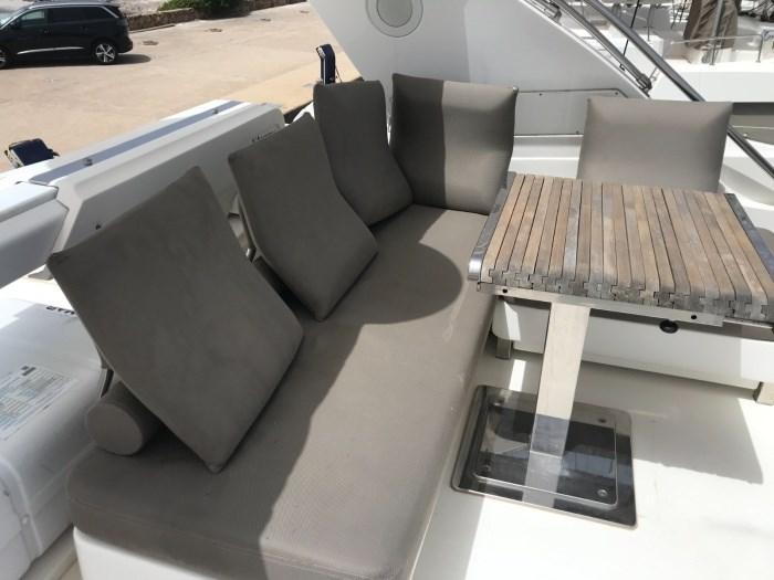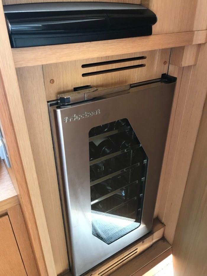 Alarme moteur, Alarme de pompe de cale, Eau sous pression, Douche de cockpit, Double barre à roue, Flaps hydrauliques, Extincteur(s) fixe(s), Lavage de chaine, Panneau solaire, Passerelle (a scomparsa), Plateforme arrière, Pompe de cale automatique, Pont en teck, Cockpit en teck, Prise de quai, Rollbar, Guindeau électrique, Echelle de bain, table de cockpit, Annexe (e FB), 2 Winch électrique arrière, Winch électrique avant.