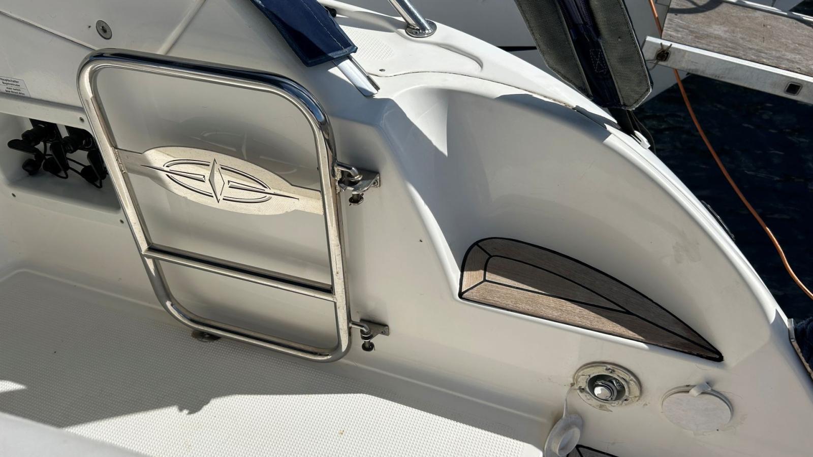 Confort à bord avec cabine double, carré convertible, coin cuisine , bain de soleil, GPS, guindeau électrique. Entretien rigoureux, prêt à naviguer.