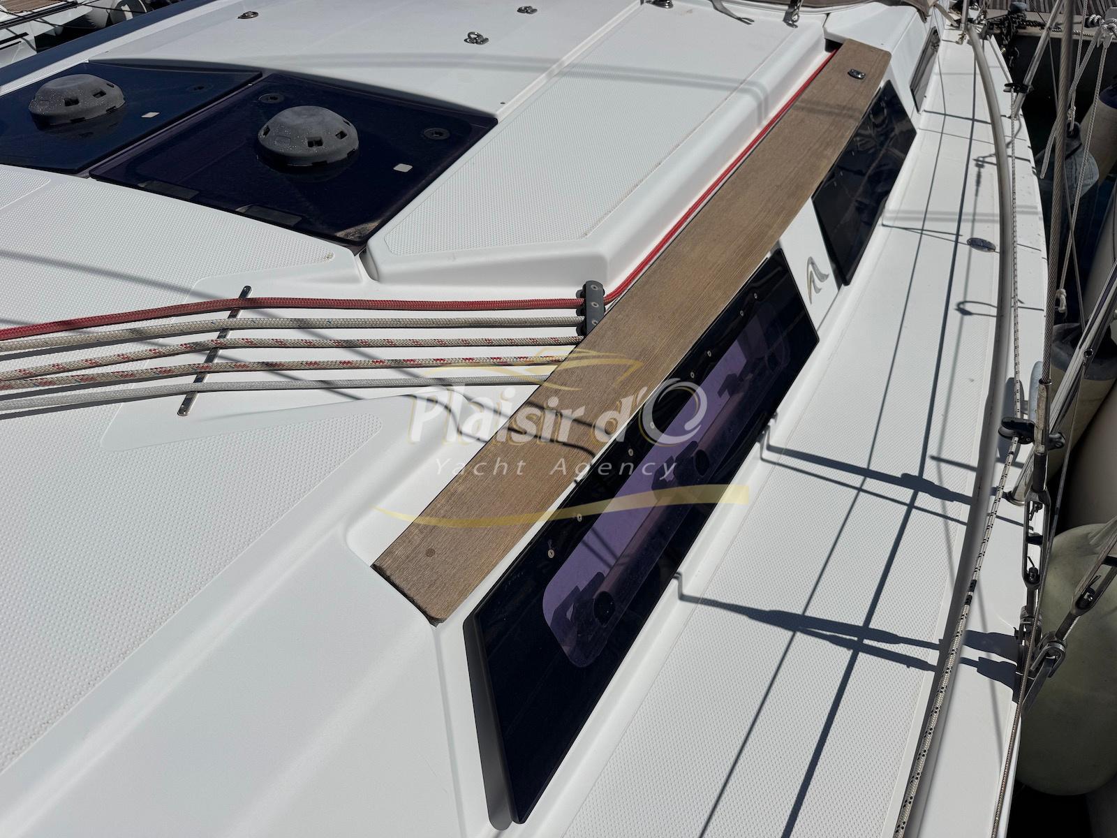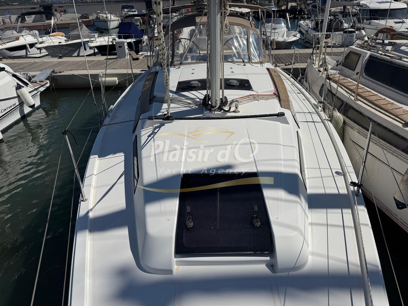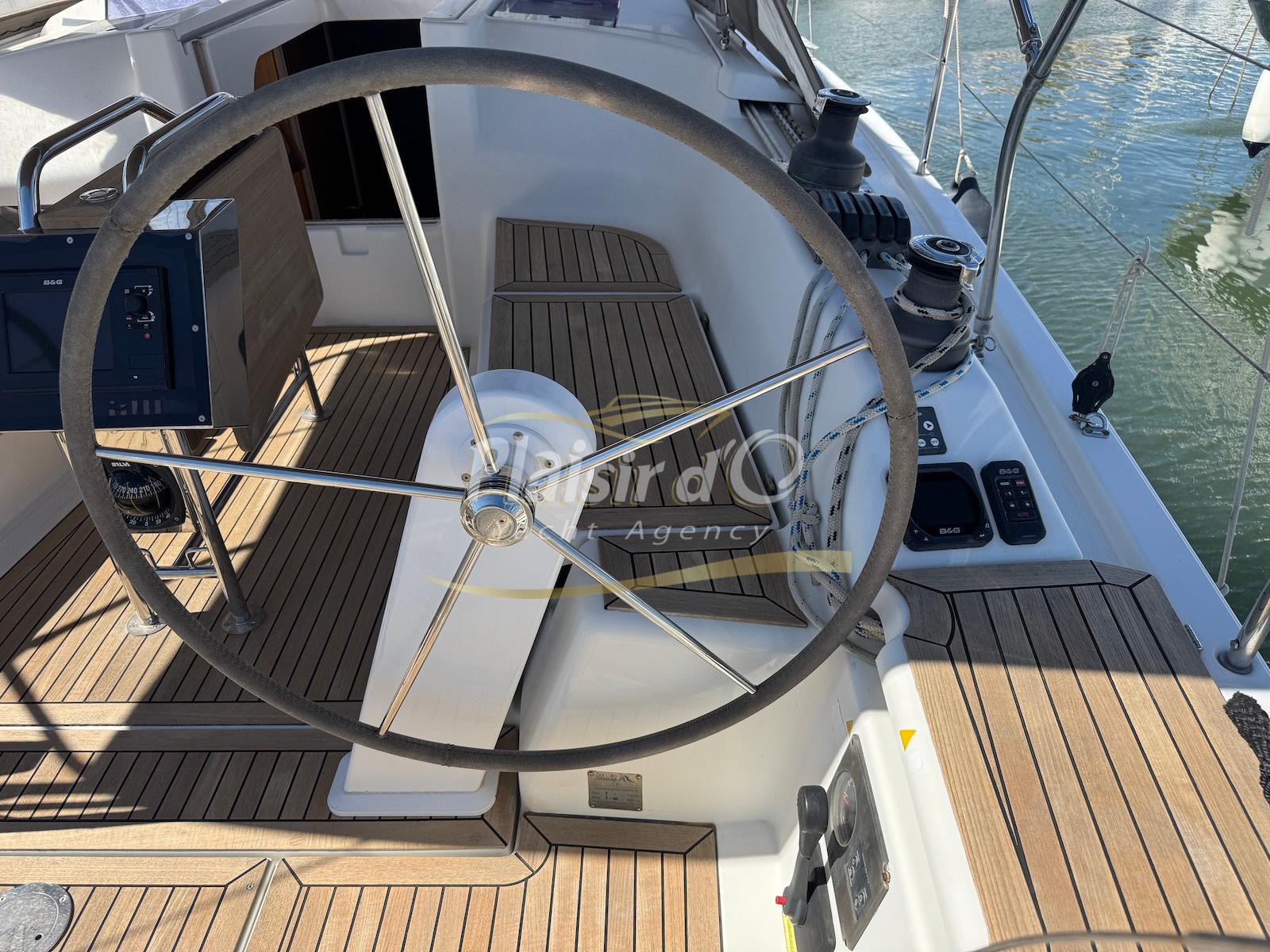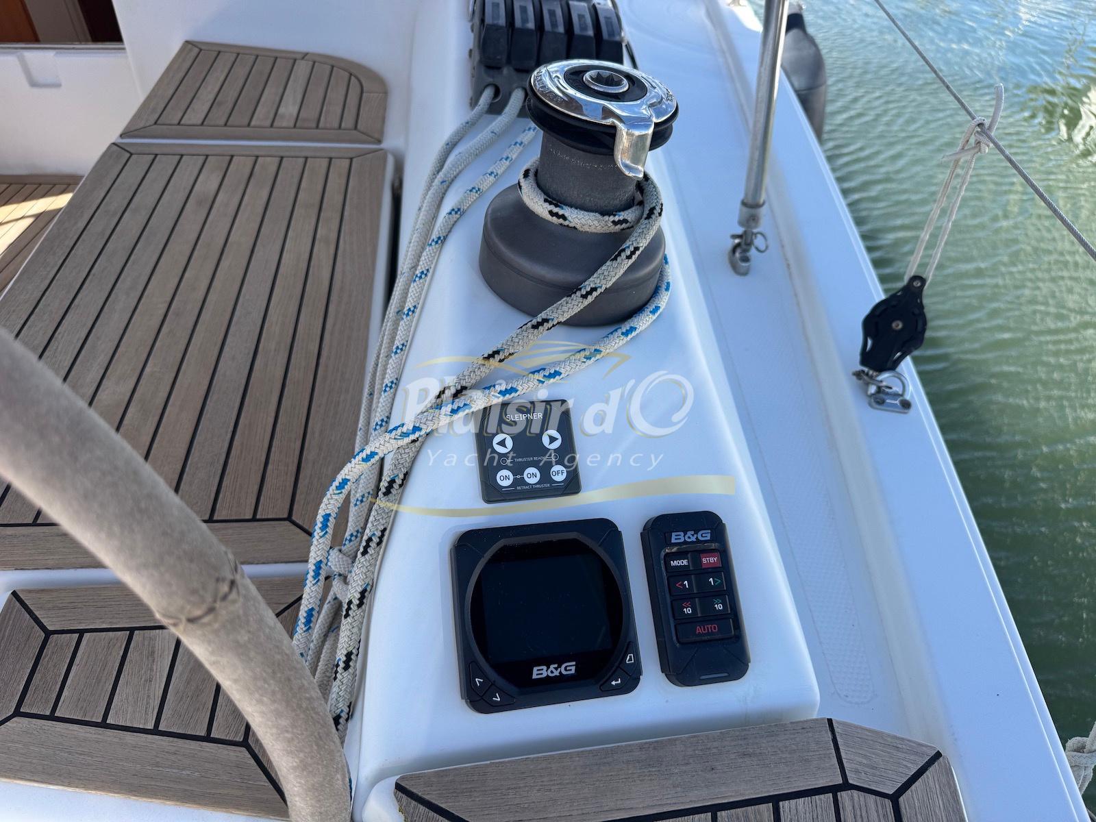 Nombreuses options : propulseur d’étrave, grand tirant d’eau, motorisation maximale 30Cv, cockpit teck, plateforme de bain d’abattable teck, guindeau électrique, électronique B&G, GV lattée, foc autovireur, paraSailor, spi asymétrique, bimini, capote de roof, 2 winchs supplémentaires, hélice max prop …