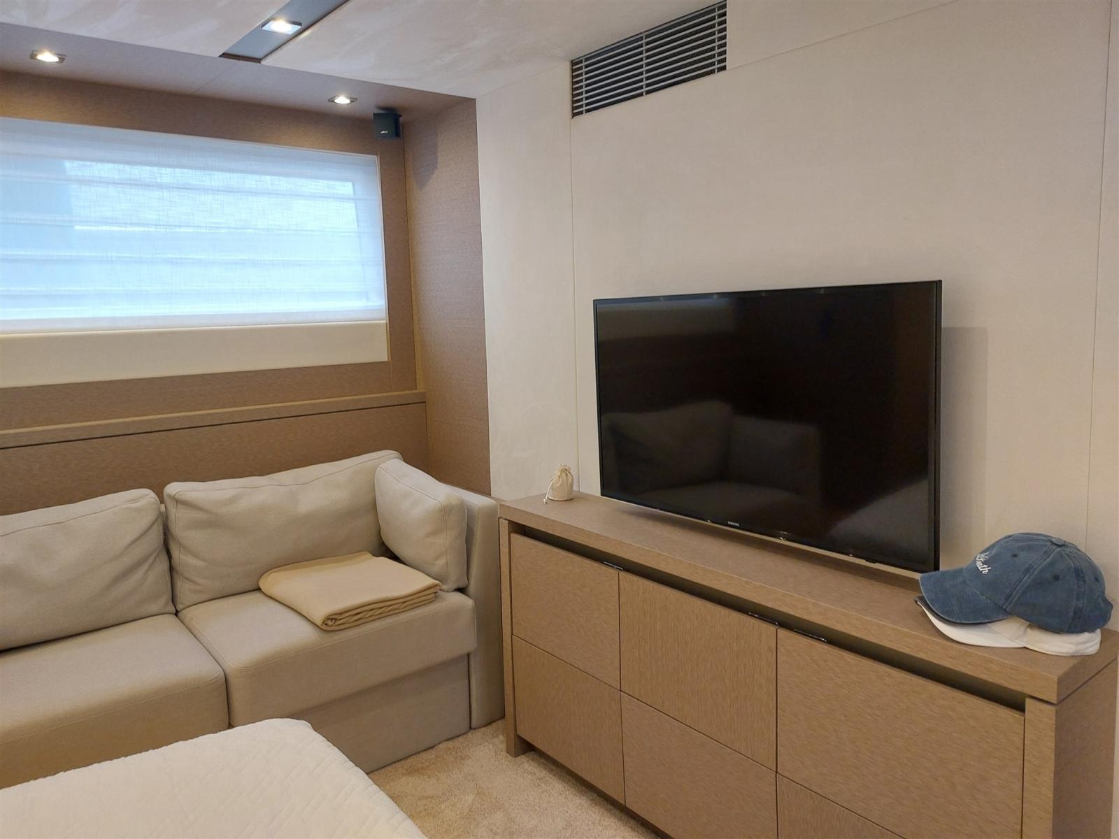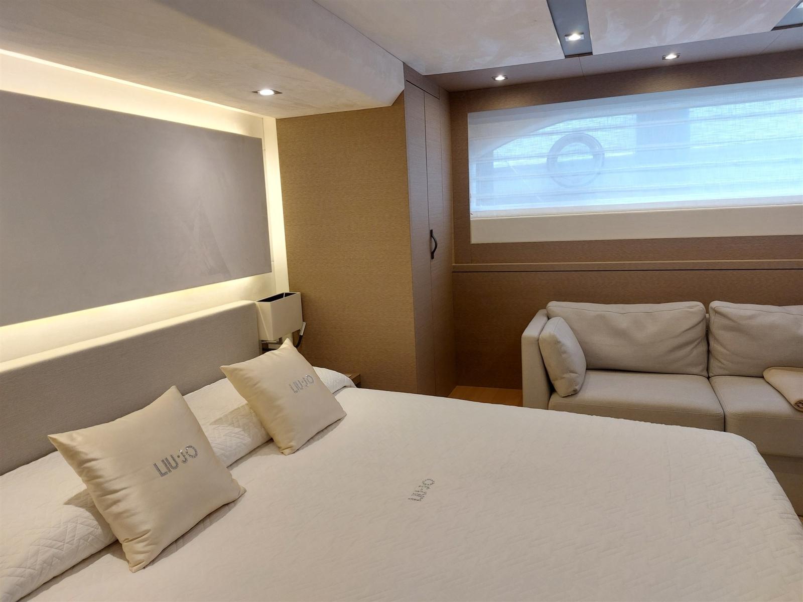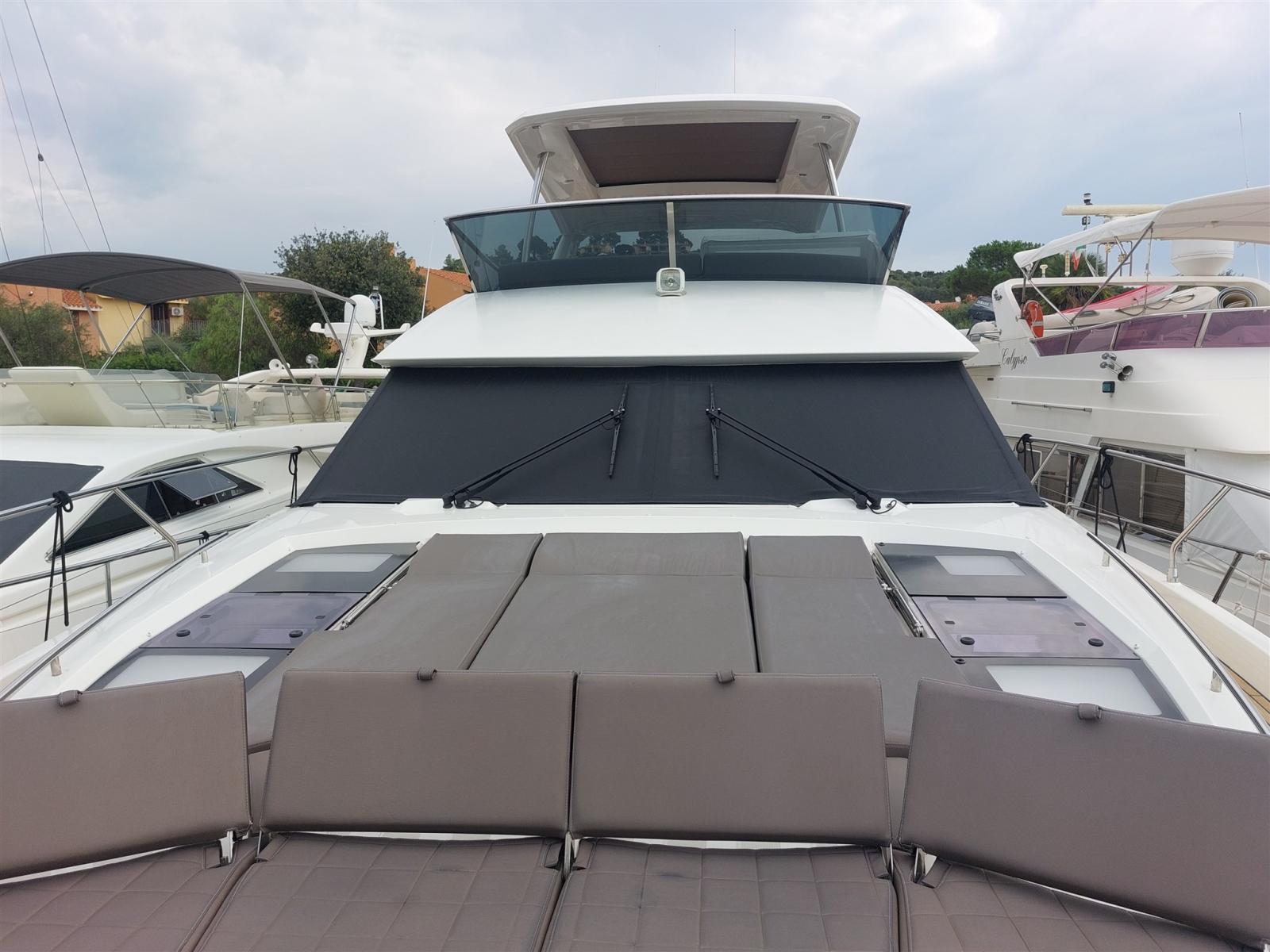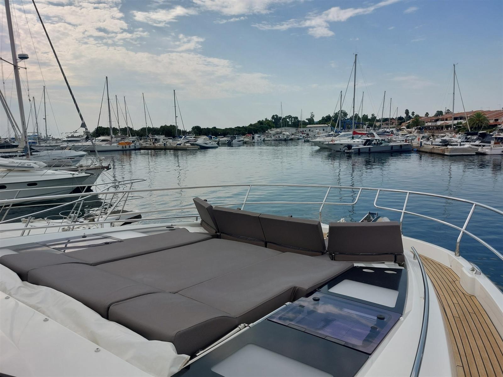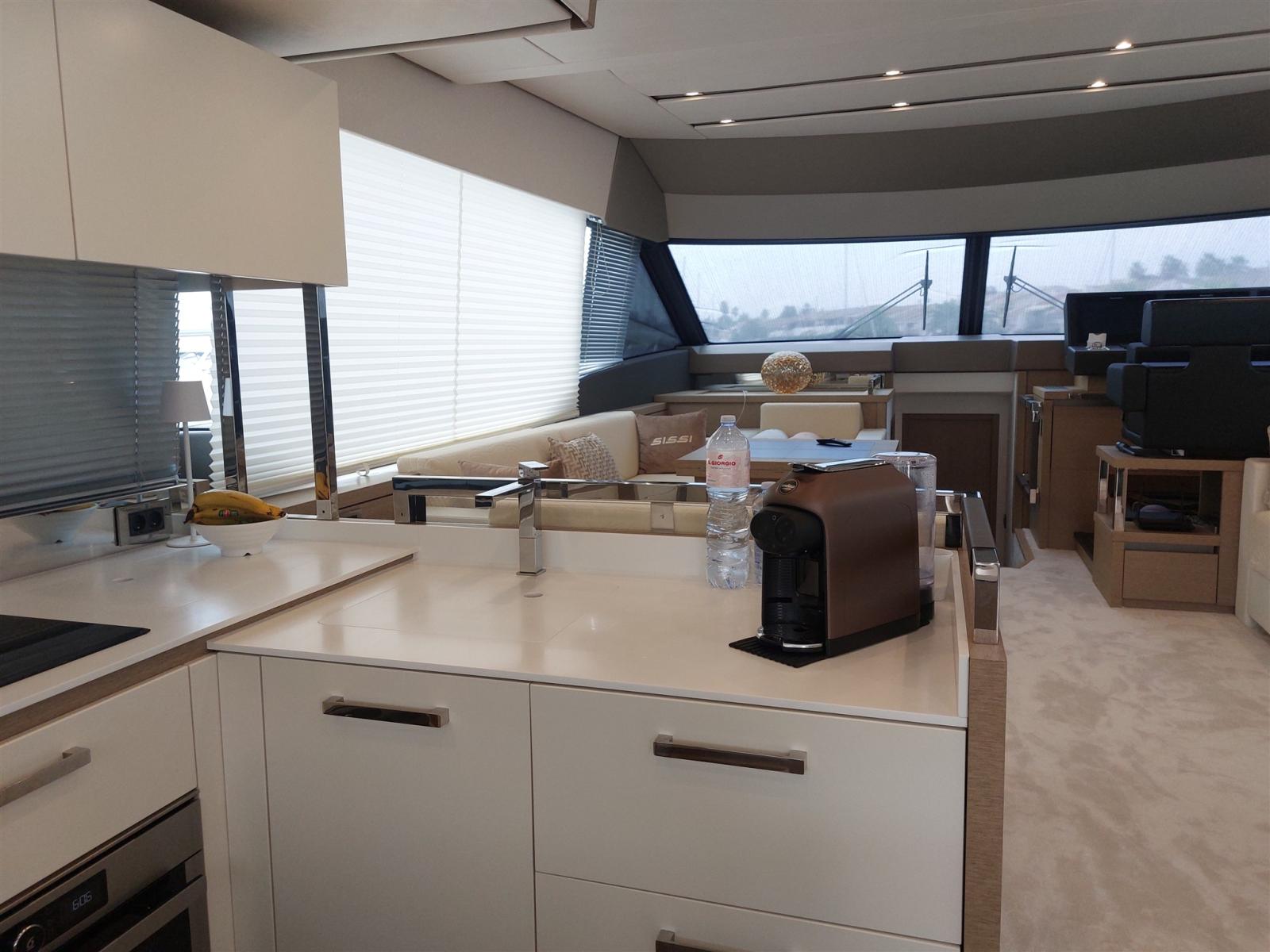 Conçu par le studio Garroni Design, le PRESTIGE 630 se distingue par l’équilibre entre un design extérieur extrêmement raffiné et l’élégance de ses intérieurs lumineux. Les volumes dédiés au grand carré, les trois cabines, la cabine principale centrale, les salles de bains privatives et le flybridge garantissent une vie à bord dans des conditions de confort maximal. Des solutions de pointe ont été adoptées, notamment la construction de la coque d’infusion et le choix de la transmission avec des pods IPS 950, positionnant ainsi le PRESTIGE 630 au sommet de la technologie contemporaine. Le luxe des intérieurs révèle des choix de matériaux, des harmonies chromatiques et un niveau d’équipement réservé aux grands voiliers de croisière. Sissi a été constamment renouvelé et amélioré par ses propriétaires pour qu’il soit comme neuf aujourd’hui.