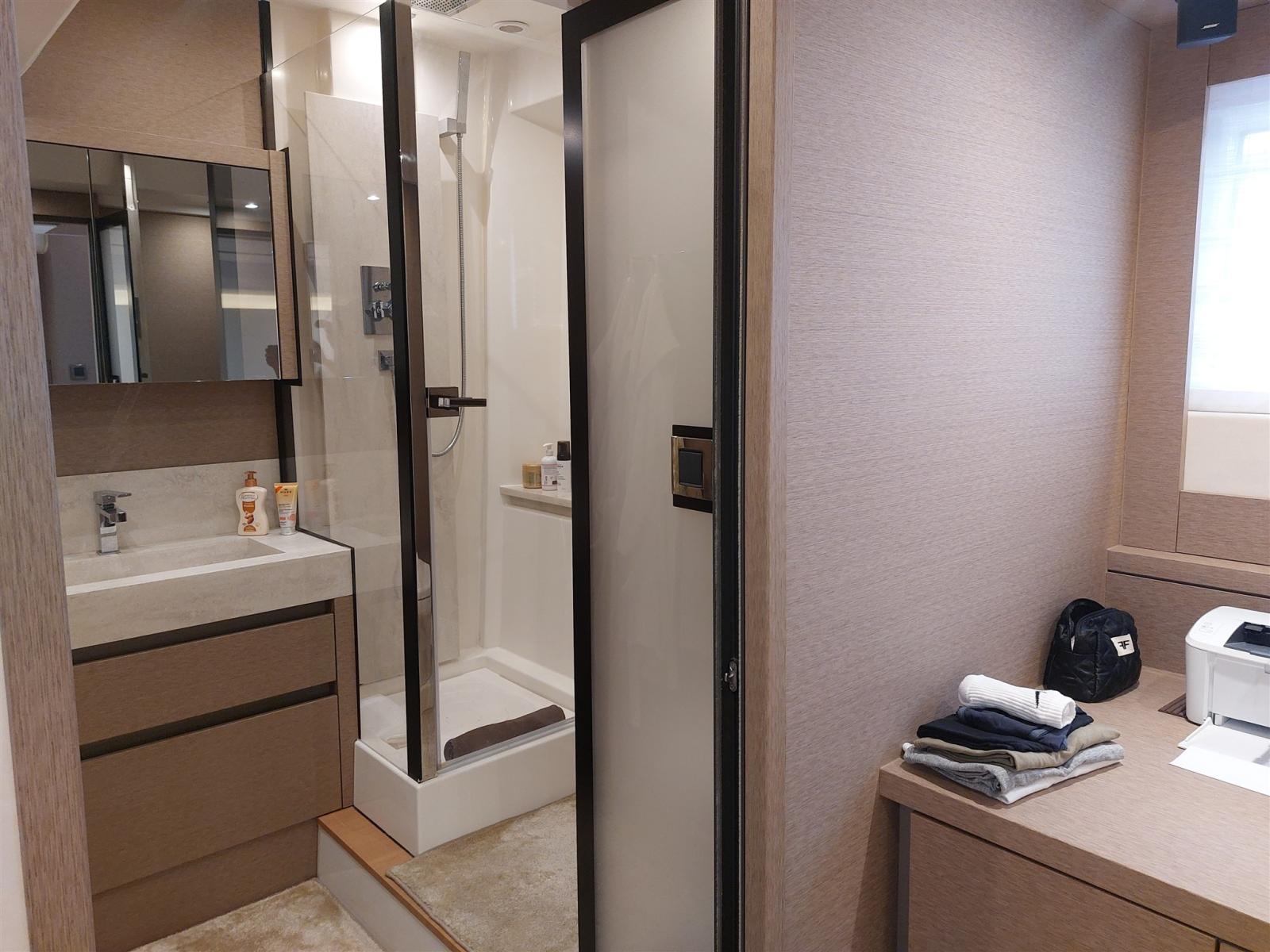 Air conditionné (30.000 BTU Tropical), BBQ/ Grill (Fly), Ballon d'eau chaude (Bivalente), Coffre-fort, Connexion Internet par satellite, Gradateur de lumière, Dessalinisateur, Jauge de Réservoir d’Eau, Jauge de Réservoir d’Eaux Usées, Plancher intérieur en bois, Prises interieures 12v, Réservoir d'eau noire, 4 Toilettes électriques.