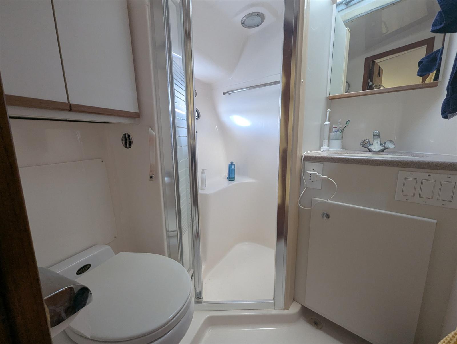 Eau Chaude, Ballon d'eau chaude (Bivalente), Air Conditionné, Cuve à eaux noires, Plancher intérieur en bois, Prises interieures 12v, Prises interieures 220v, Réservoir d'eau noire, Toilettes électriques.