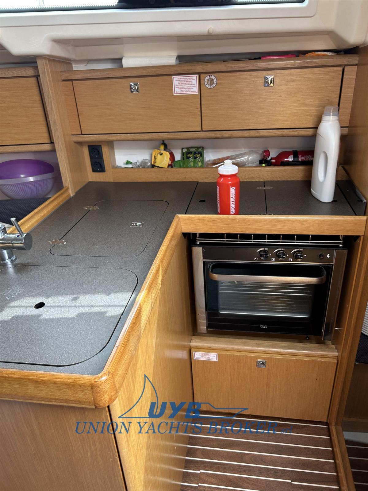 Eau sous pression, Douche de cockpit, Double barre à roue, Passerelle (pieghevole carbonio), Plateforme arrière (abbattibile), Pompe de cale manuelle, Cockpit en teck, Prise de quai, Connexion eau sous pression à quai, Guindeau électrique, Gréement monotoron, Echelle de bain, table de cockpit, 4 Winch.
