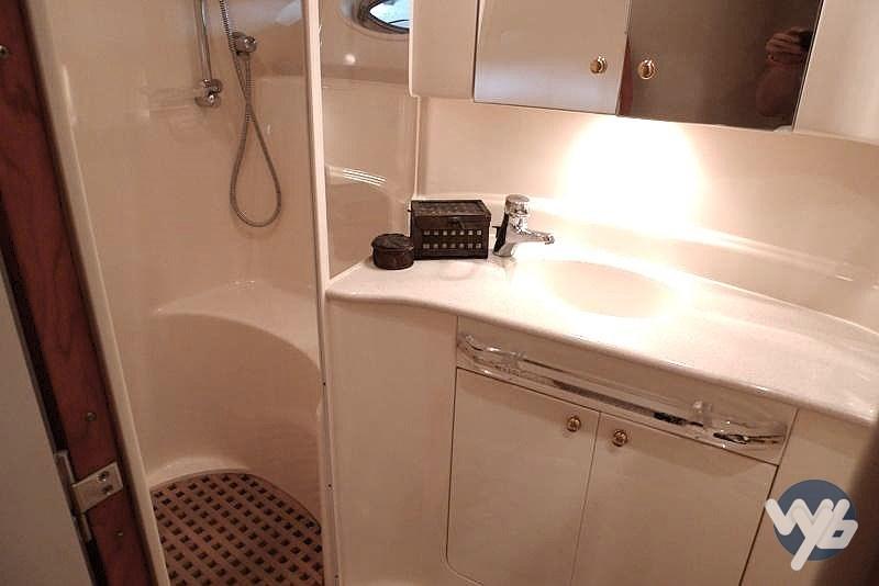 Alarme moteur, Alarme de pompe de cale, Eau sous pression, Douche de cockpit, Phare de poursuite, Flaps hydrauliques, Extincteur(s) fixe(s), Lavage de chaine, Lavabo dans le cockpit, Passerelle, Pompe de cale manuelle, Porte latérale, Prise de quai, Connexion eau sous pression à quai, Rollbar, Guindeau électrique, Echelle de bain, Selles pour Annexe, table de cockpit, T-Top.