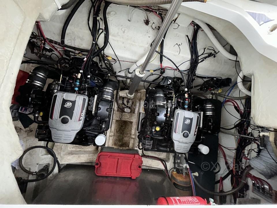 Il est équipé avec des moteurs MERCRUISER 5.0L MPI 2 x 225CV entretenus par professionnel local, propulseur d'étrave, climatisation réversible, carré convertible, TV dans cabine propriétaire, four et plaque électrique, 2 réfrigérateurs, cuve à eaux noire, convertisseur, batteries récentes...