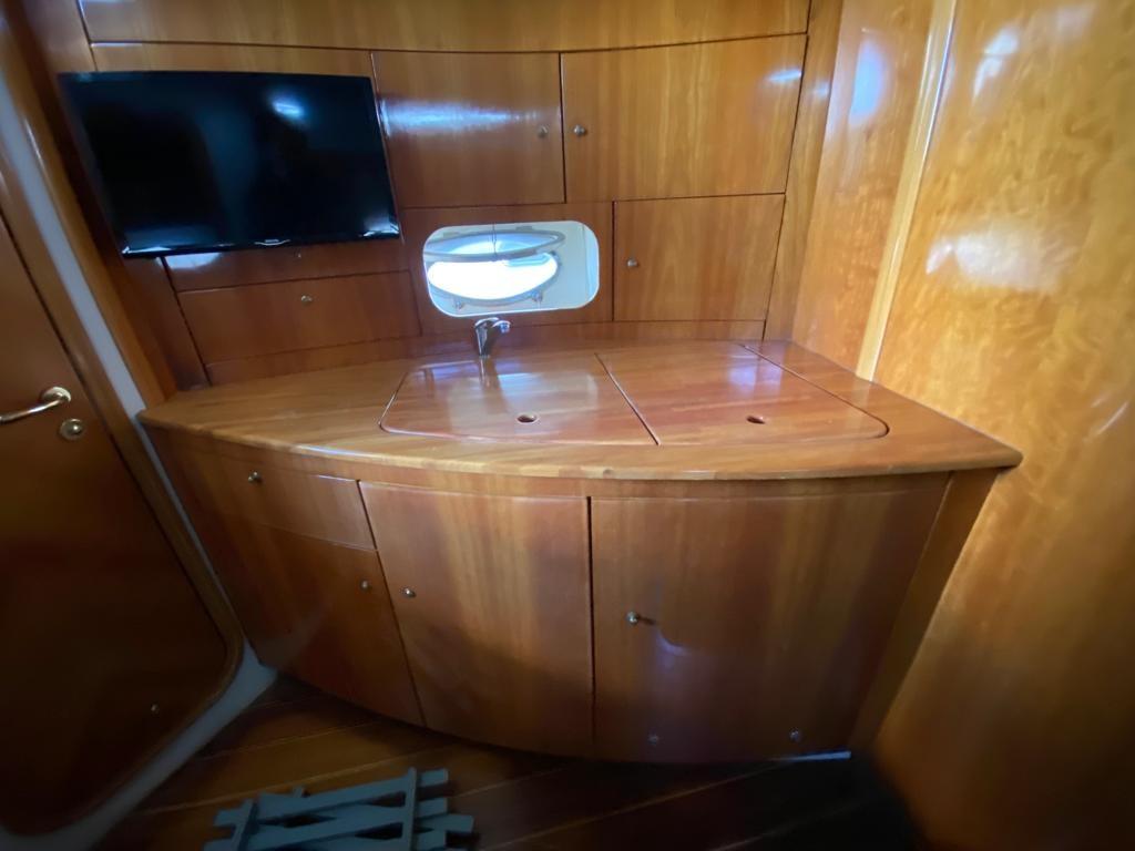 MIRA 43, 2003, COQUE BLANC, 2 x 300 HP VOLVO PENTA KAD, 750 HEURS DU MOTEUR, DIESEL, PROPULSEUR D'éTRAVE, 3 CABINE/S, 2 SALLE/S DE BAIN, GéNéRATEUR, PASSERELLE HYDRAULIQUE, COUSSINS DE DEHORS