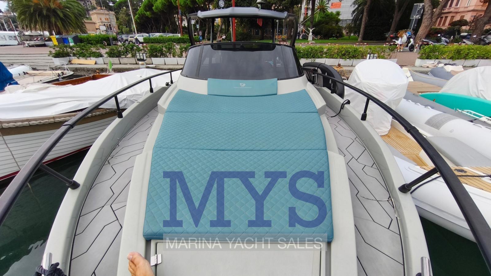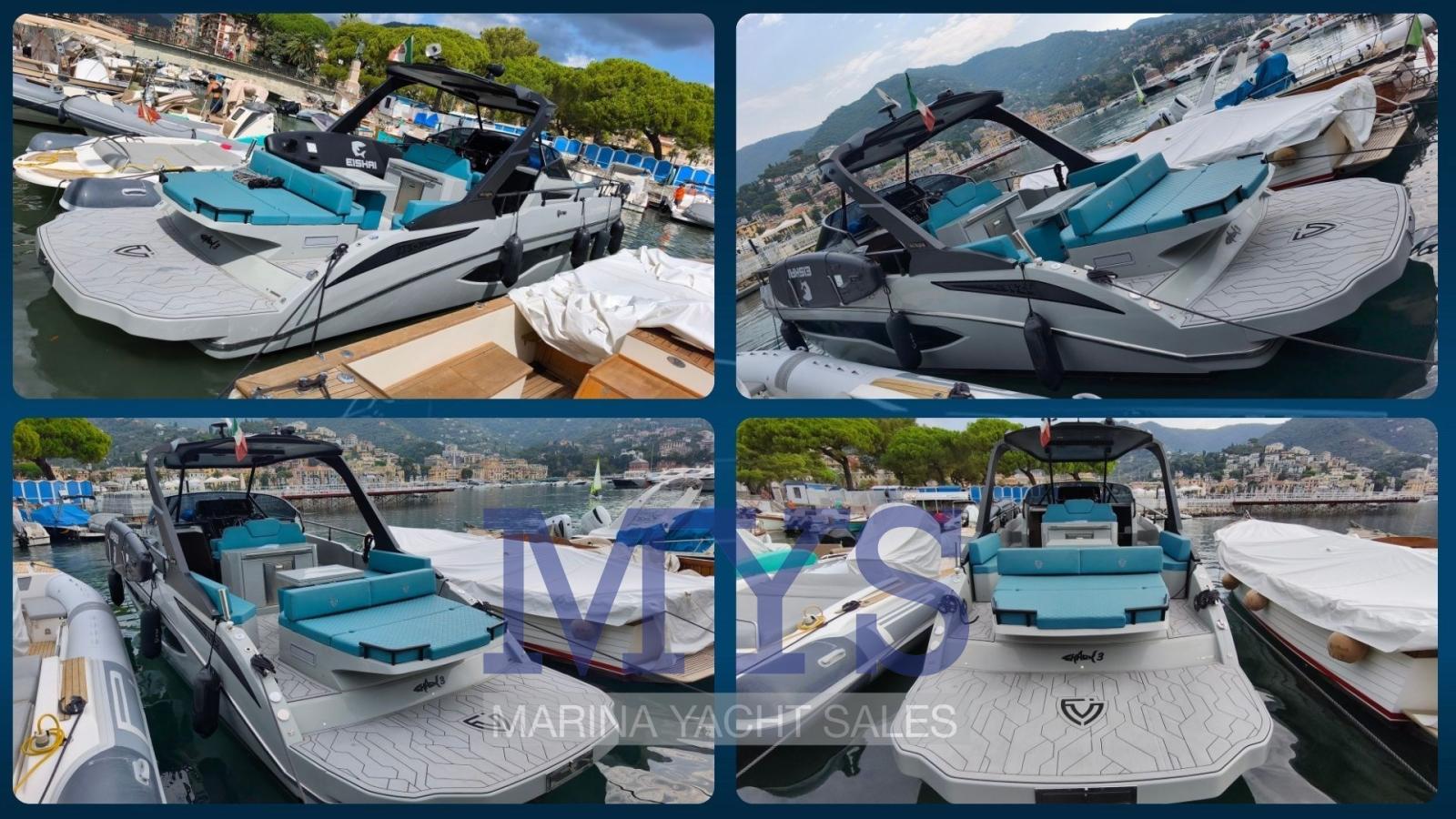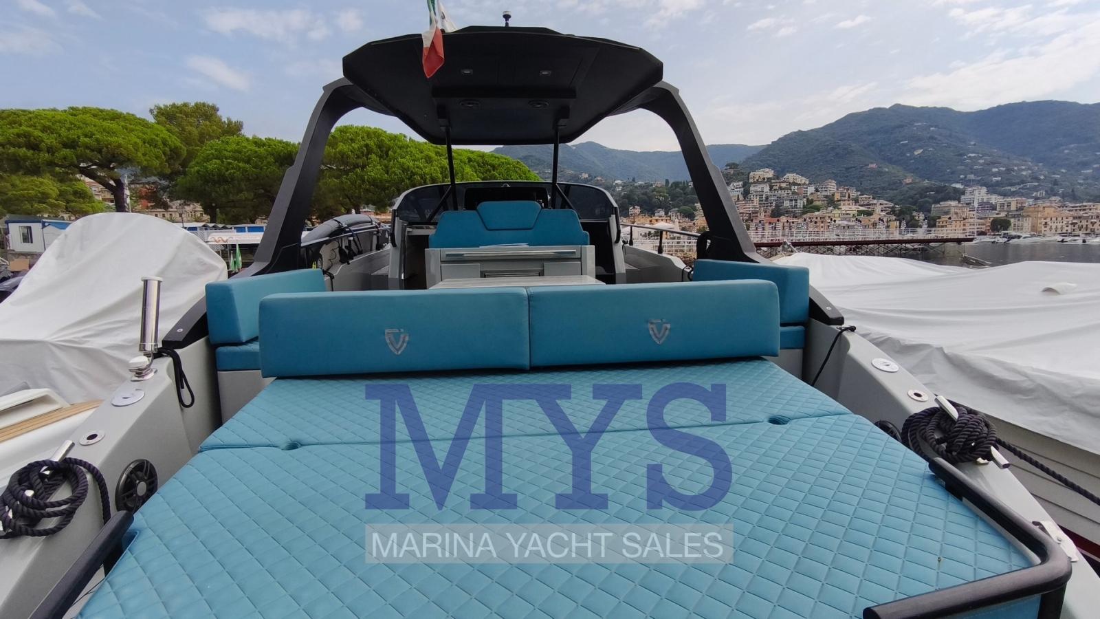 Alarme moteur, Alarme de pompe de cale, Ancre (kg 1 + 50 mt di catena), Ouverture du compartiment moteur électrique, Eau sous pression, 5 Batteries (x 105 Ah), Passavant en teck (in SeaDek), Câble d’alimentation à quai, Couleur spéciale (Gelcoat GRIGIO 7042), Filères, Douche de cockpit, Phare de poursuite, Lavabo dans le cockpit, Éclairage de courtoisie (a Led), 4 Spots sous-marins, Défenses, Plateforme arrière (in SeaDek), Pompe de cale automatique, Pompe de cale manuelle, Pont en teck (in SeaDek), Porte latérale, Cockpit en teck (in SeaDek), Prise de quai, Connexion eau sous pression à quai, Rollbar, Guindeau électrique (700 W), Echelle de bain, table de cockpit, Corne, T-Top (nero), Pont en teck (in SeaDek).